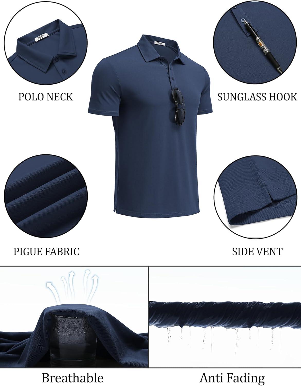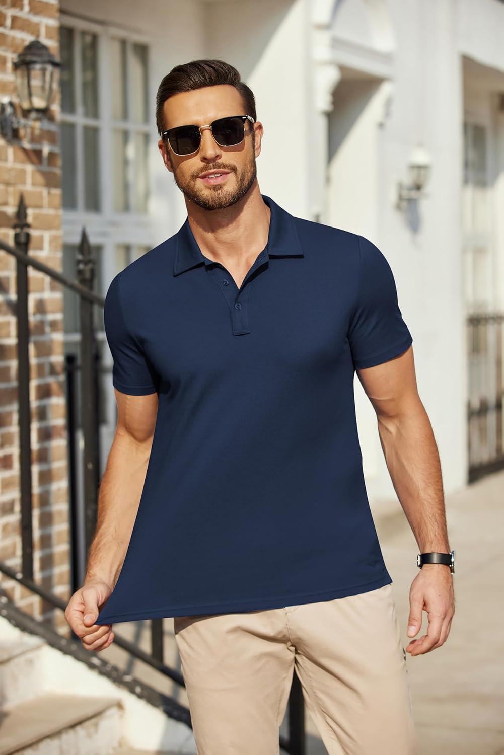 COOFANDY Men's Polo Shirts Short Sleeve Pique Jersey Golf Shirt Casual Summer Collared T-Shirts(Navy Blue)