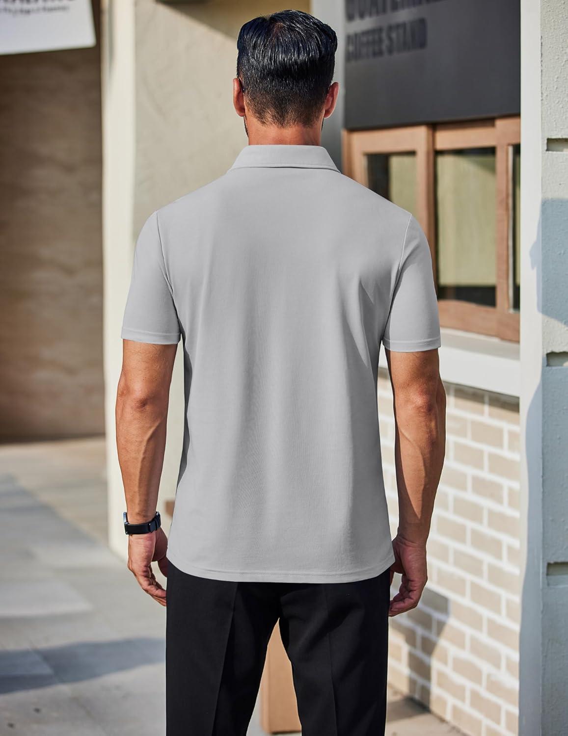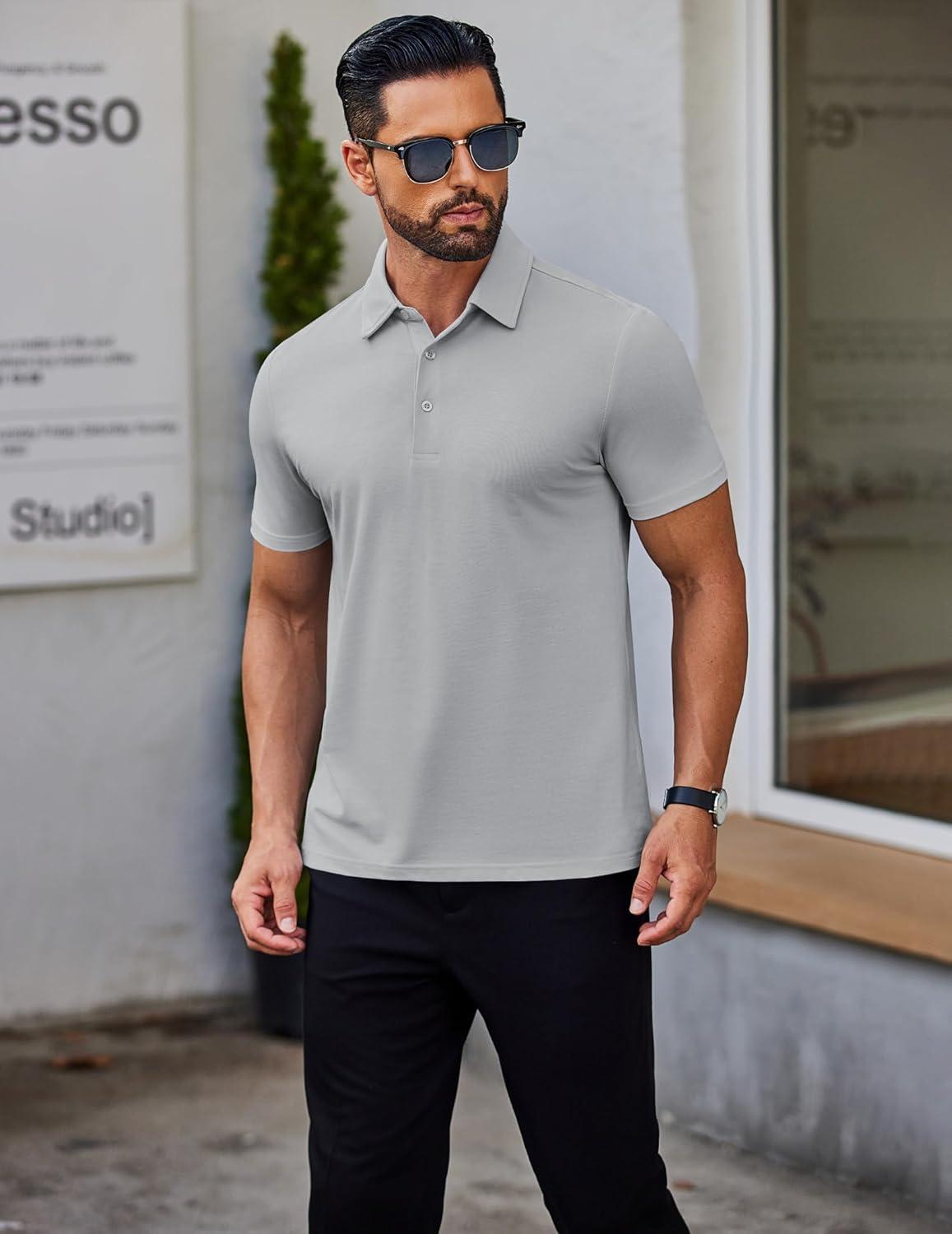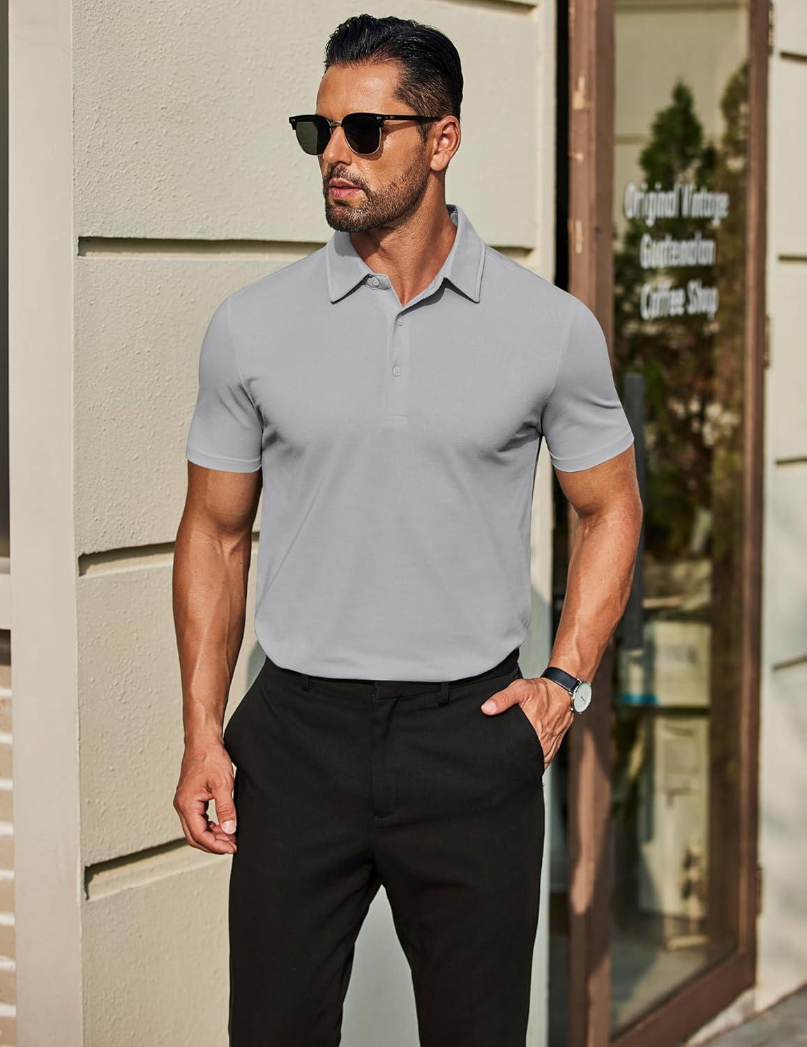 COOFANDY Men’s Polo Shirts Short Sleeve Slim Fit Casual Solid Basic Golf Shirt Collared T-Shirt(Light Grey)