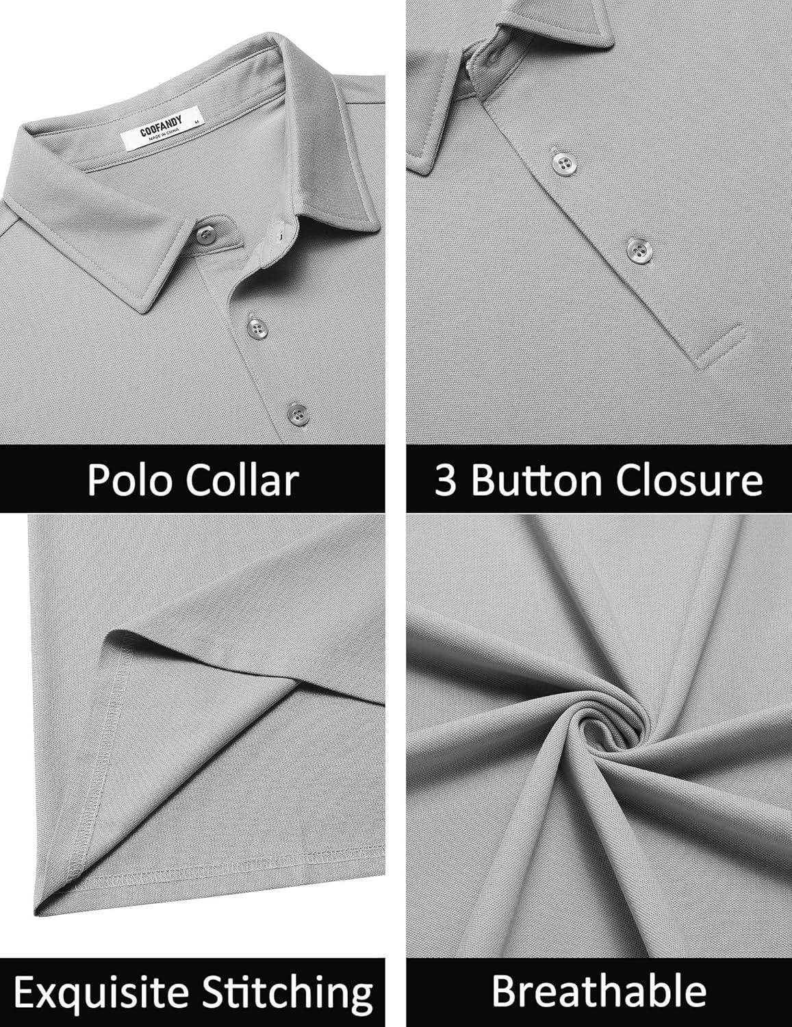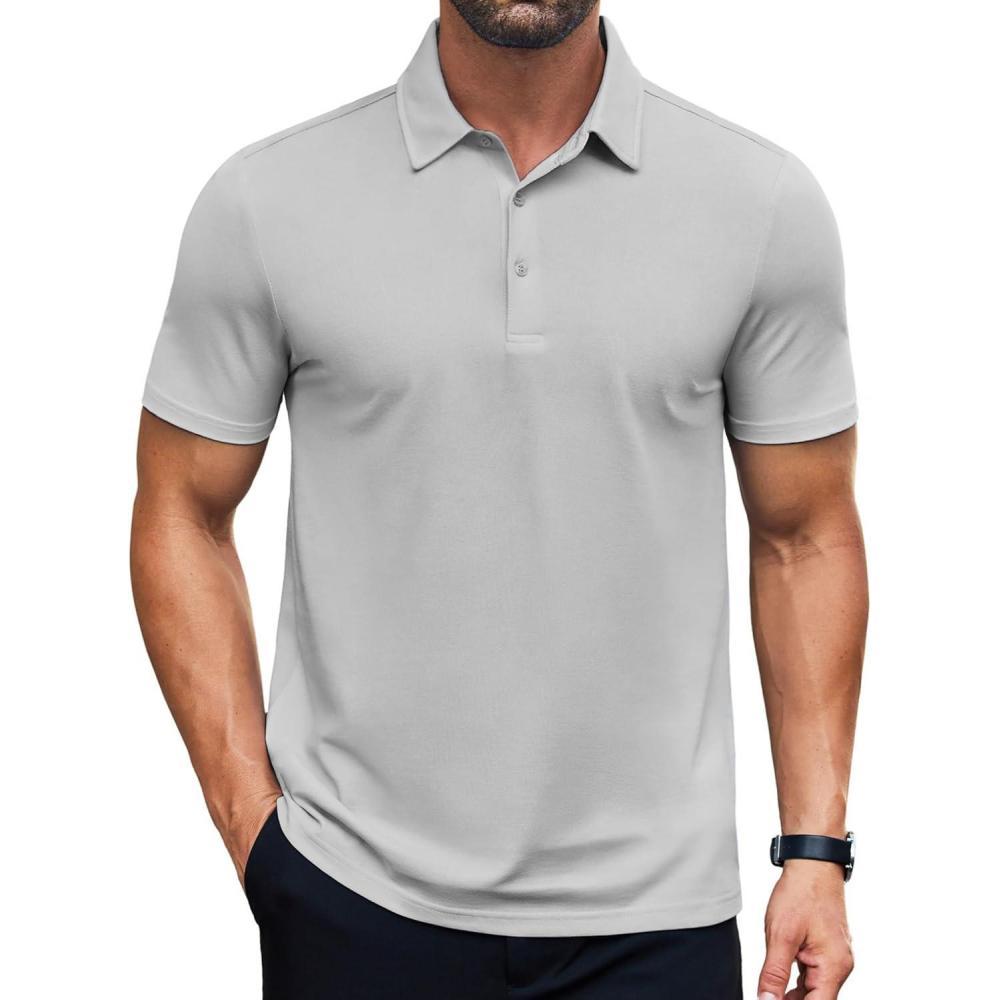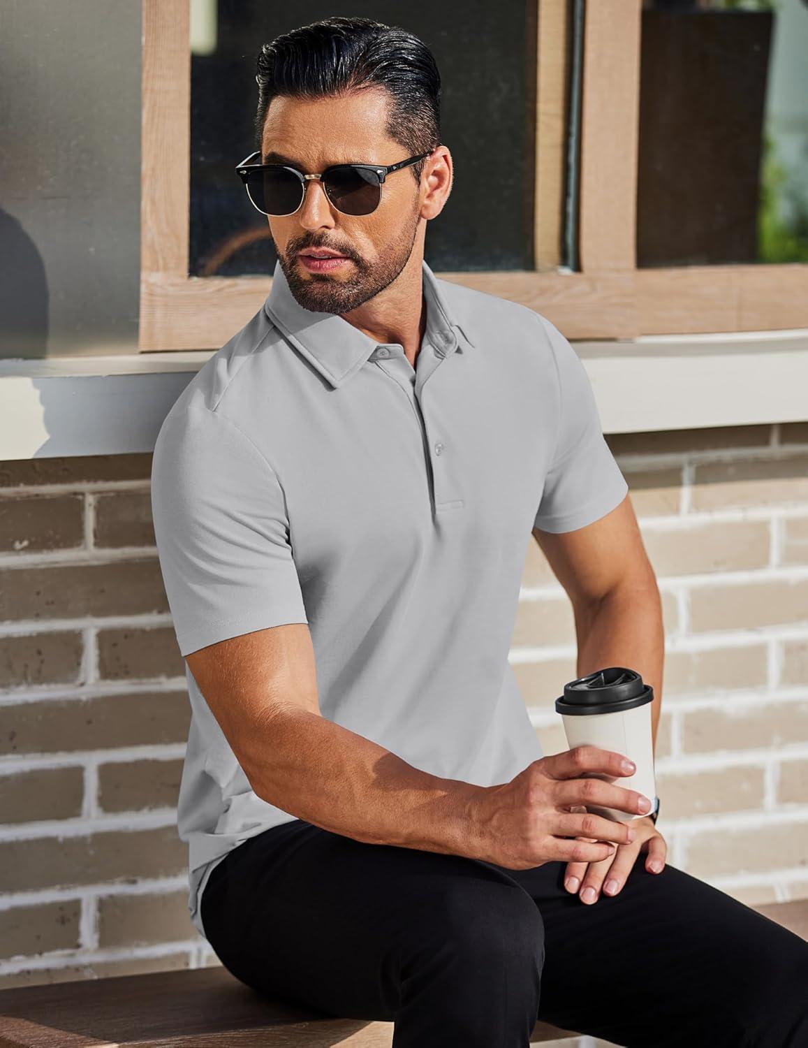 COOFANDY Men's Polo Shirts Short Sleeve Slim Fit Casual Solid Basic Golf Shirt Collared T-Shirt(Light Grey)