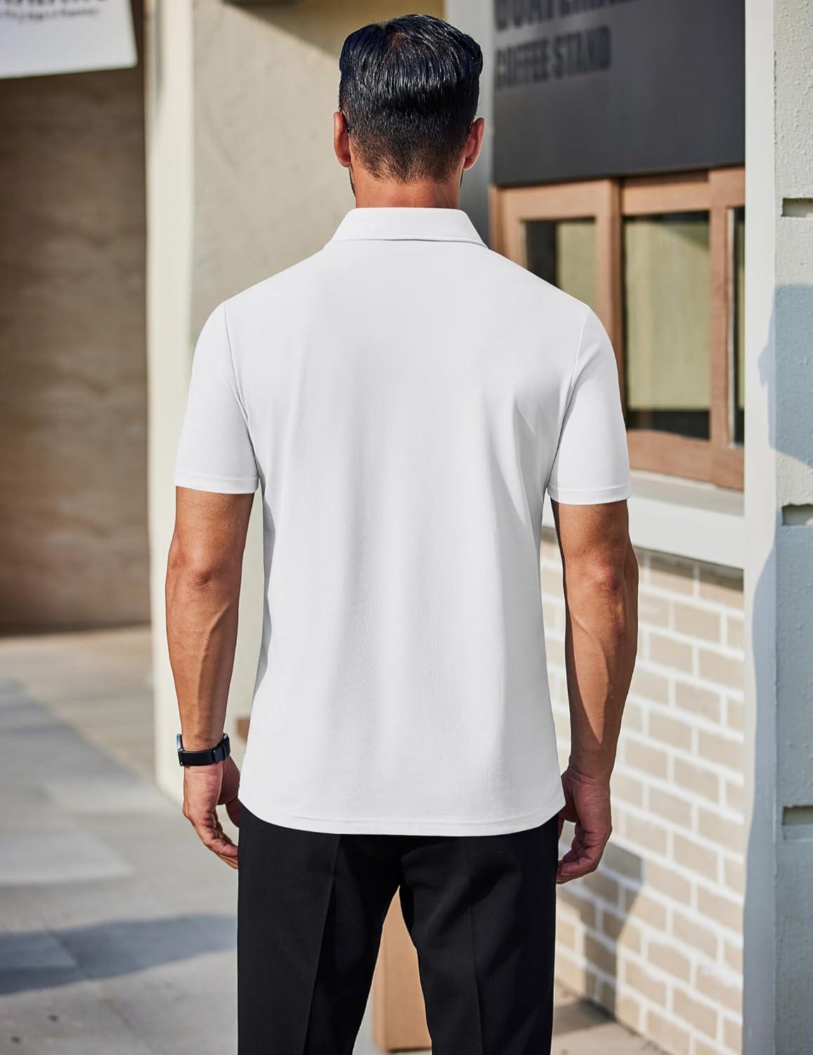 COOFANDY Men's Polo Shirts Short Sleeve Slim Fit Casual Solid Basic Golf Shirt Collared T-Shirt(White)