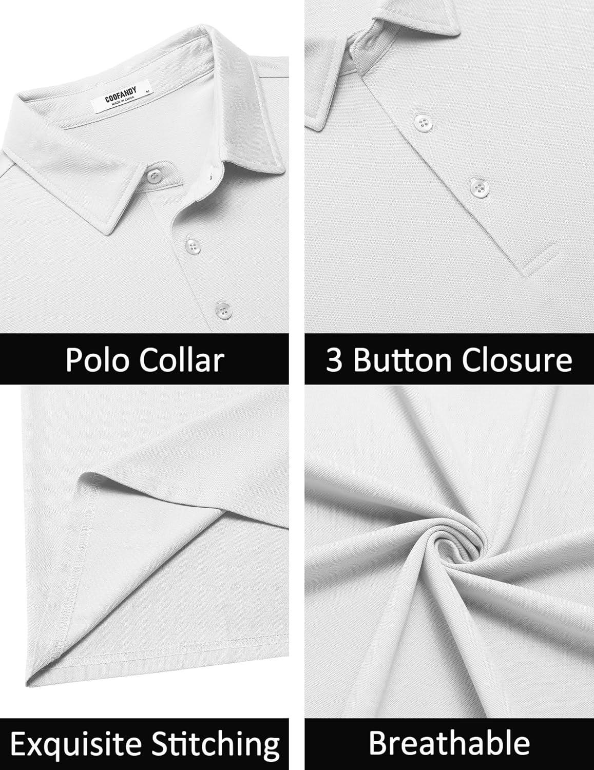 COOFANDY Men’s Polo Shirts Short Sleeve Slim Fit Casual Solid Basic Golf Shirt Collared T-Shirt(Light Grey)