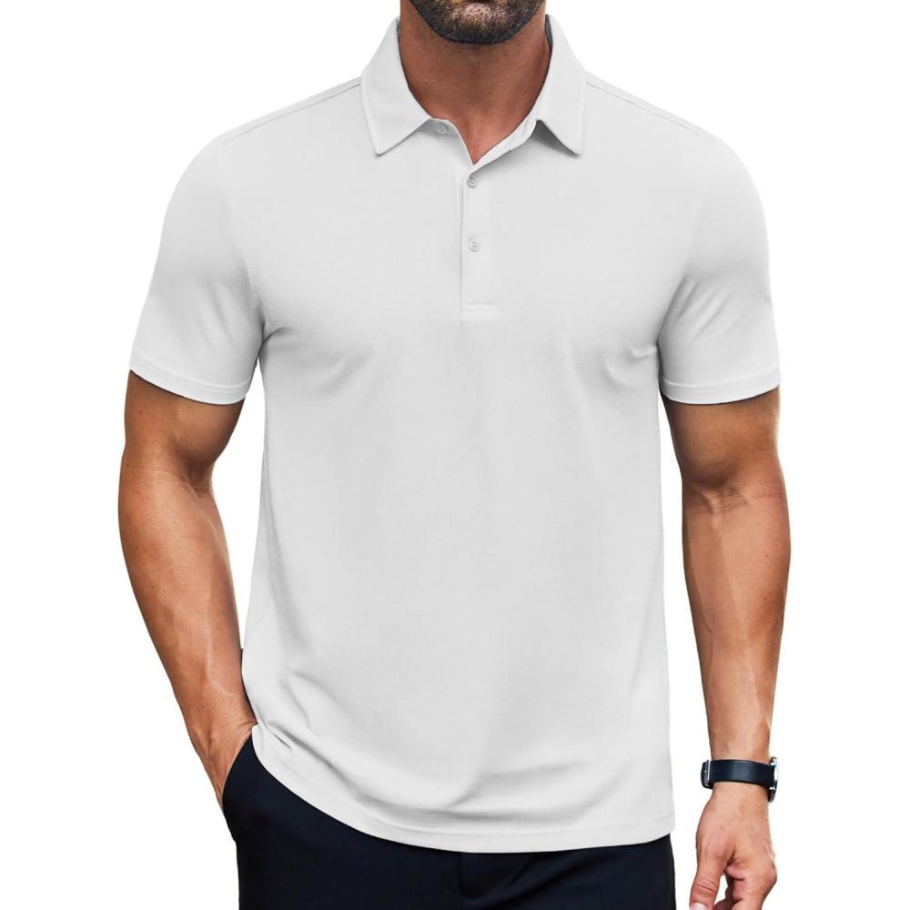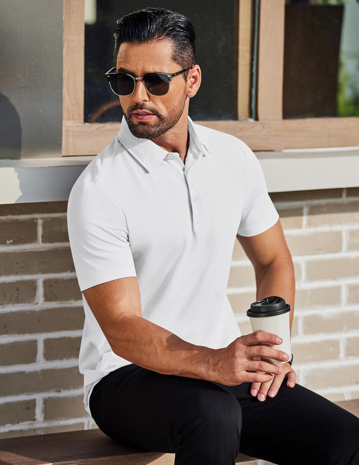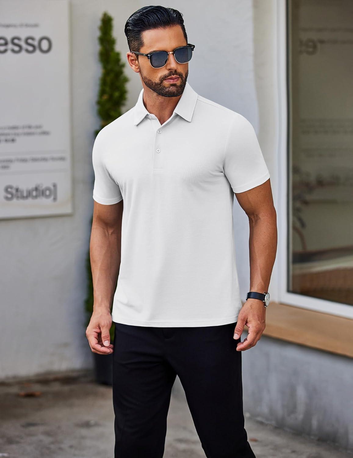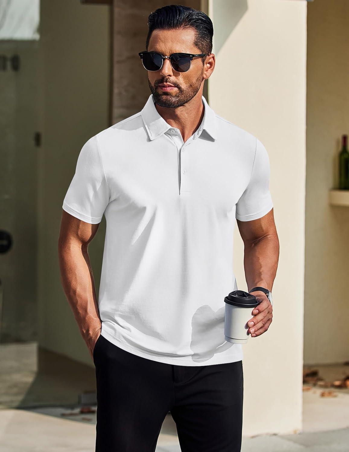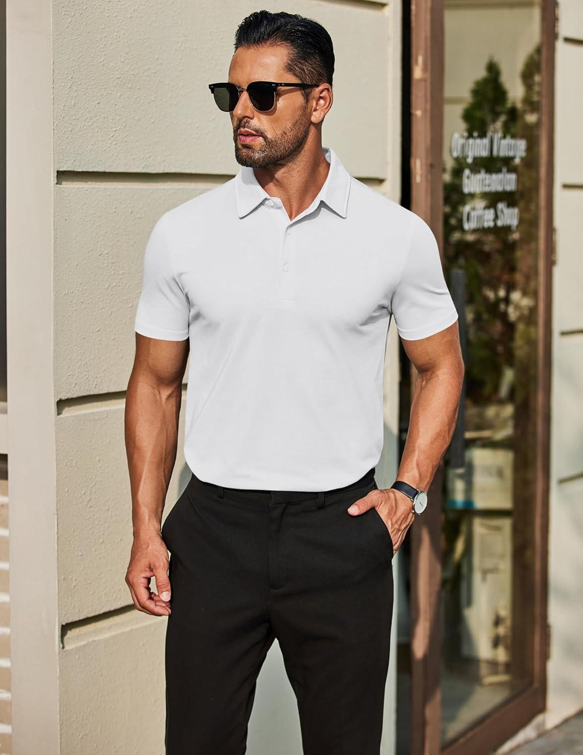 COOFANDY Men’s Polo Shirts Short Sleeve Slim Fit Casual Solid Basic Golf Shirt Collared T-Shirt(White)