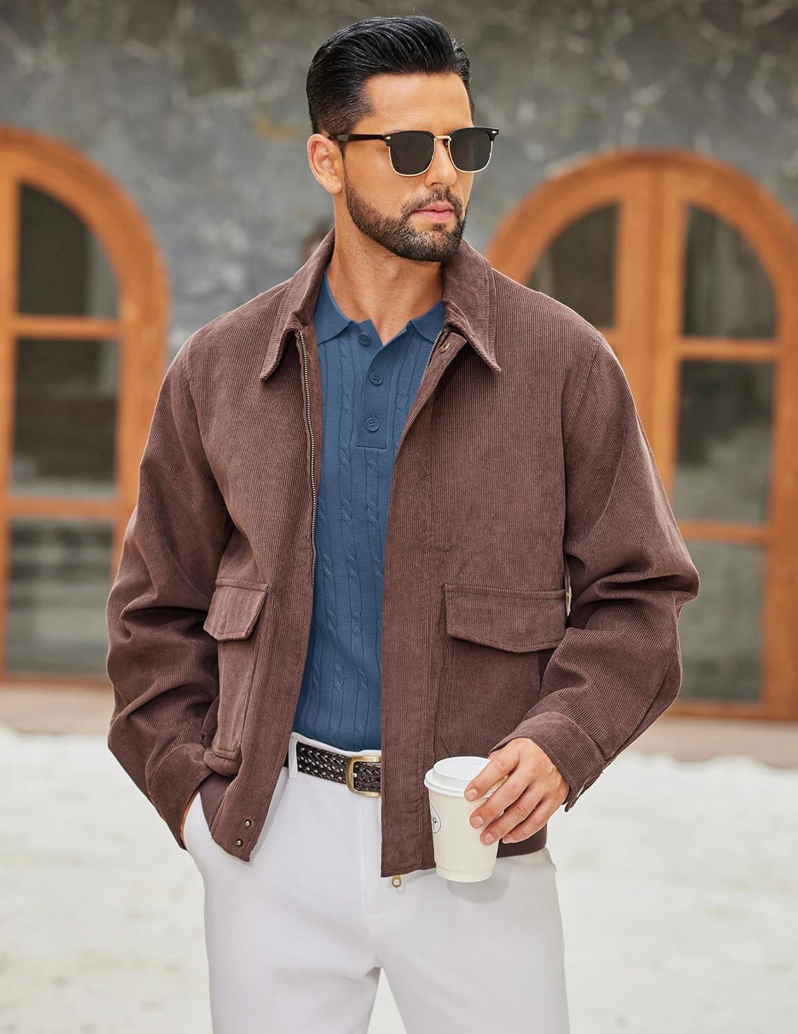 COOFANDY Men’s Polo Sweater Casual Long Sleeve Knit Polos Button Down Collared Golf Pullover Sweaters(Khaki)