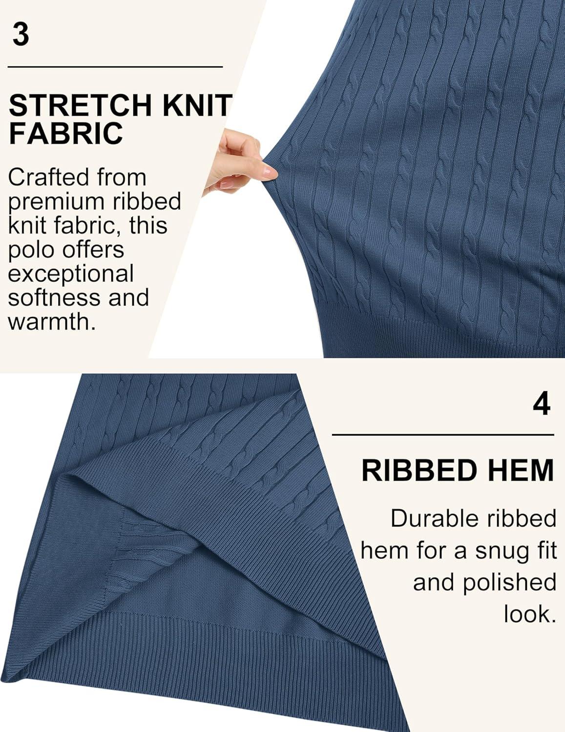 COOFANDY Men's Polo Sweater Casual Long Sleeve Knit Polos Button Down Collared Golf Pullover Sweaters(Denim Blue)