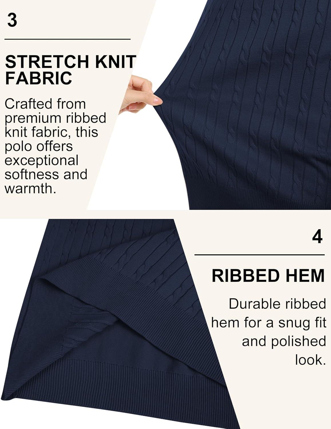 COOFANDY Men's Polo Sweater Casual Long Sleeve Knit Polos Button Down Collared Golf Pullover Sweaters(Navy Blue)