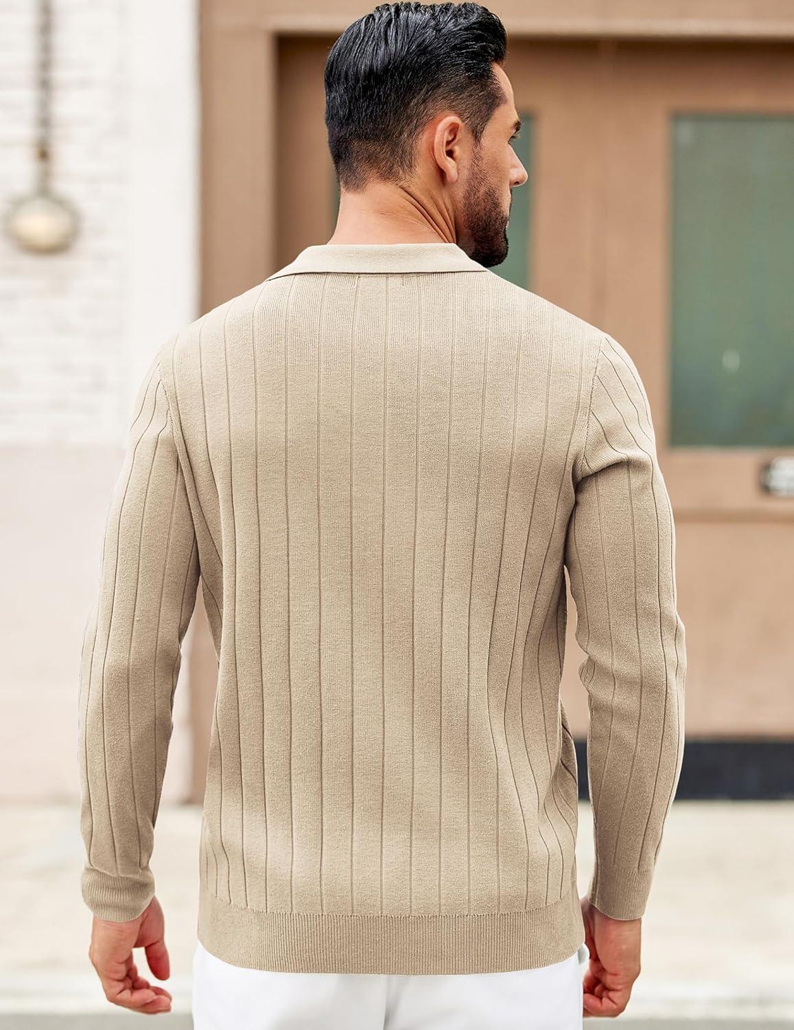 Save up to 40% on COOFANDY Mens Polo Sweaters Long Sleeve V Neck Knit Polos Lightweight Casual Pullover Sweater(Khaki) styles during our end-of-season sale.