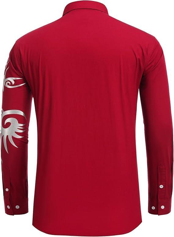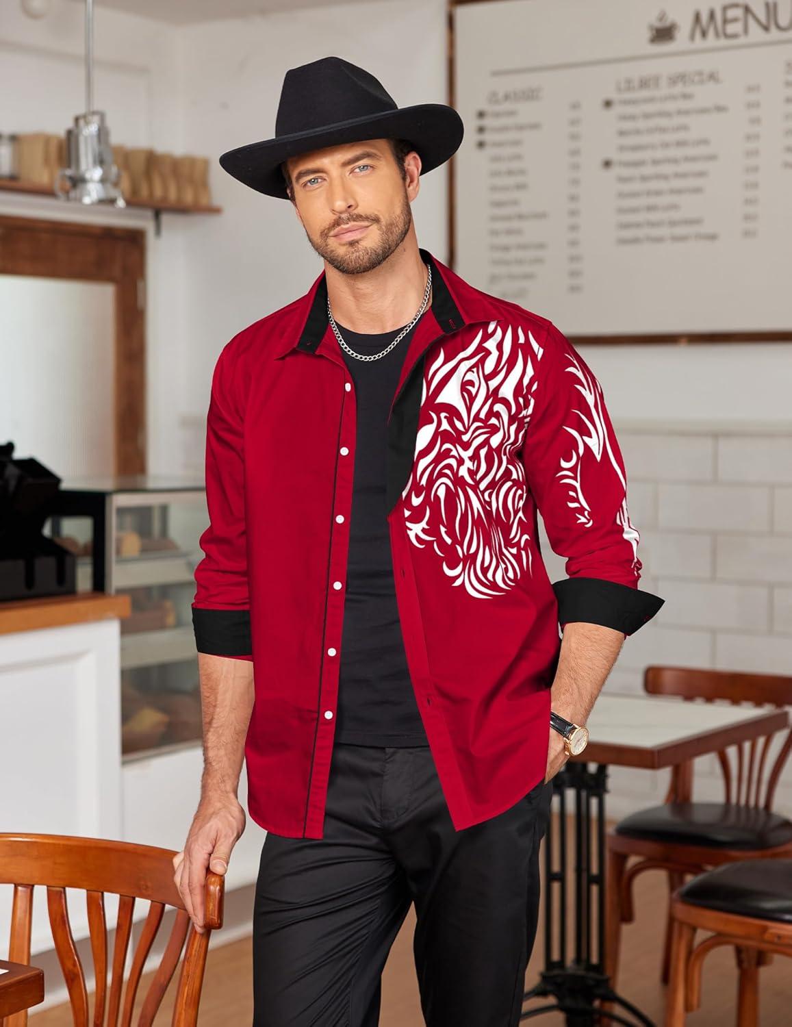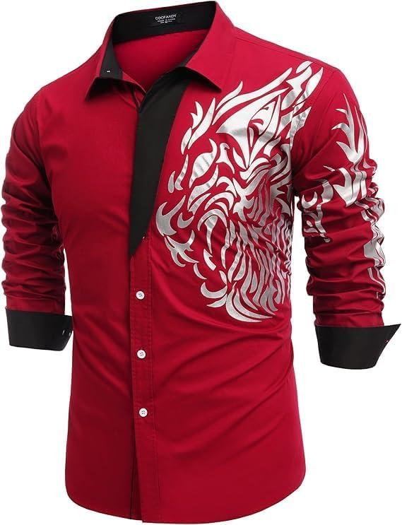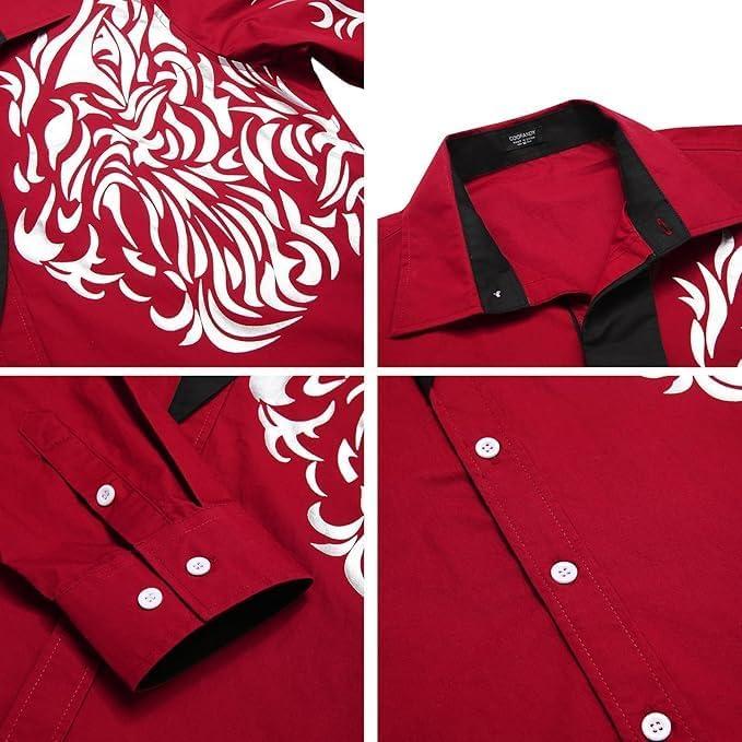 COOFANDY Men’s Print Button Down Dress Shirt Fashion Long Sleeve Casual Shirts(Red)