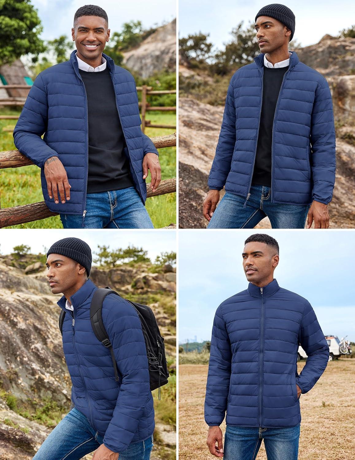 COOFANDY Mens Puffer Jacket Packable Lightweight Jackets Winter Coat Windproof Zipper Down Jacket(Denim Blue)