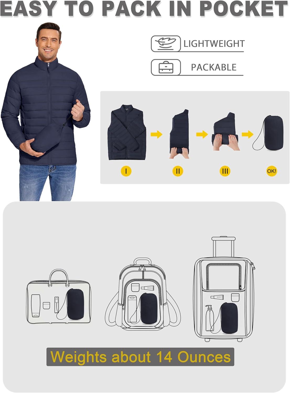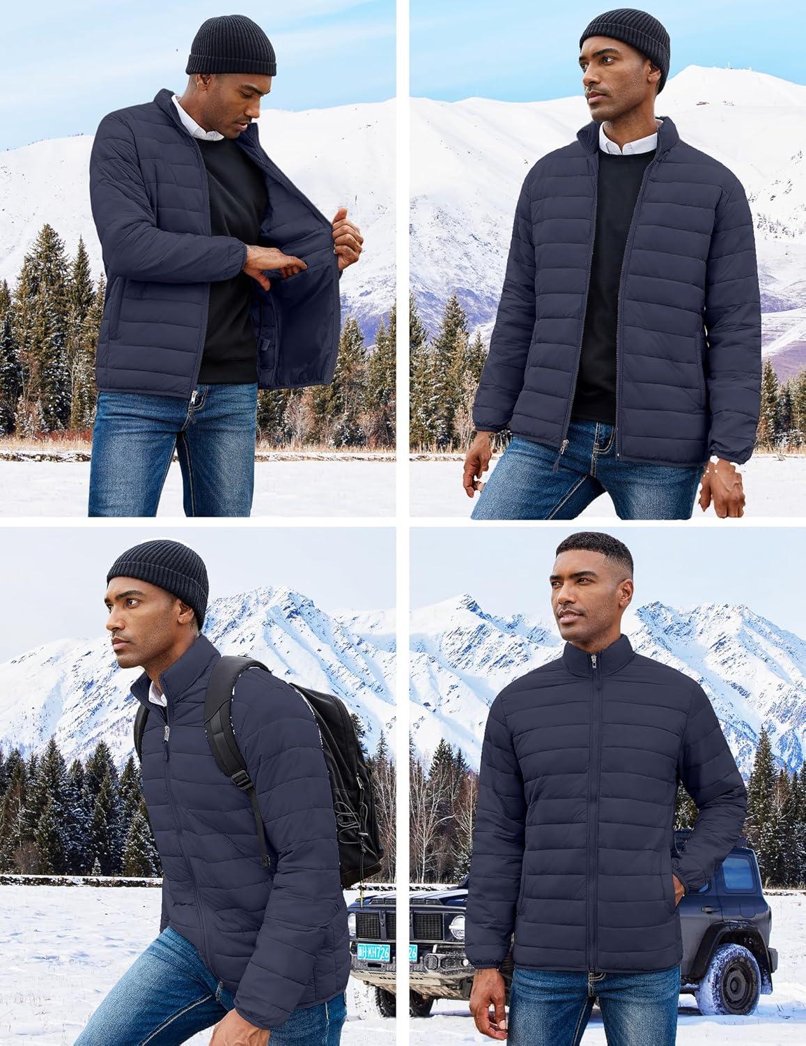 COOFANDY Mens Puffer Jacket Packable Lightweight Jackets Winter Coat Windproof Zipper Down Jacket(Navy Blue)
