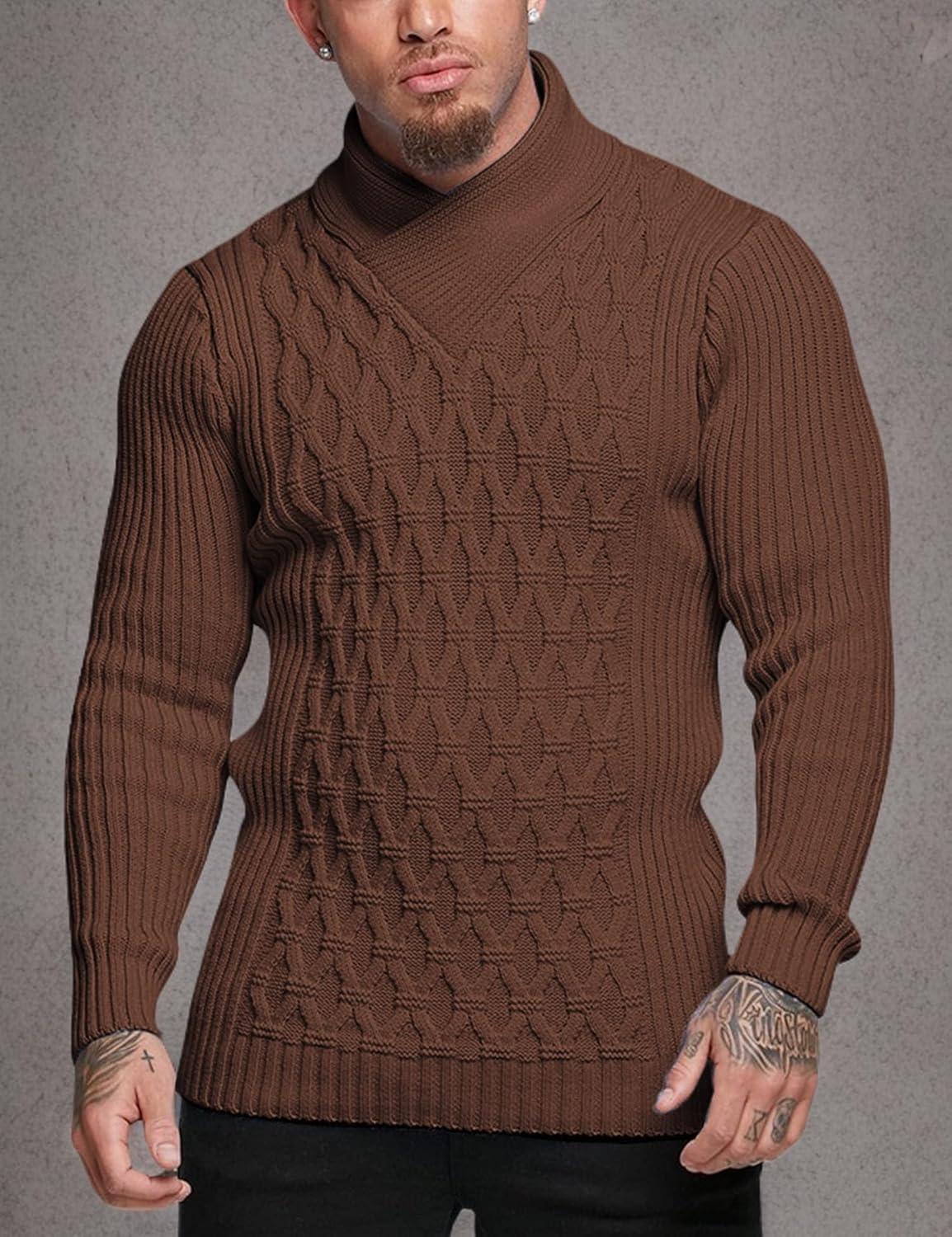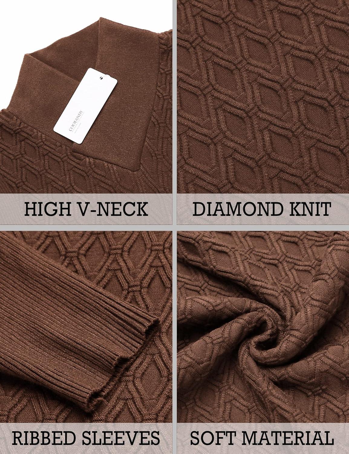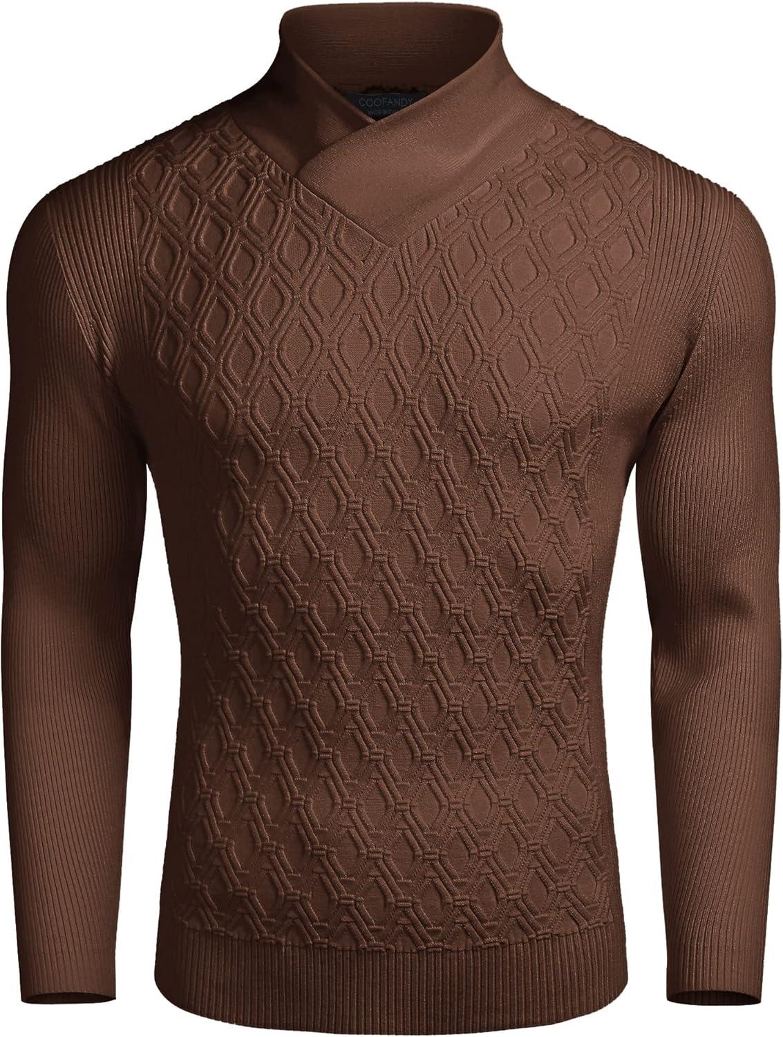 COOFANDY Mens Pullover Sweaters Fashion Diamond Knit Sweater Stylish Knitwear Lightweight Jumper(Dark Brown)