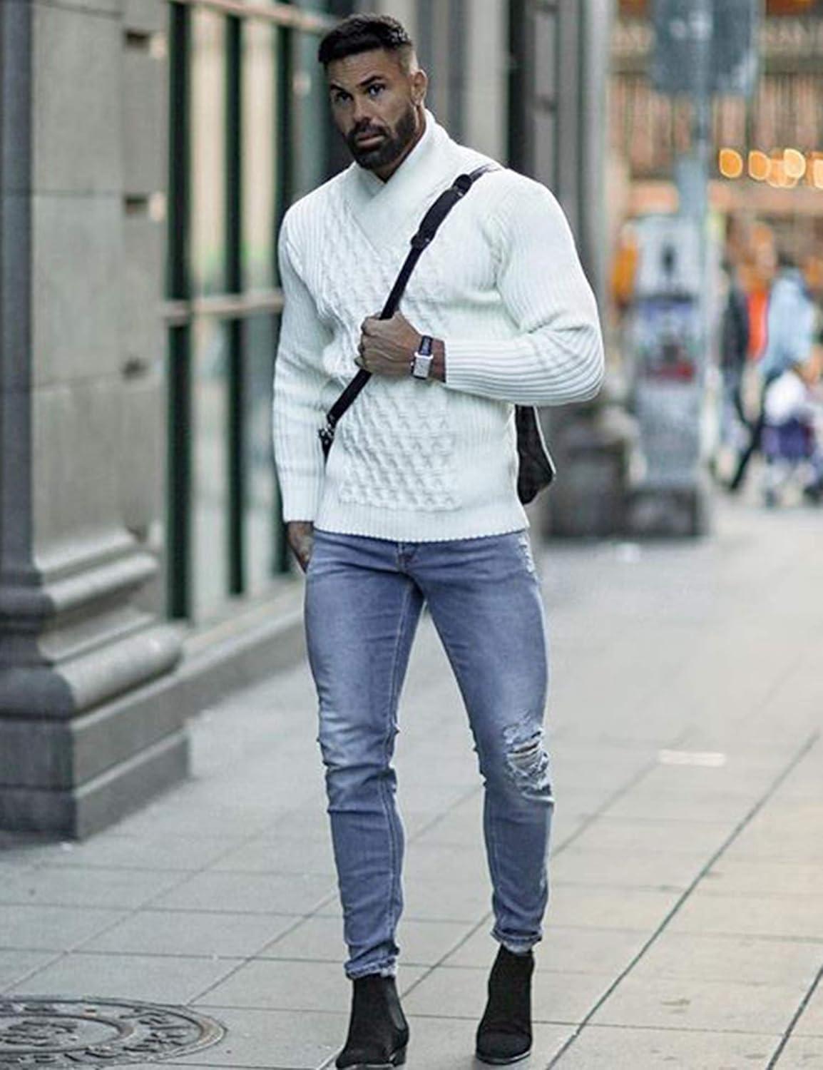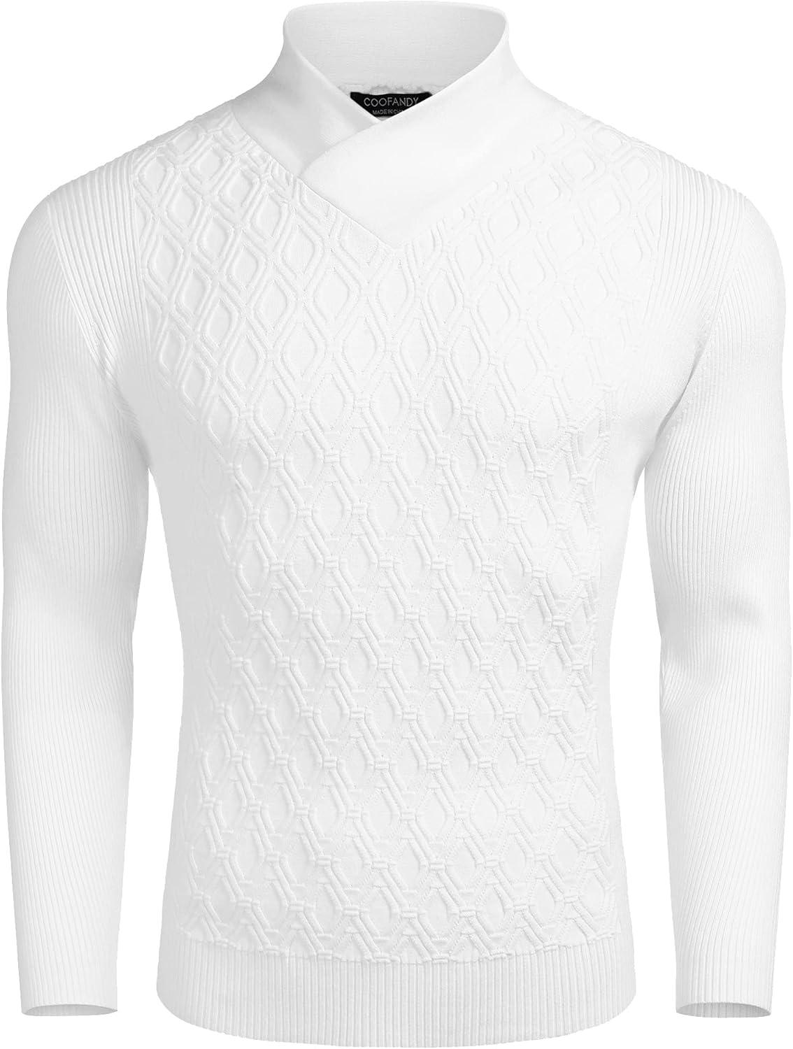 COOFANDY Mens Pullover Sweaters Fashion Diamond Knit Sweater Stylish Knitwear Lightweight Jumper(White)