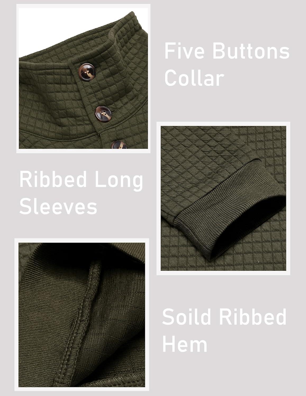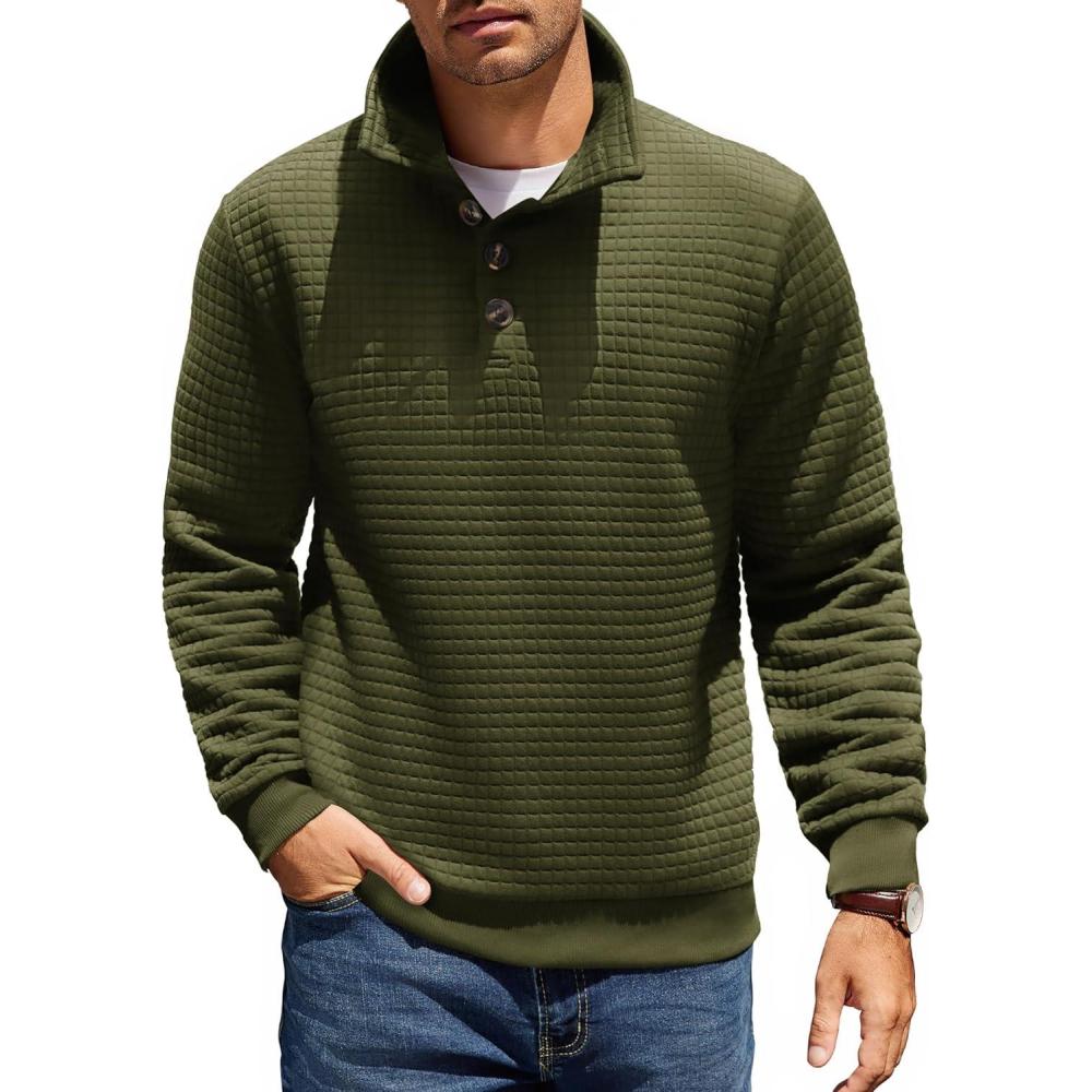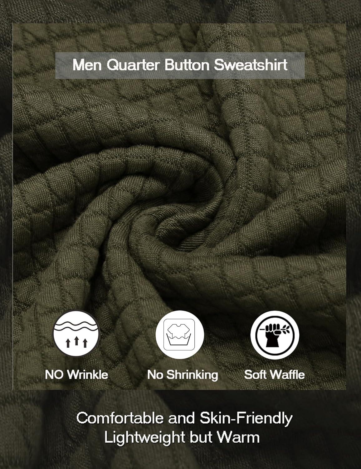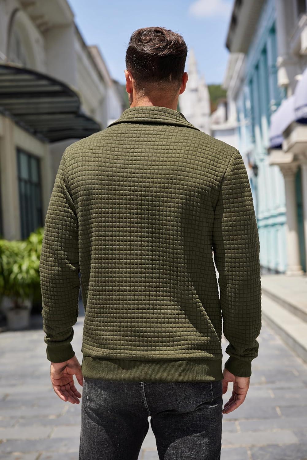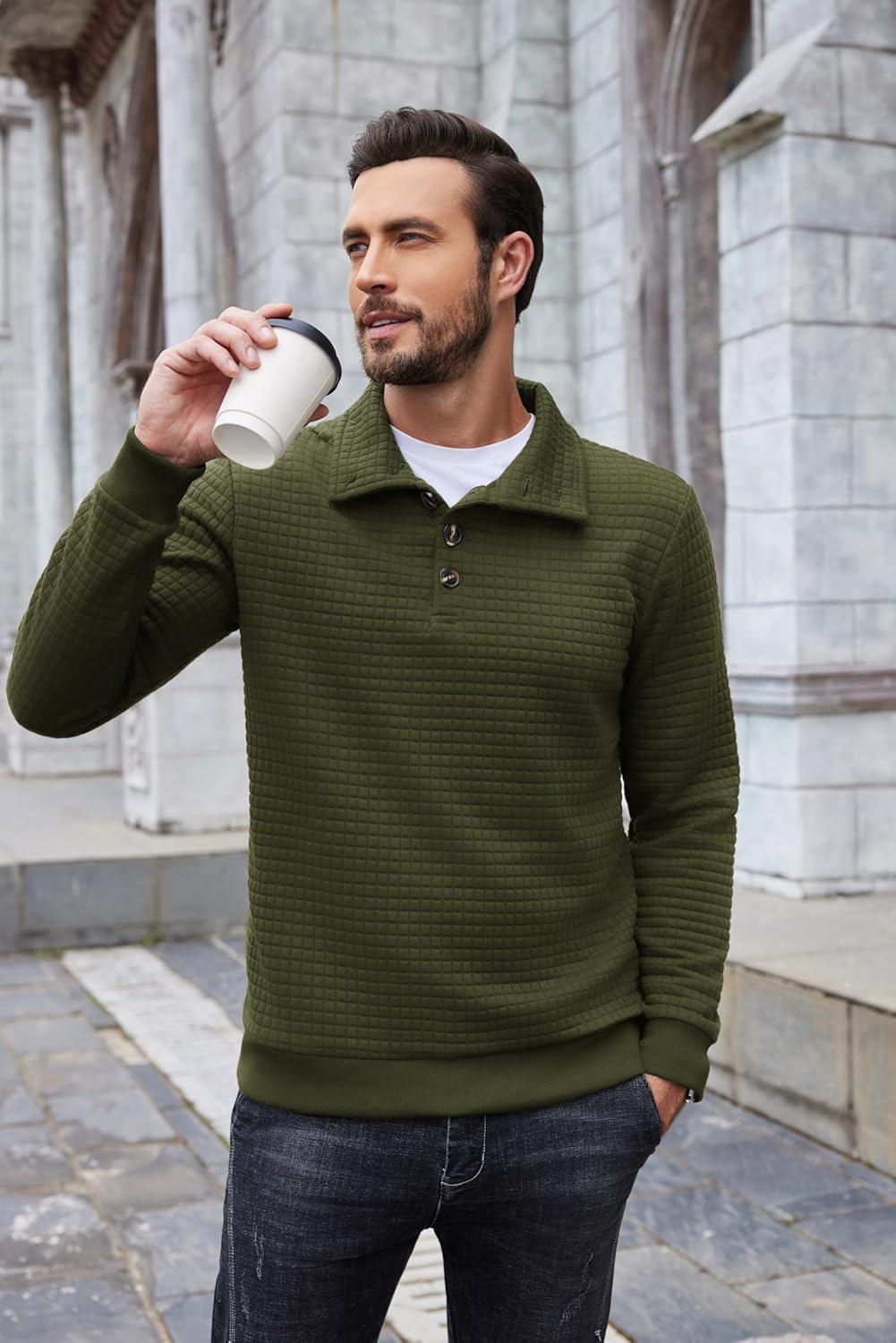 COOFANDY Mens Quarter Pullover Quilted Sweatshirt Casual Knit Long Sleeve Mock Neck Sweater Waffle Collared Pullover(Army Green)