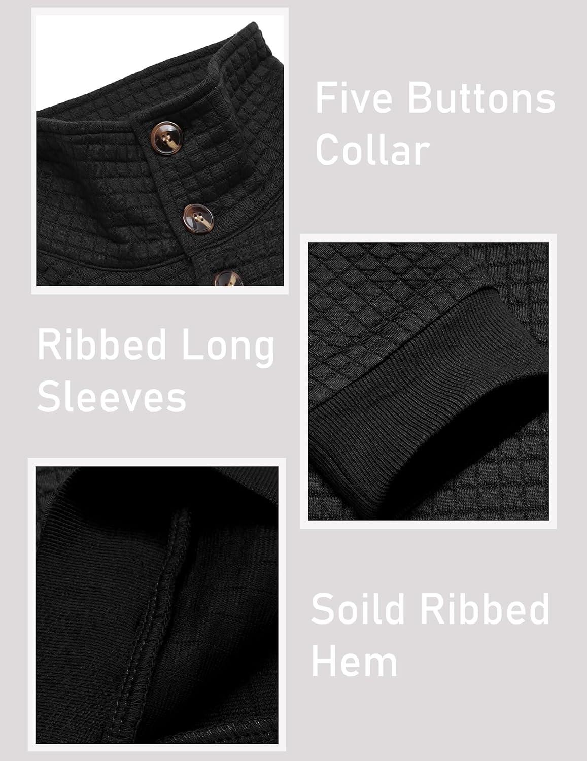 Get your hands on our newest COOFANDY Mens Quarter Pullover Quilted Sweatshirt Casual Knit Long Sleeve Mock Neck Sweater Waffle Collared Pullover(Black) and enjoy a limited-time discount offer.