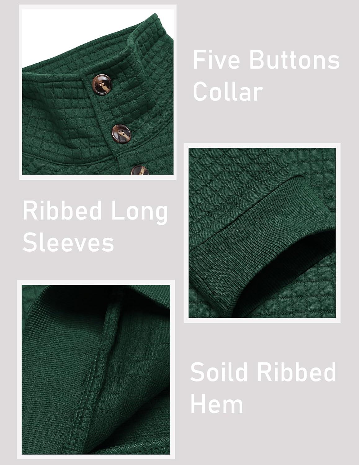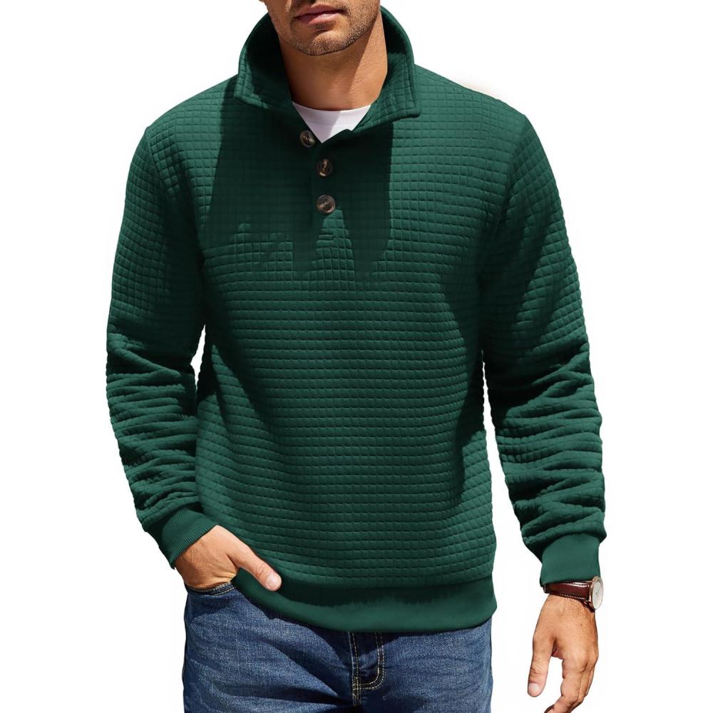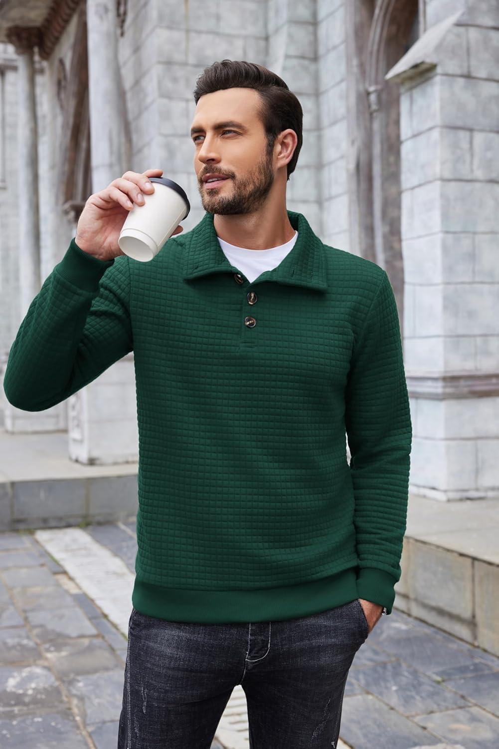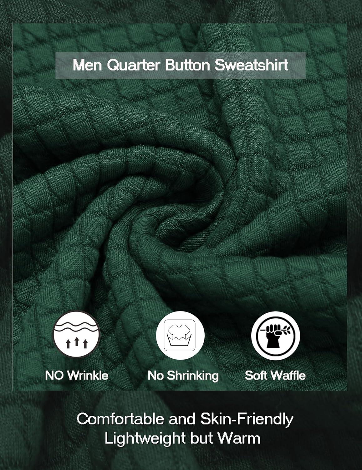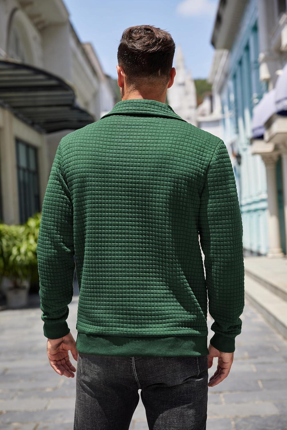 COOFANDY Mens Quarter Pullover Quilted Sweatshirt Casual Knit Long Sleeve Mock Neck Sweater Waffle Collared Pullover(Green)