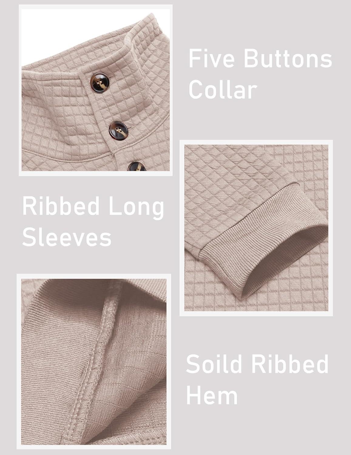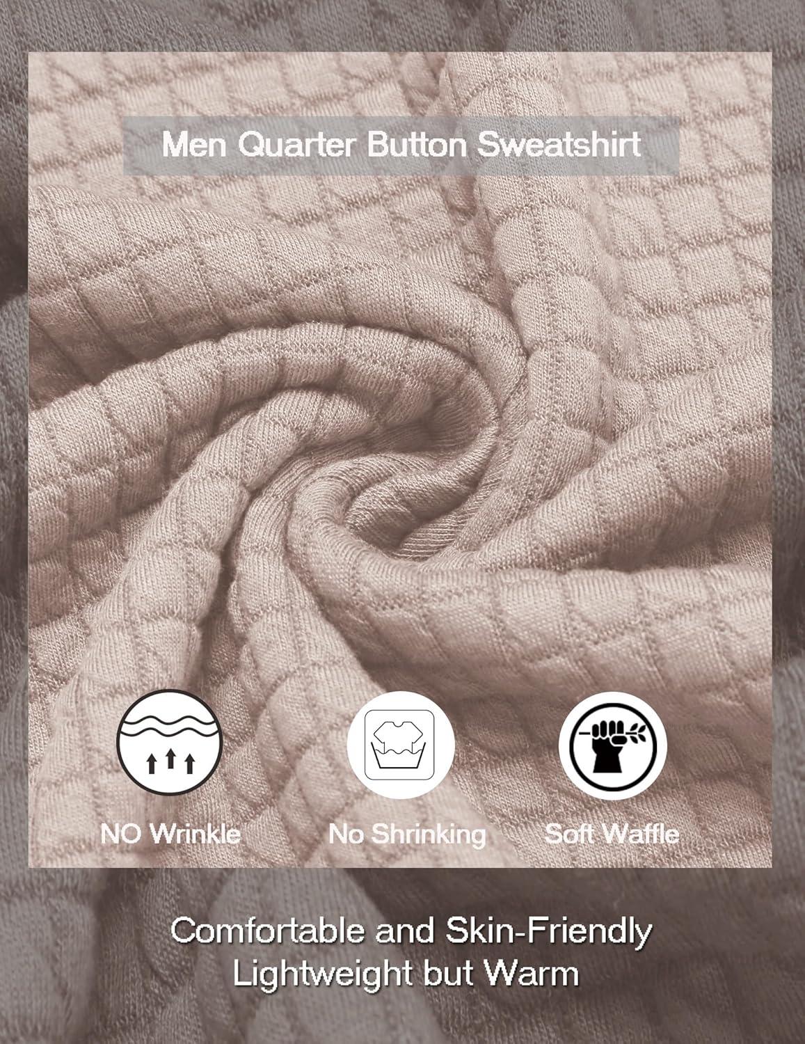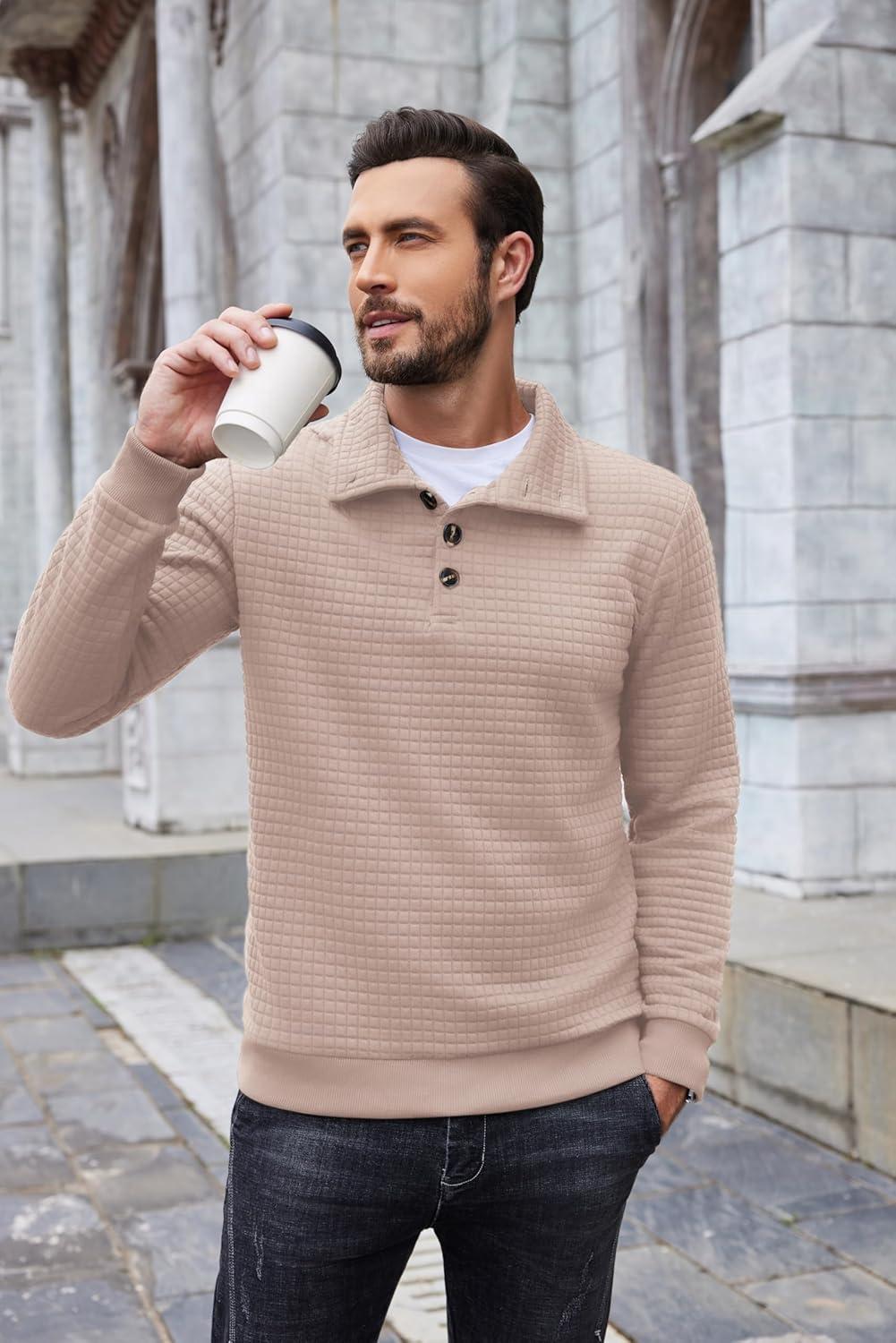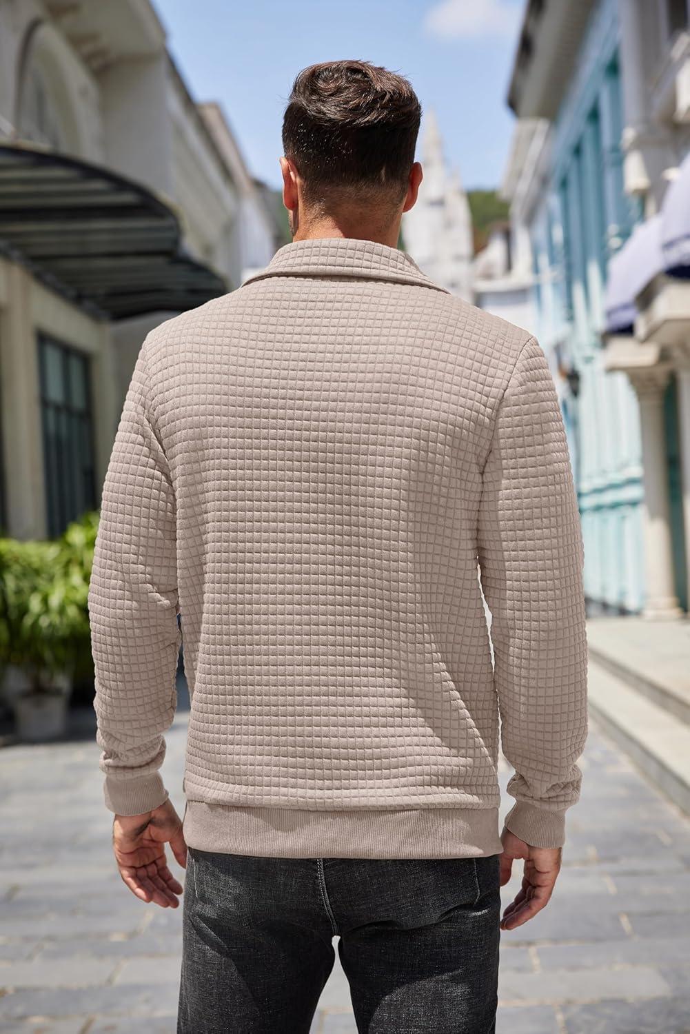 COOFANDY Mens Quarter Pullover Quilted Sweatshirt Casual Knit Long Sleeve Mock Neck Sweater Waffle Collared Pullover(Khaki)