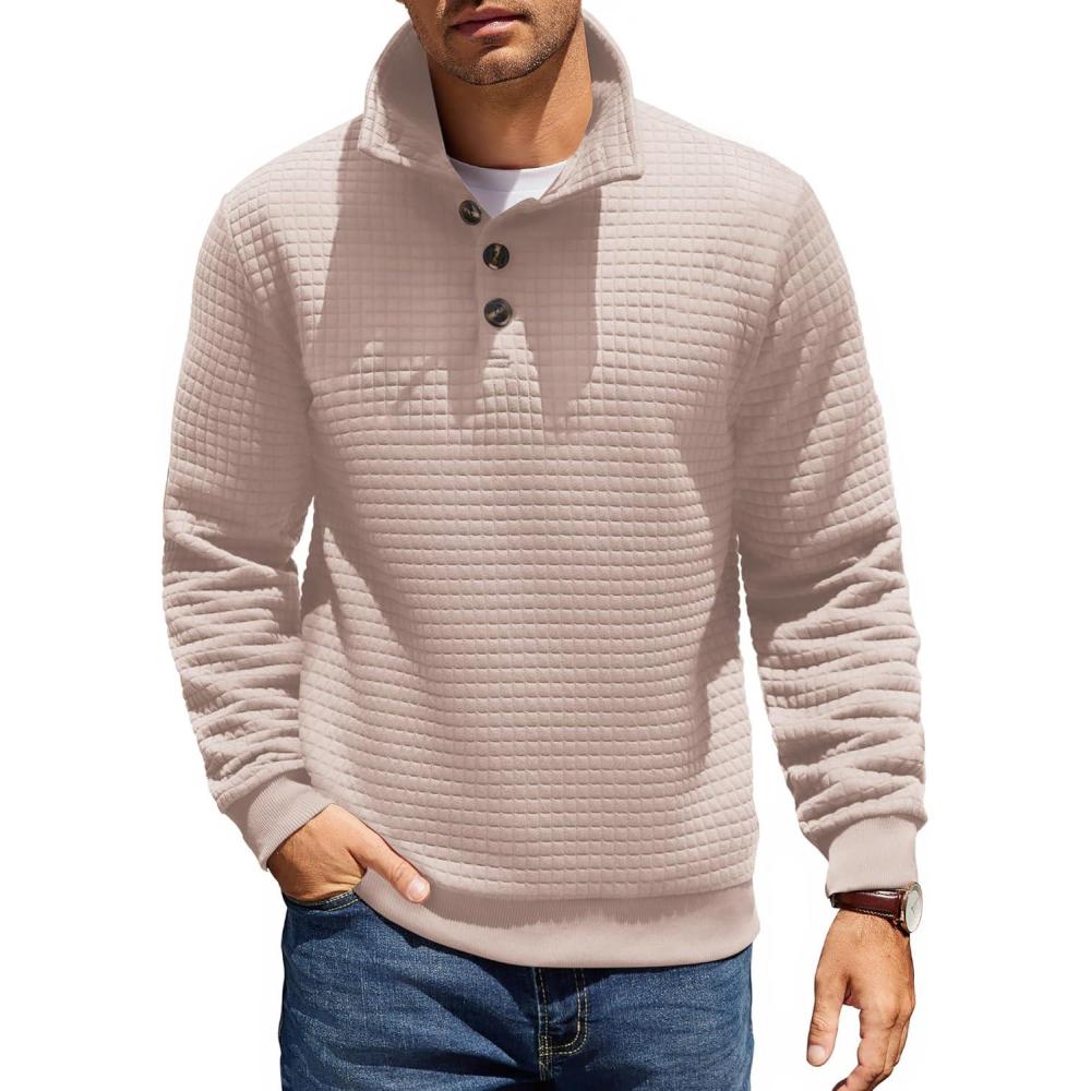 COOFANDY Mens Quarter Pullover Quilted Sweatshirt Casual Knit Long Sleeve Mock Neck Sweater Waffle Collared Pullover(Light Khaki)