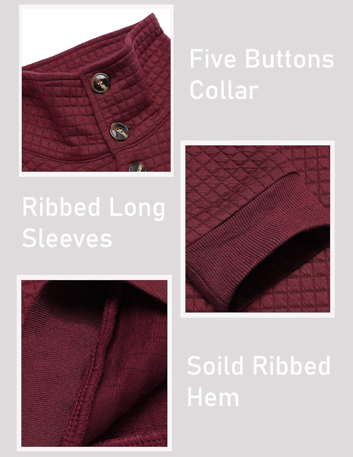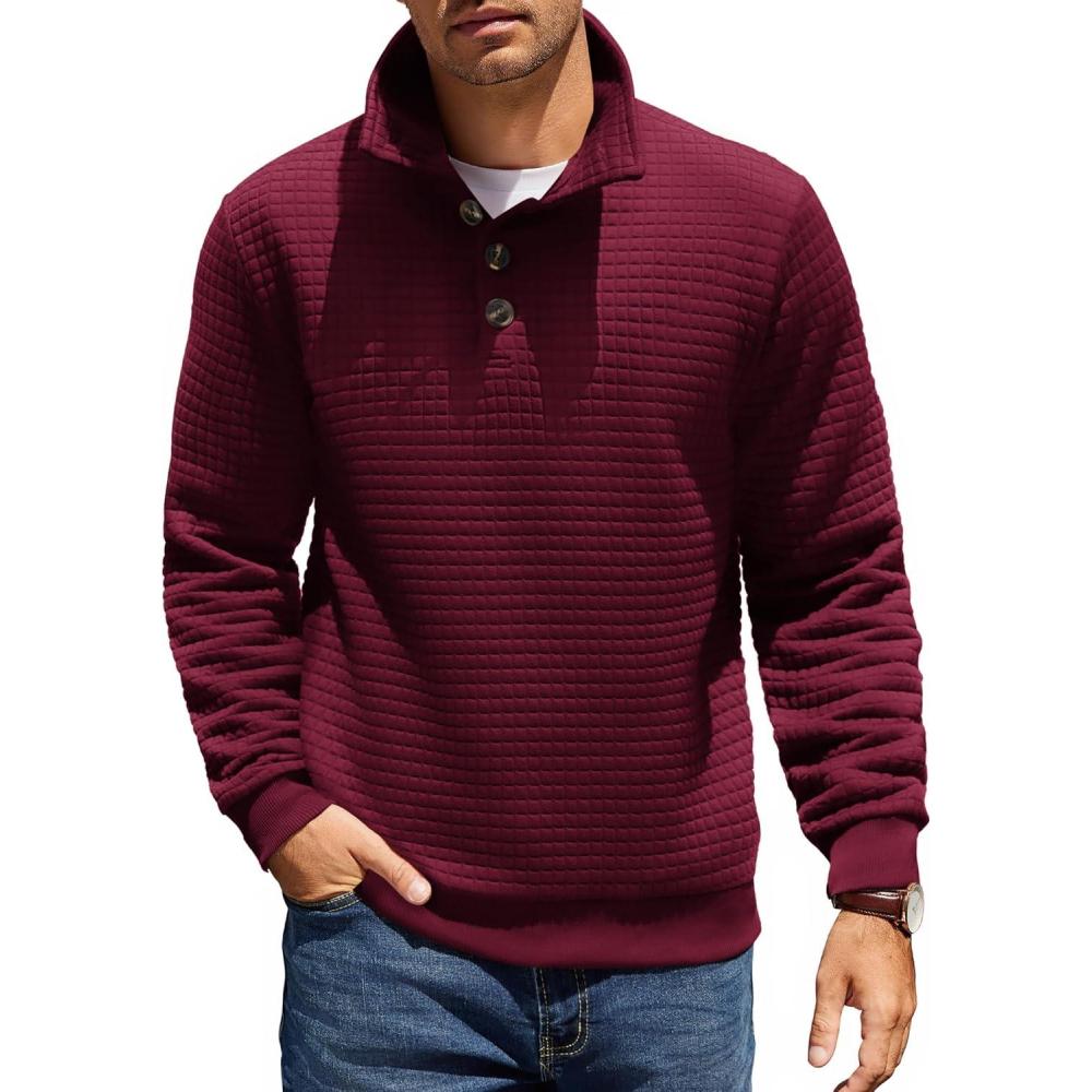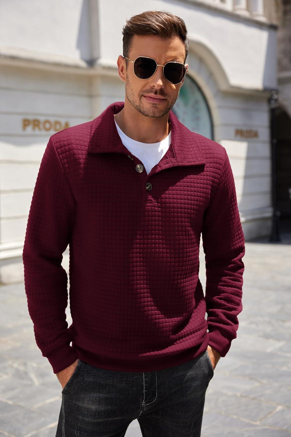 COOFANDY Mens Quarter Pullover Quilted Sweatshirt Casual Knit Long Sleeve Mock Neck Sweater Waffle Collared Pullover(Wine Red)
