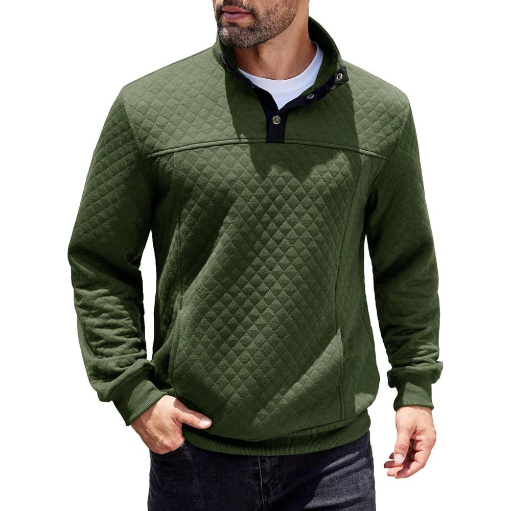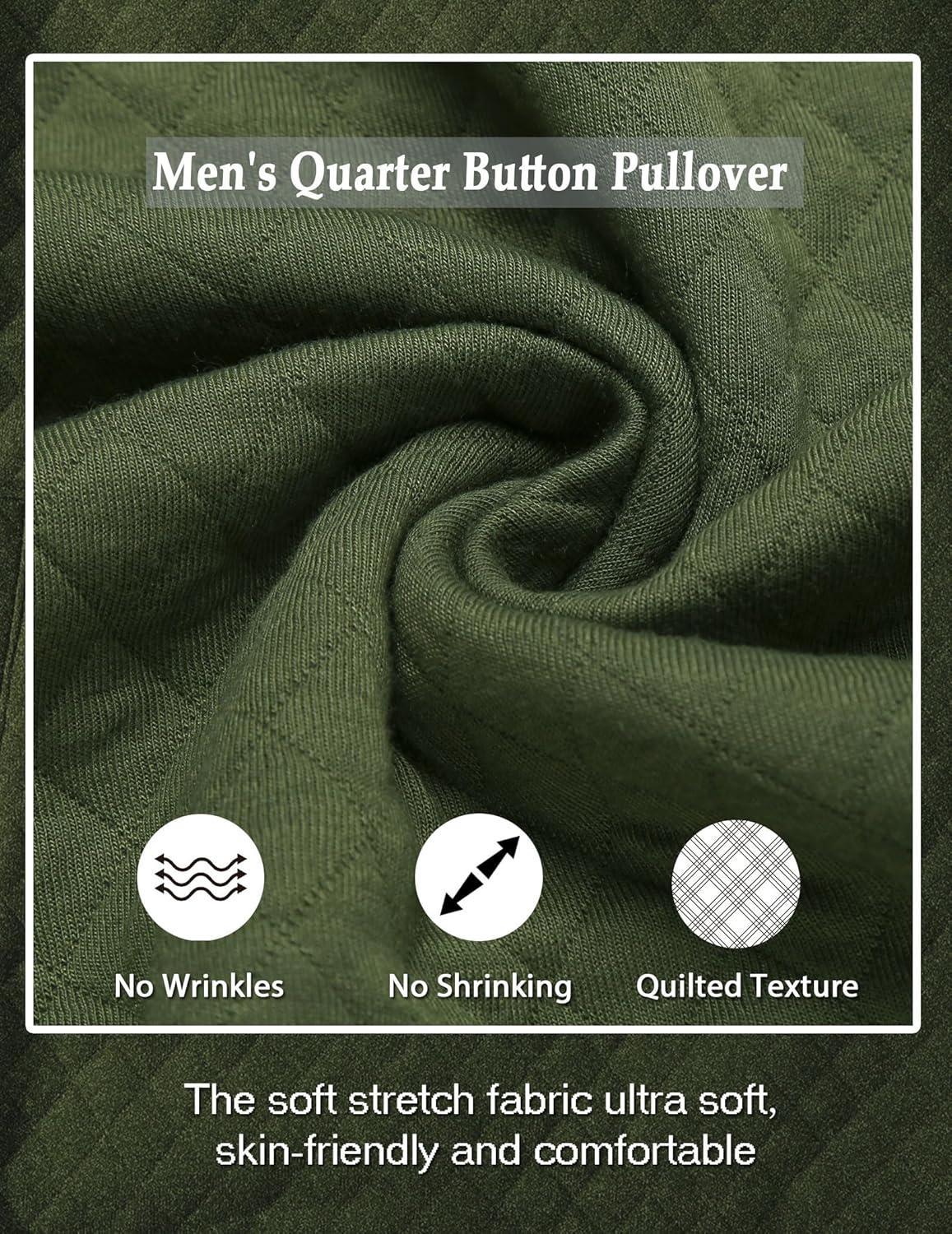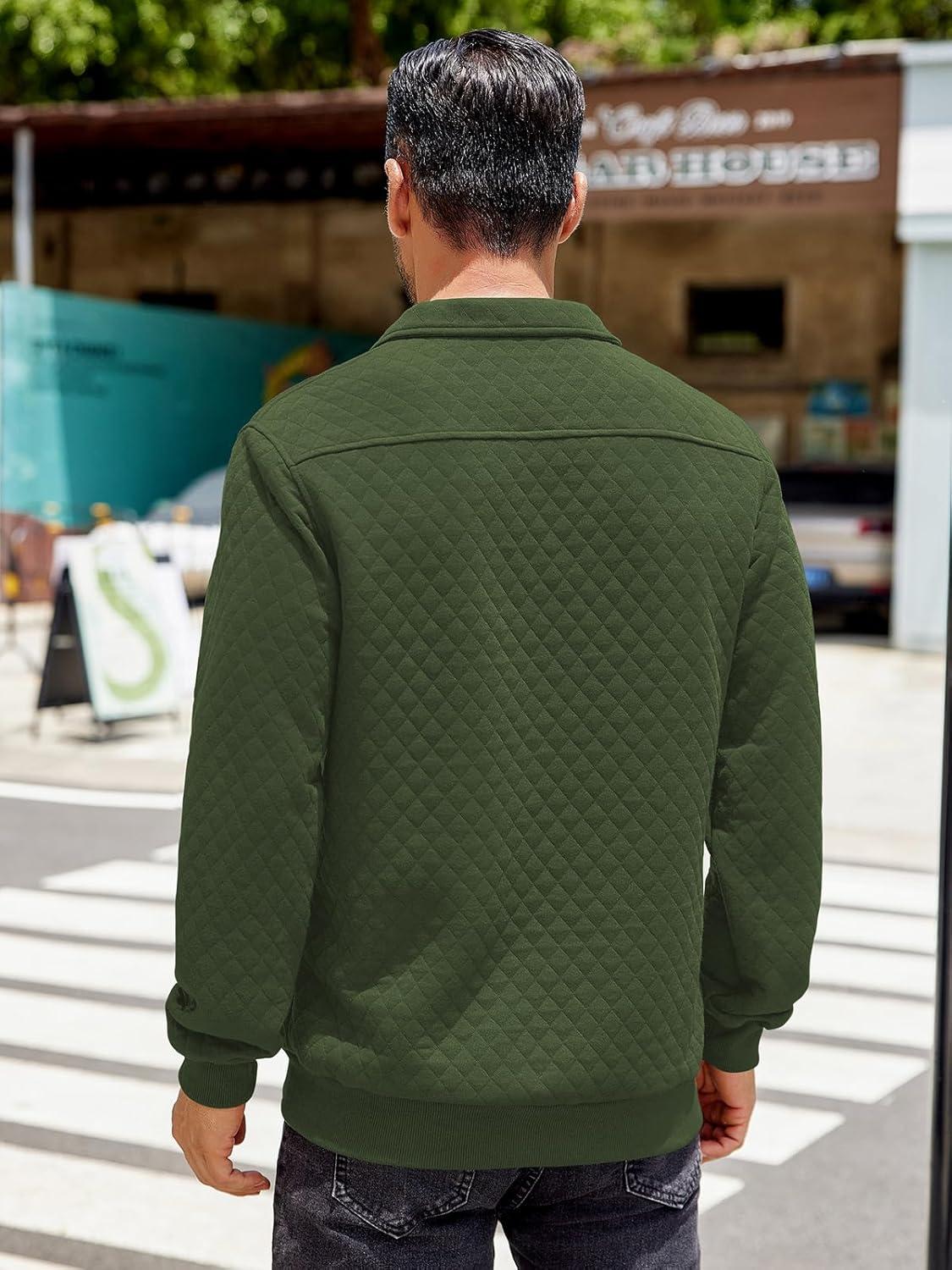 COOFANDY Mens Quarter Sweatshirt Quilted Long Sleeve Mock Neck Active Sweater Waffle Pullover Polo Shirts With Pockets(Army Green)