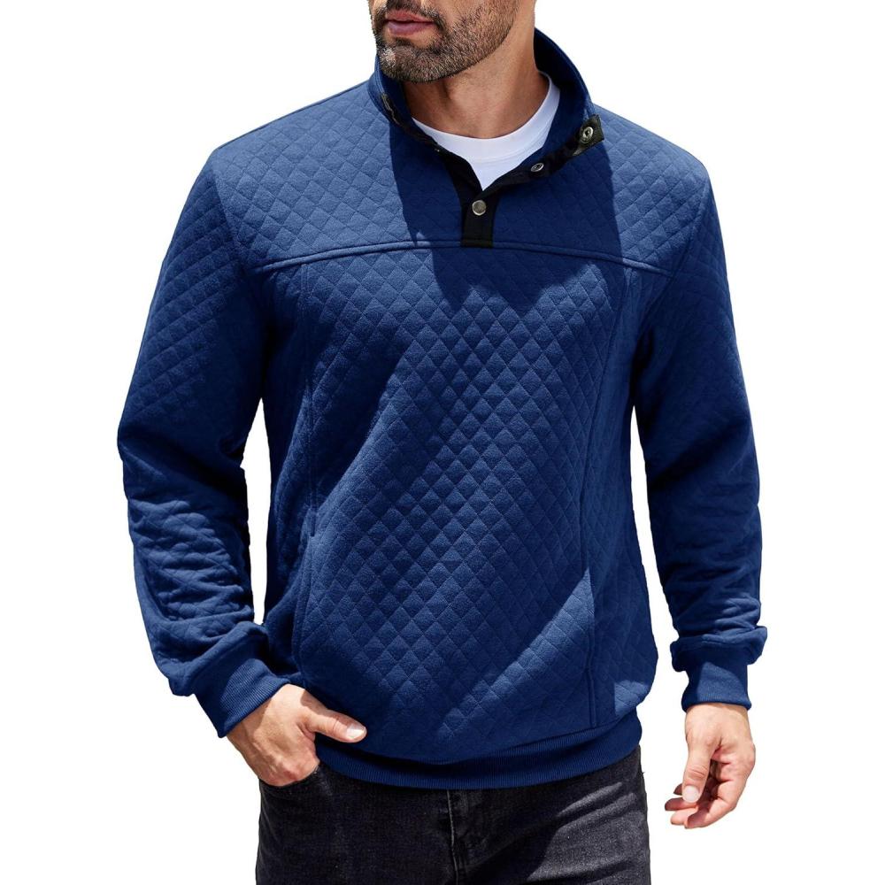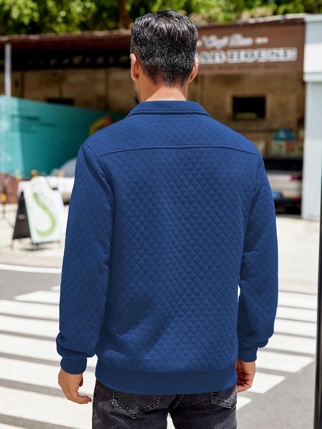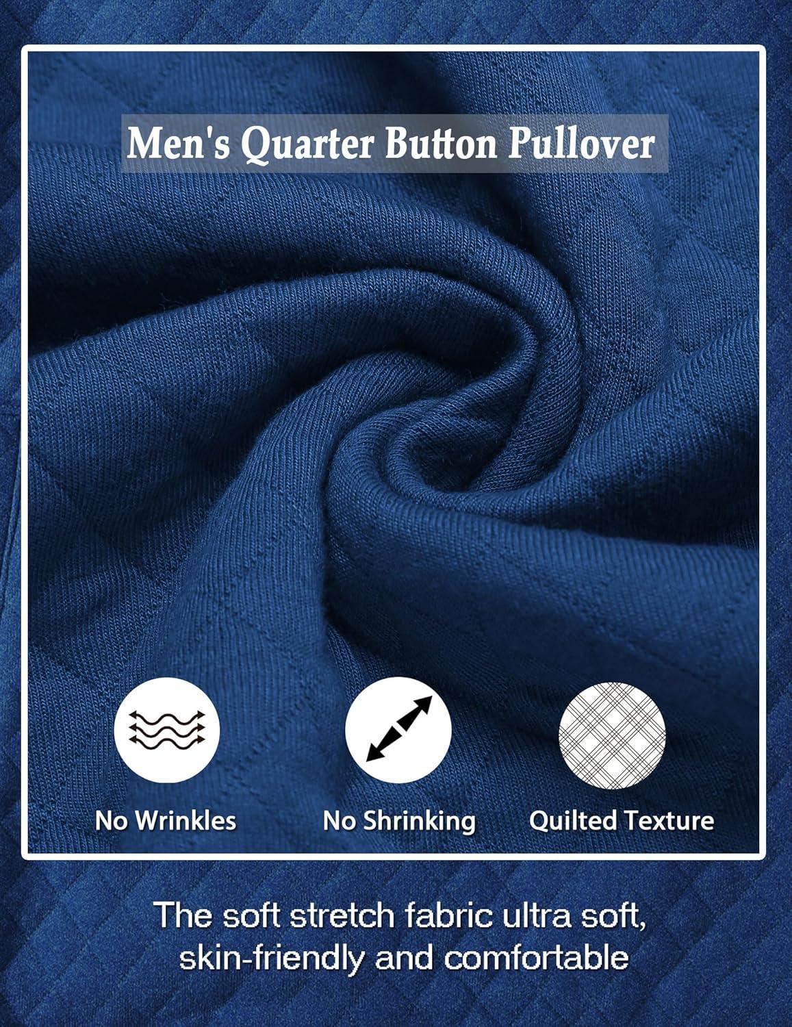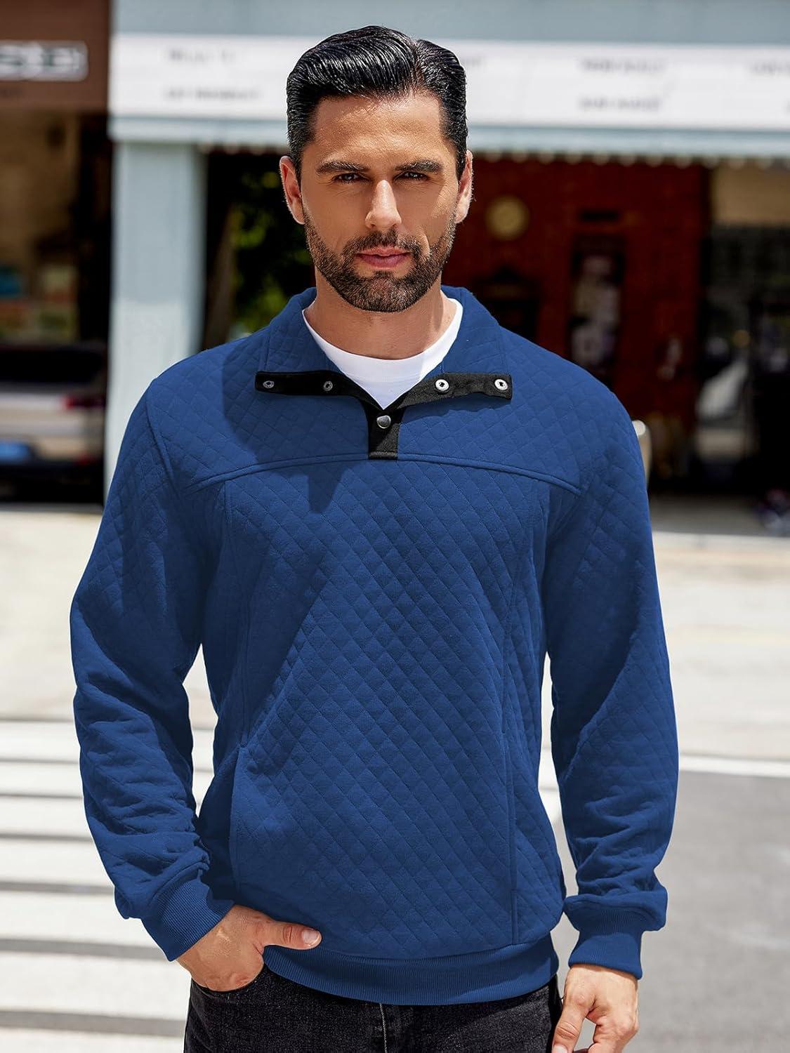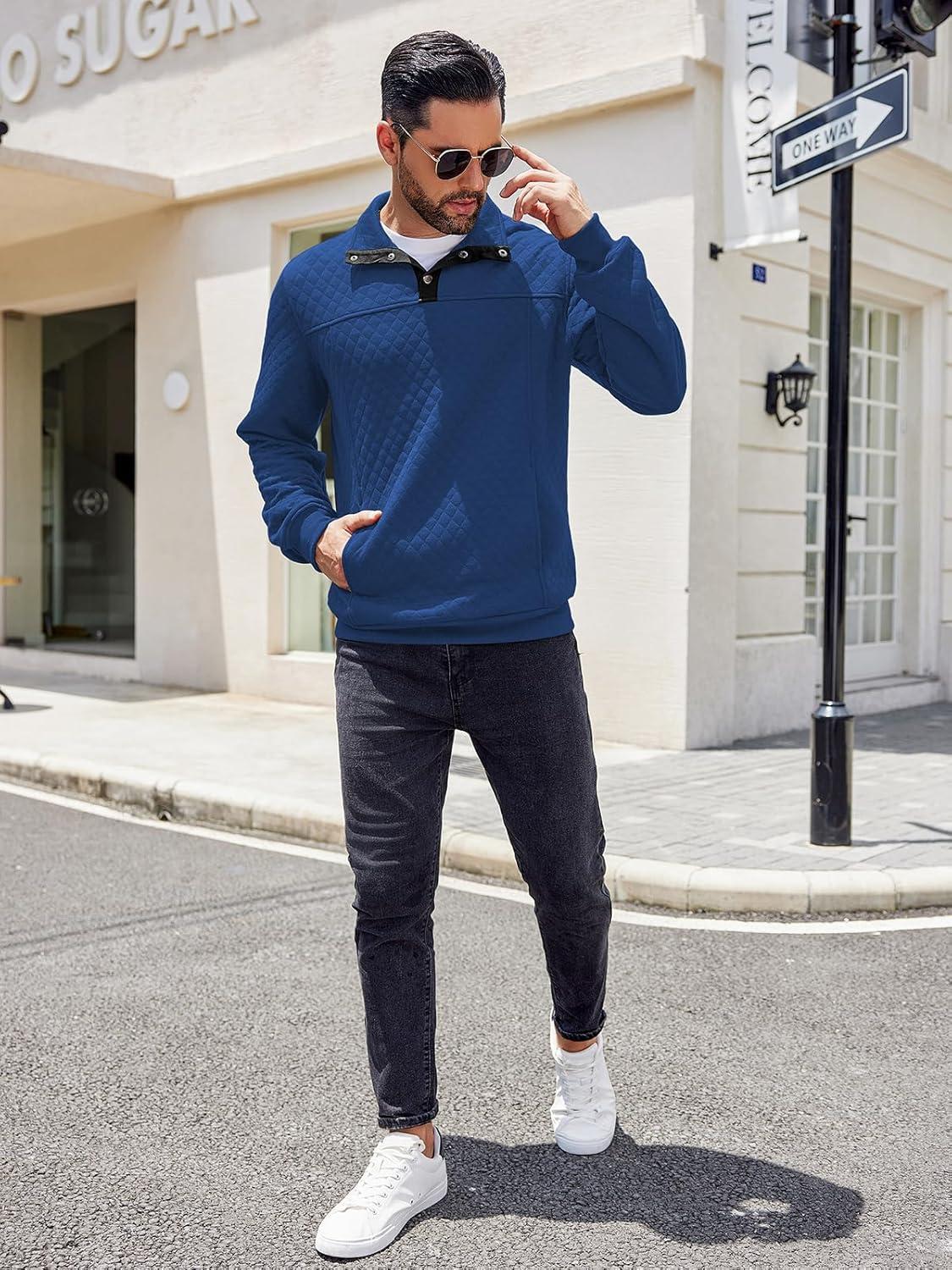 COOFANDY Mens Quarter Sweatshirt Quilted Long Sleeve Mock Neck Active Sweater Waffle Pullover Polo Shirts With Pockets(Blue)