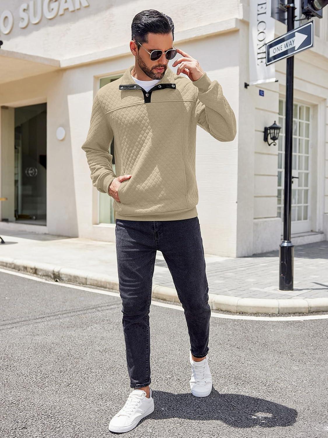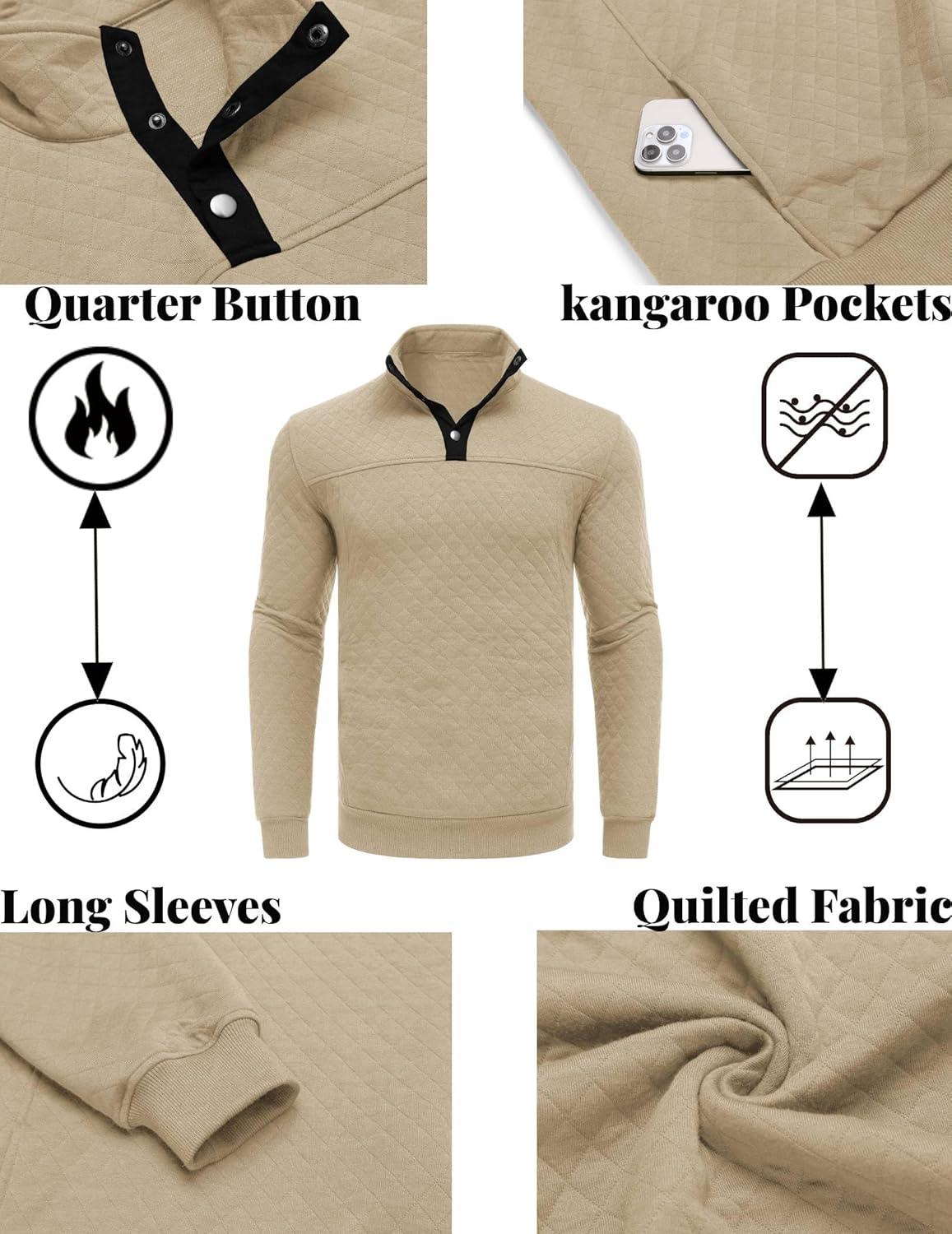 COOFANDY Mens Quarter Sweatshirt Quilted Long Sleeve Mock Neck Active Sweater Waffle Pullover Polo Shirts With Pockets(Coffee New)