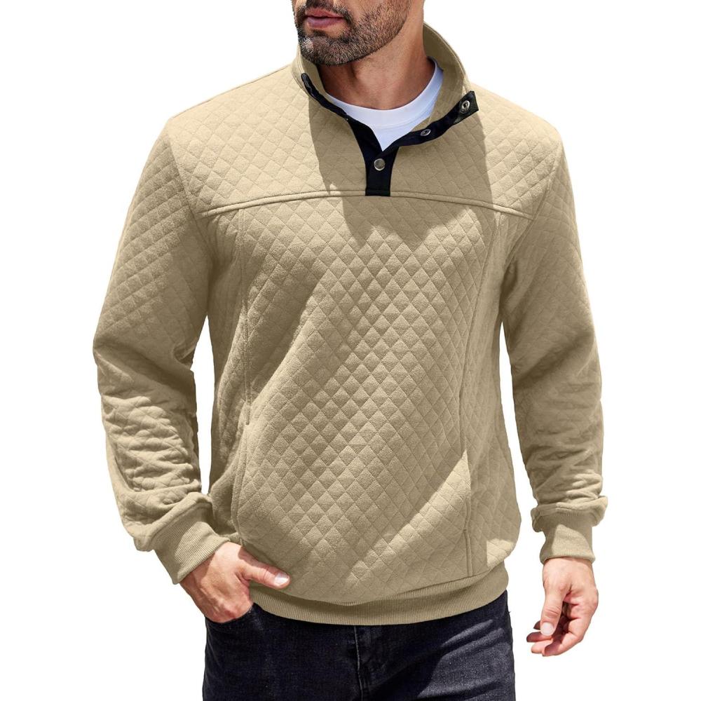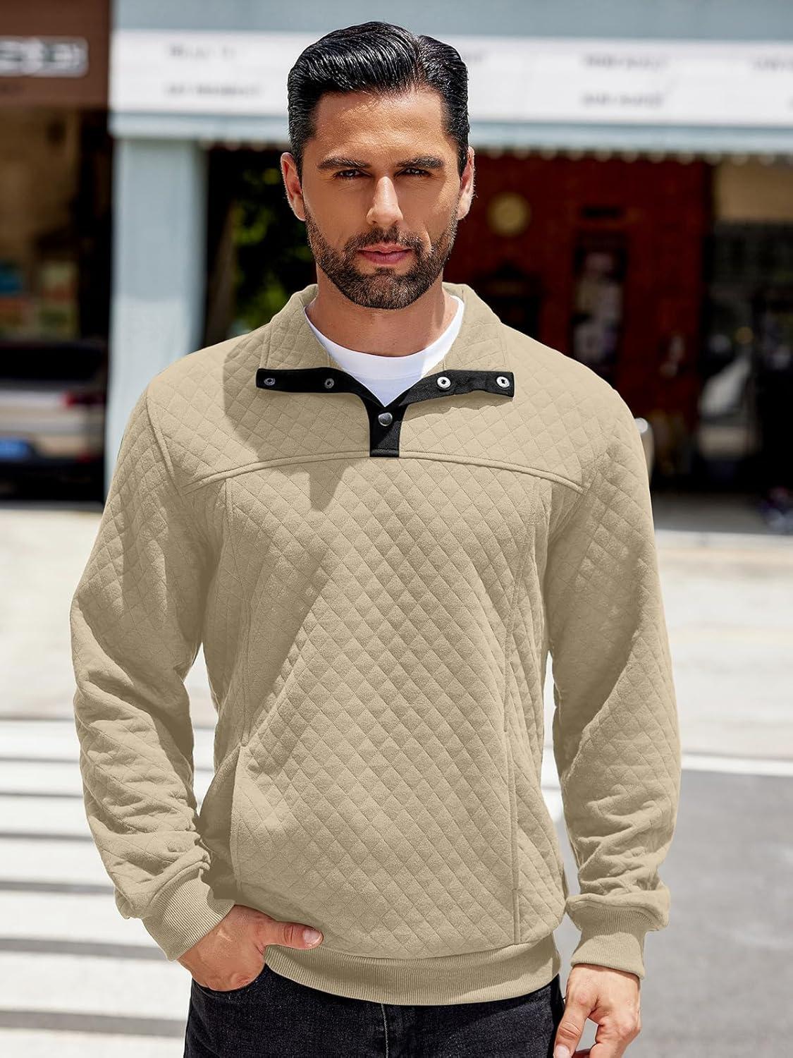 COOFANDY Mens Quarter Sweatshirt Quilted Long Sleeve Mock Neck Active Sweater Waffle Pullover Polo Shirts With Pockets(Light Brown)