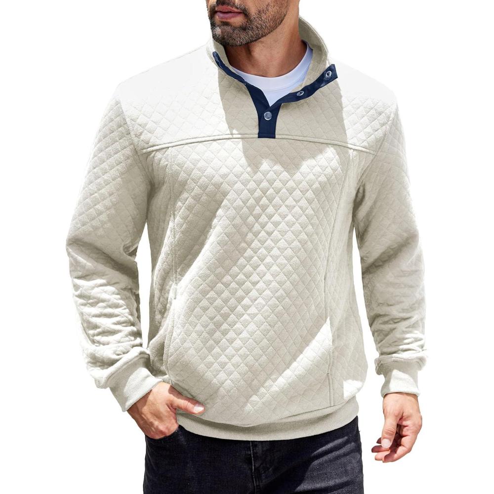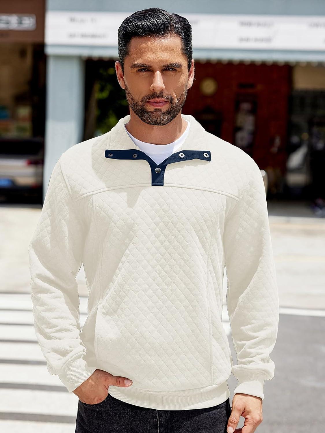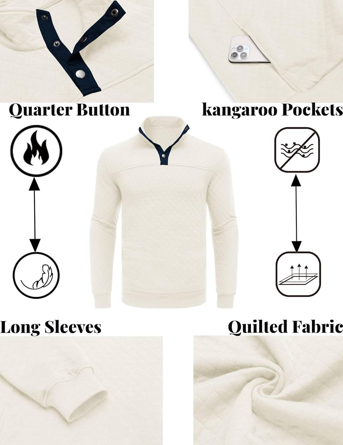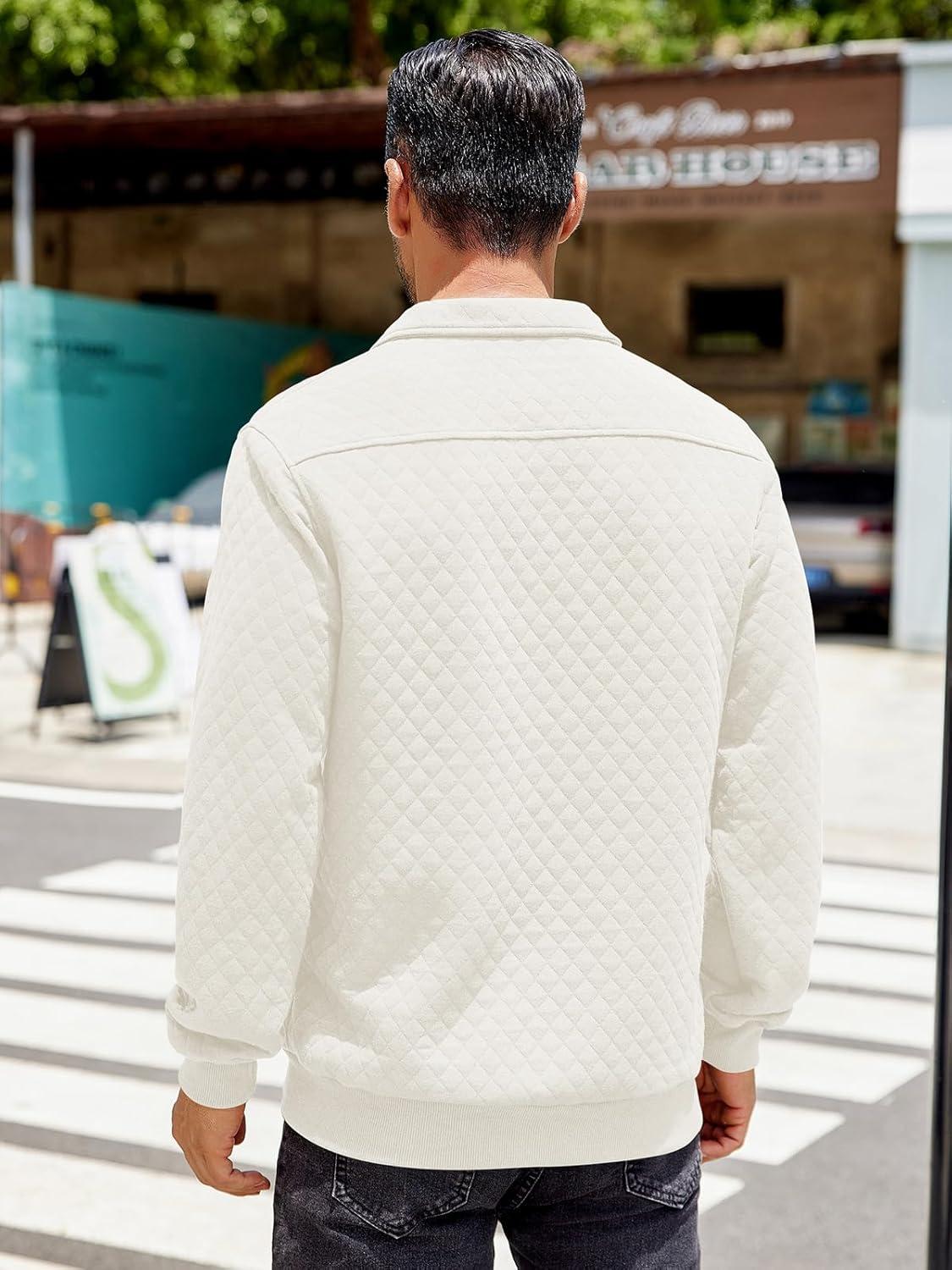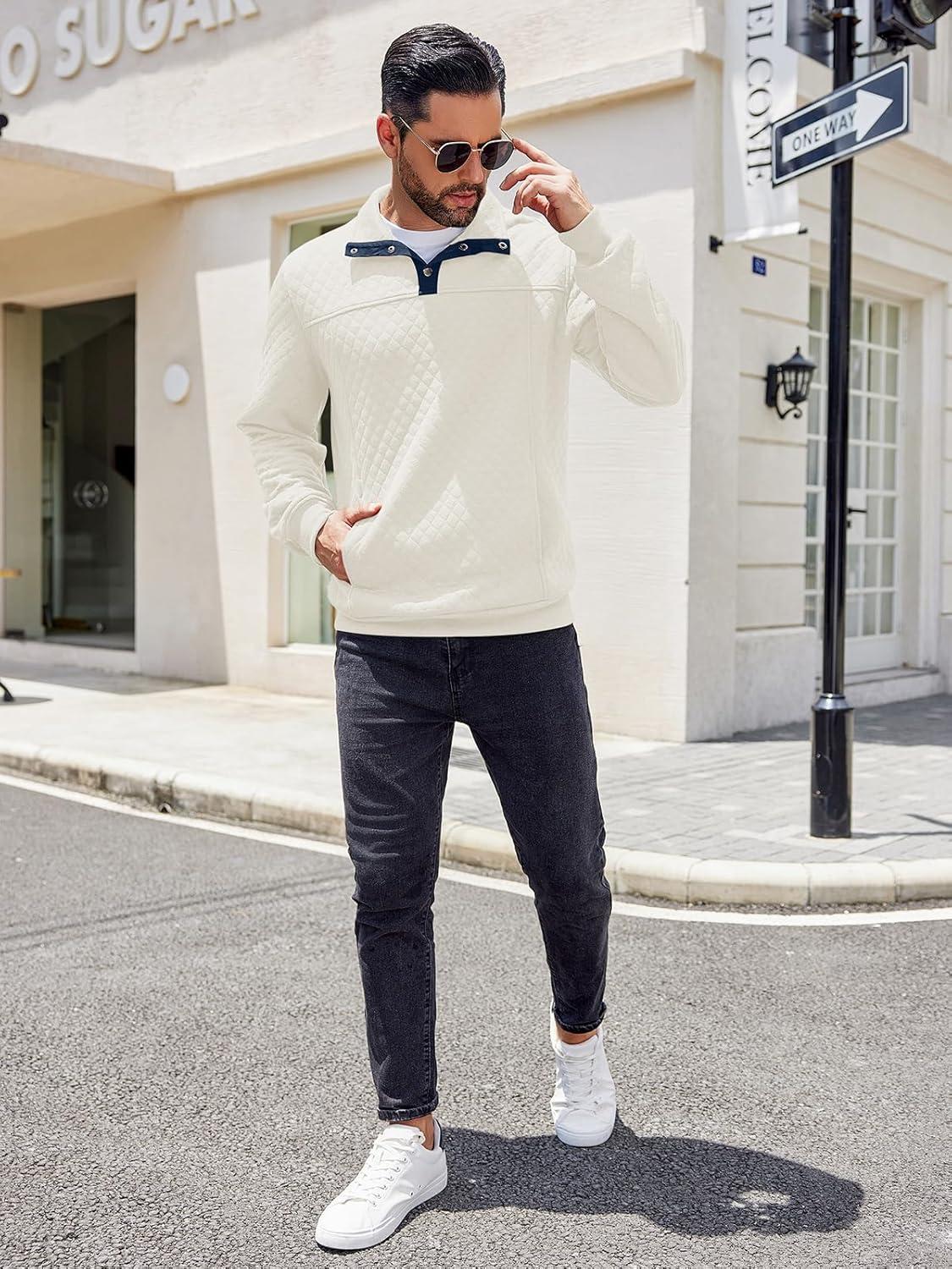 COOFANDY Mens Quarter Sweatshirt Quilted Long Sleeve Mock Neck Active Sweater Waffle Pullover Polo Shirts With Pockets(White)