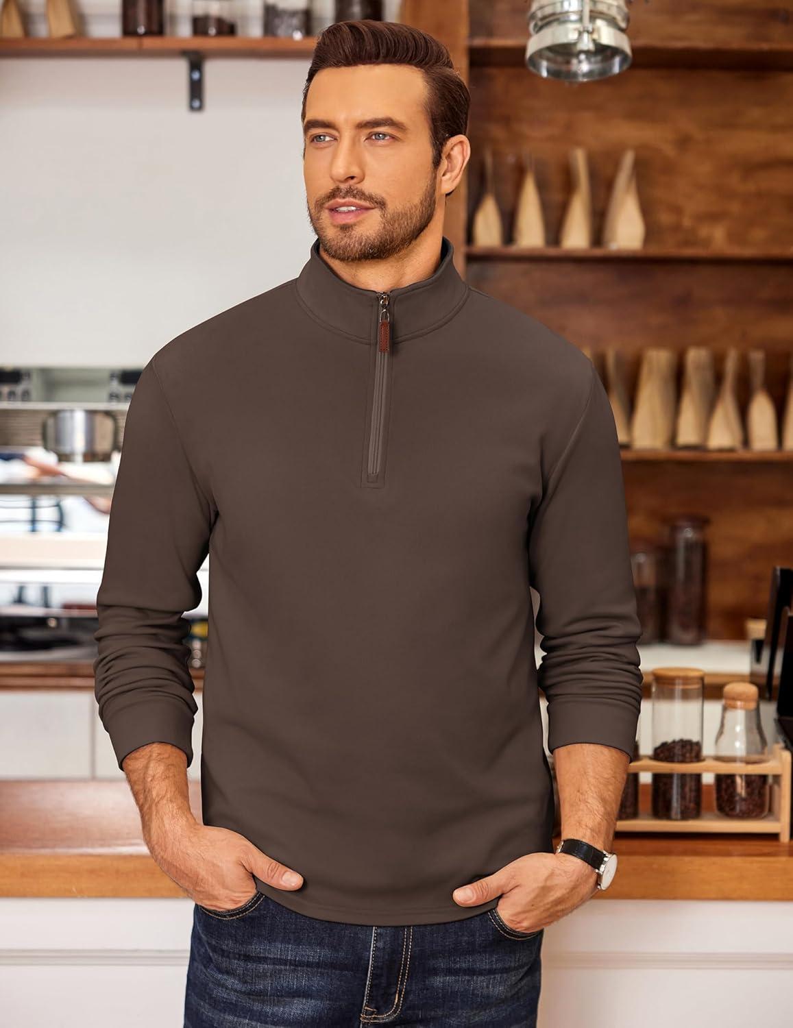 COOFANDY Men's Quarter Zip Fleece Pullover Lightweight Mock Neck Sweatshirt(Chestnut Brown)