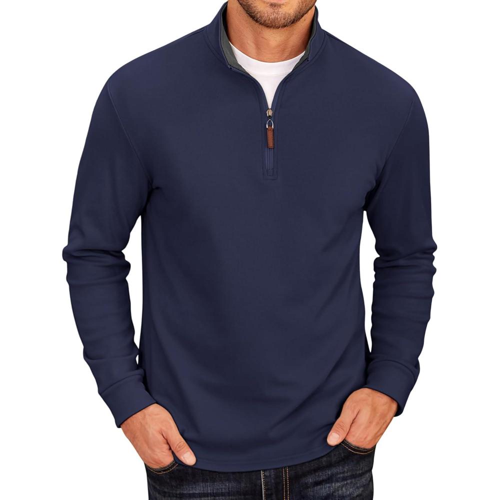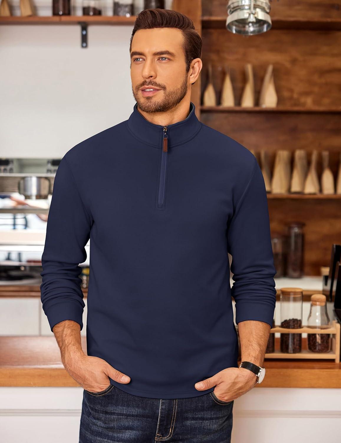 COOFANDY Men’s Quarter Zip Fleece Pullover Lightweight Mock Neck Sweatshirt(Navy Blue)