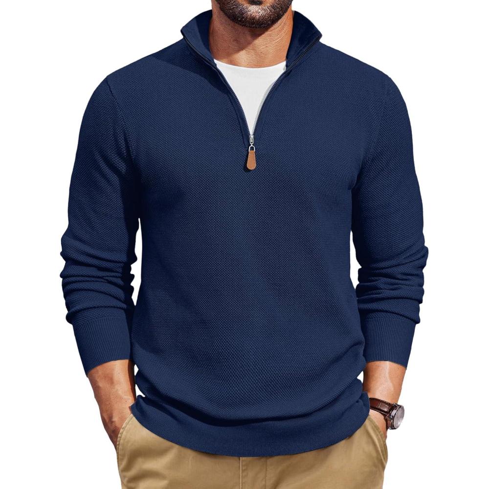 COOFANDY Men's Quarter Zip Pullover Dress Slim Fit Sweater Mock Neck Sweaters Casual Long Sleeve Pullovers(Navy Blue)