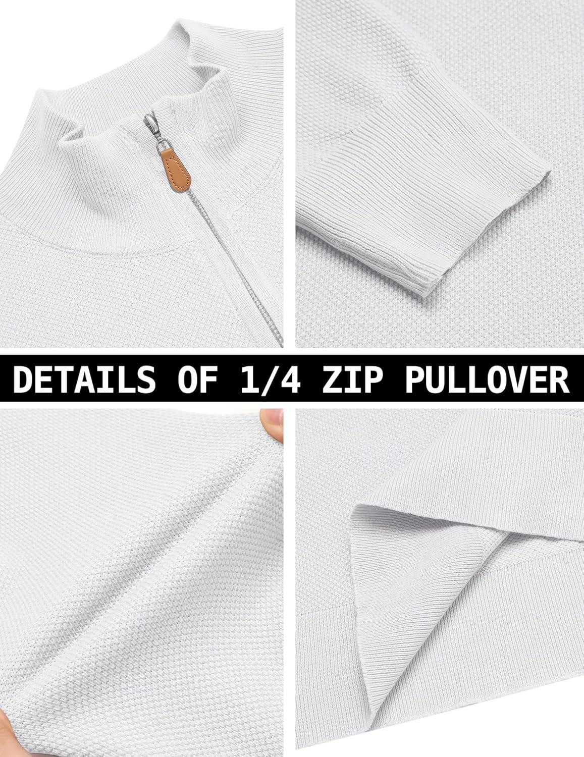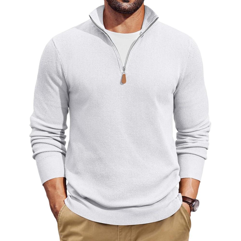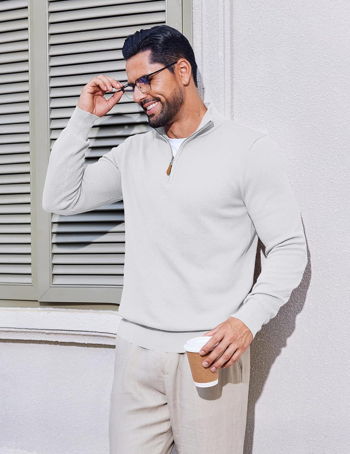 COOFANDY Men’s Quarter Zip Pullover Dress Slim Fit Sweater Mock Neck Sweaters Casual Long Sleeve Pullovers(White)