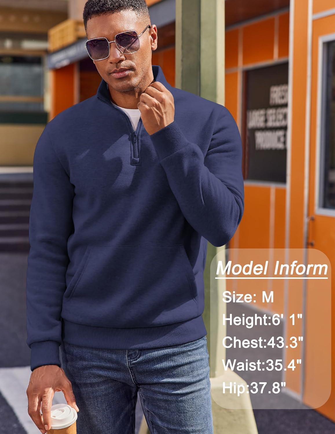COOFANDY Mens Quarter Zip Pullover Fleece Lined Sweatshirts Long Sleeve Mock Neck Sweater with Pocket(Navy Blue)