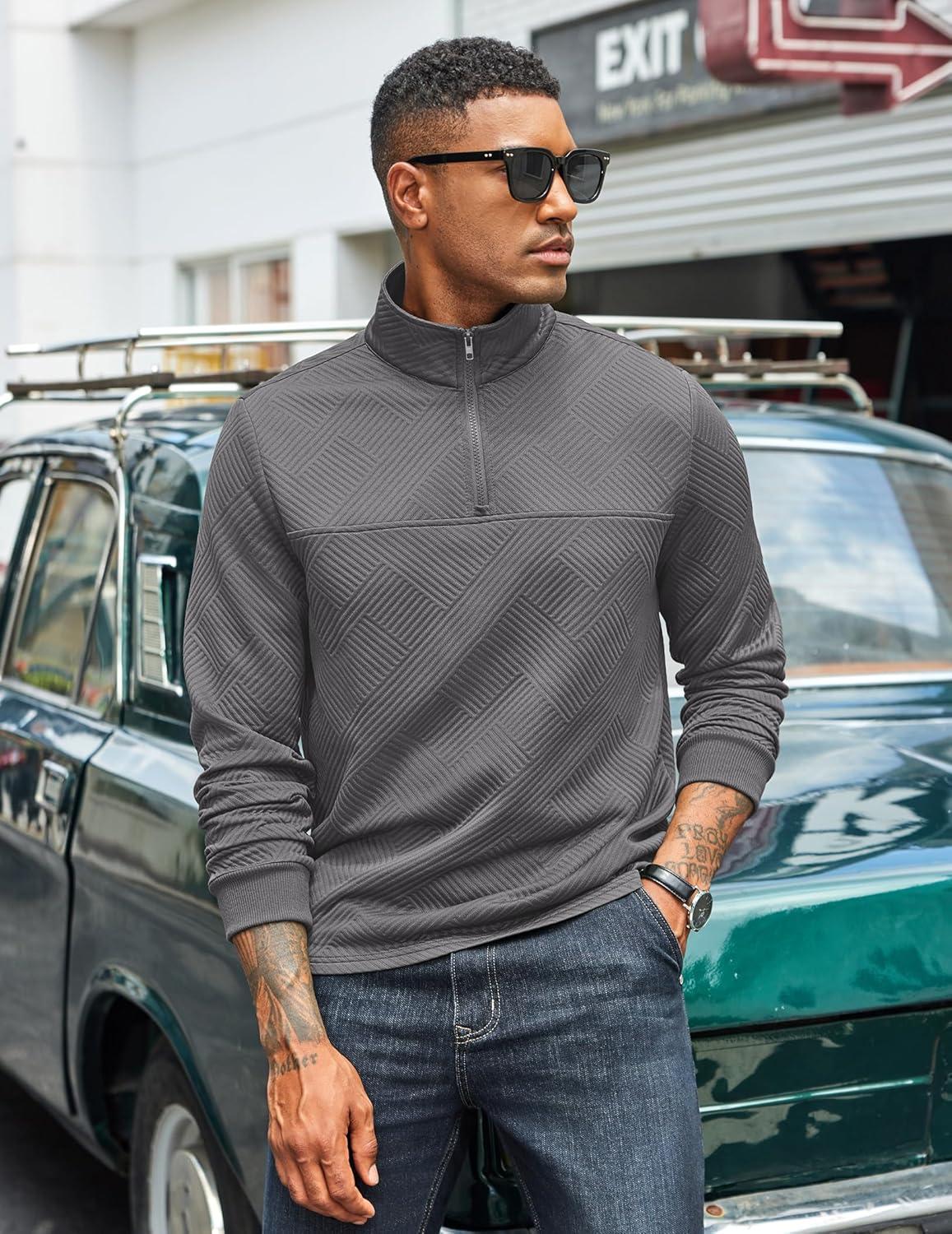 Be the first to review “COOFANDY Men’s Quarter Zip Pullover Lightweight Textured Sweatshirt Long Sleeve Casual Mock Neck Polo Shirts(Dark Grey)” Cancel reply