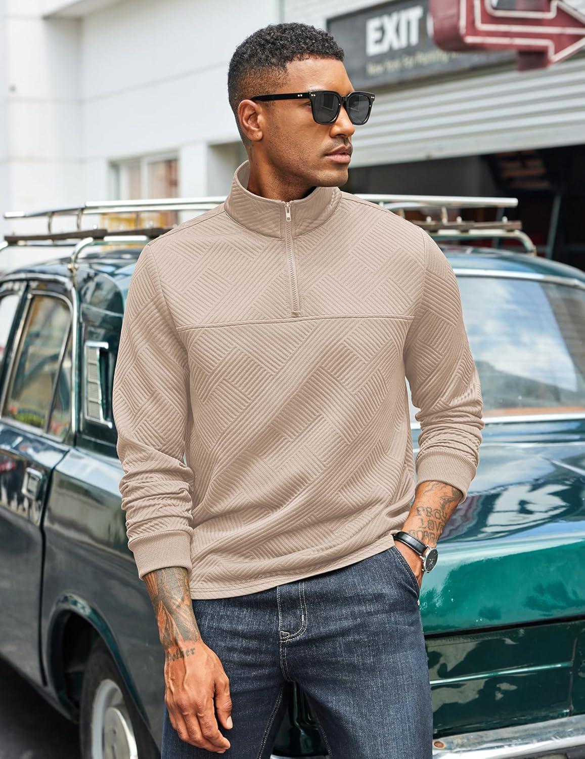 Be the first to review “COOFANDY Men’s Quarter Zip Pullover Lightweight Textured Sweatshirt Long Sleeve Casual Mock Neck Polo Shirts(Khaki)” Cancel reply