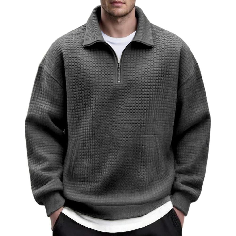 COOFANDY Mens Quarter Zip Pullover Long Sleeve Quilted Sweatshirt Casual Waffle Sweaters Polo with Pocket(Dark Grey)