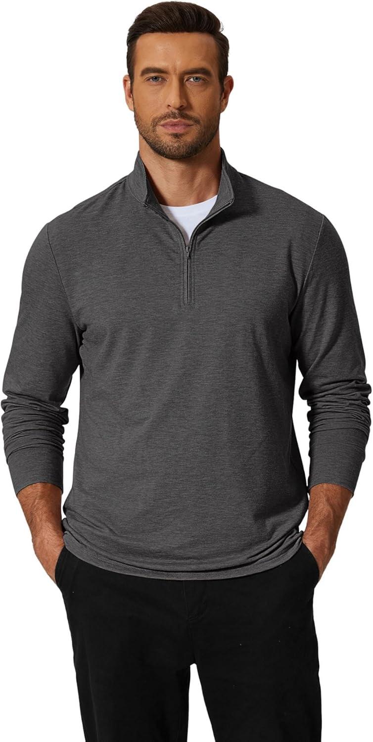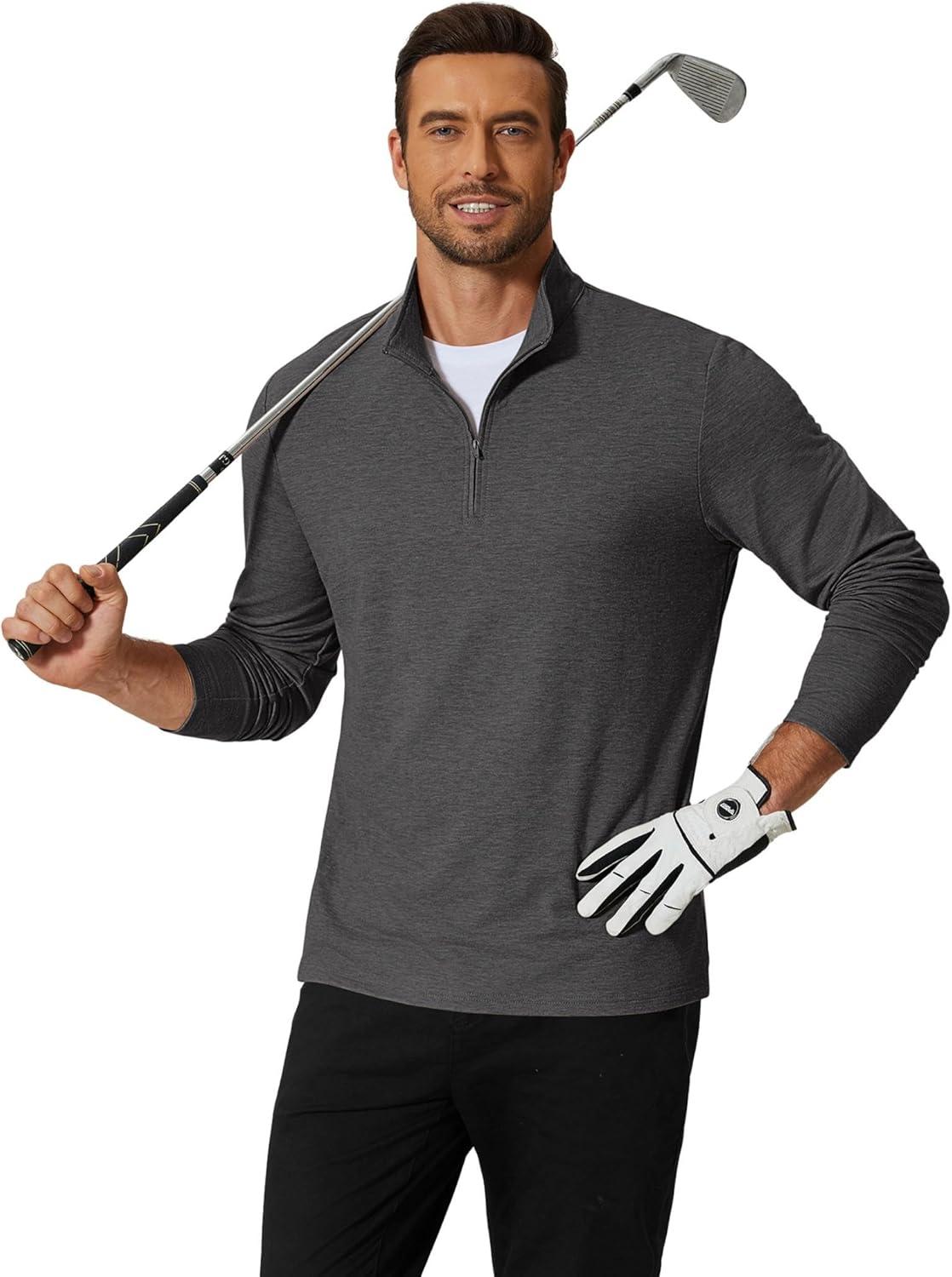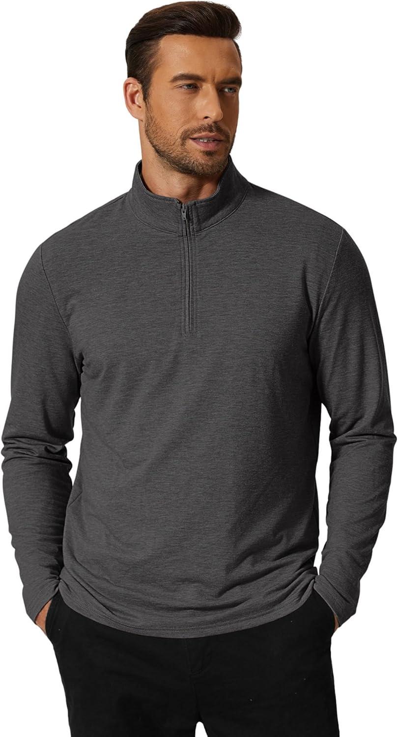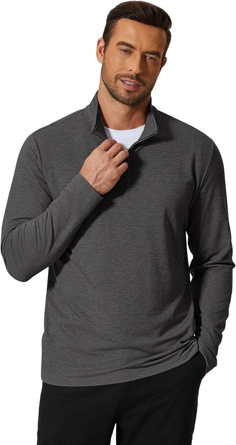 COOFANDY Men’s Quarter Zip Pullover Mock Neck Golf Shirts Casual Long Sleeve Shirt(Grey)