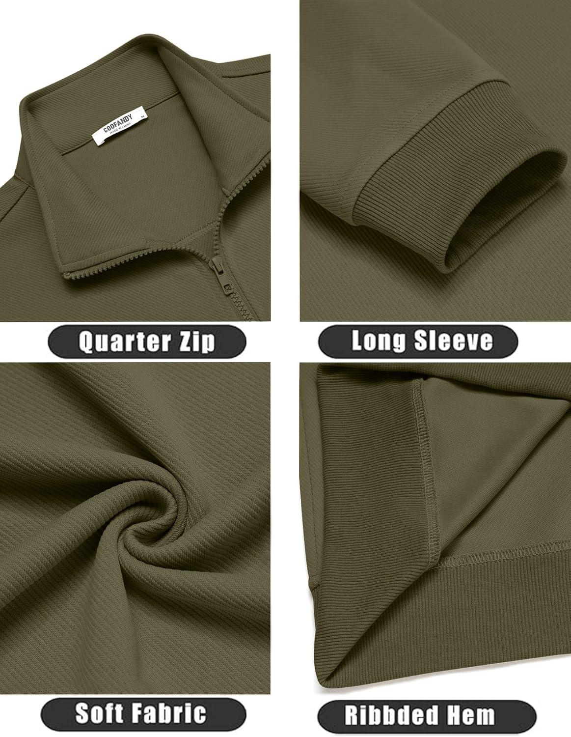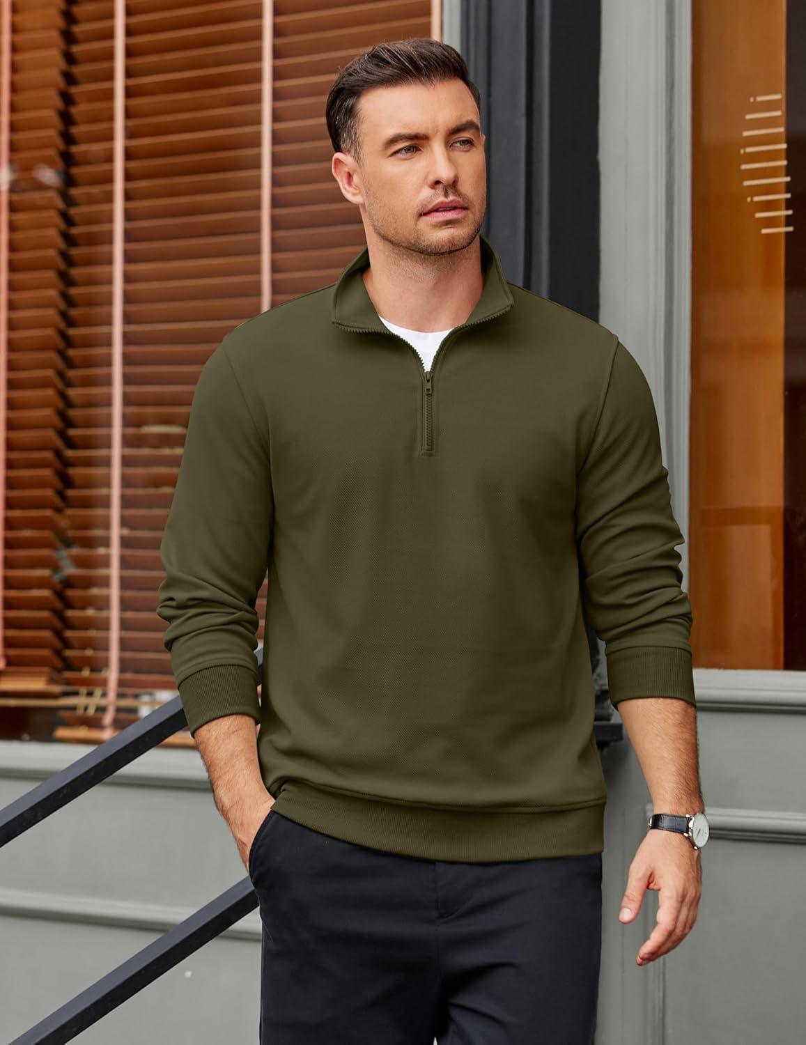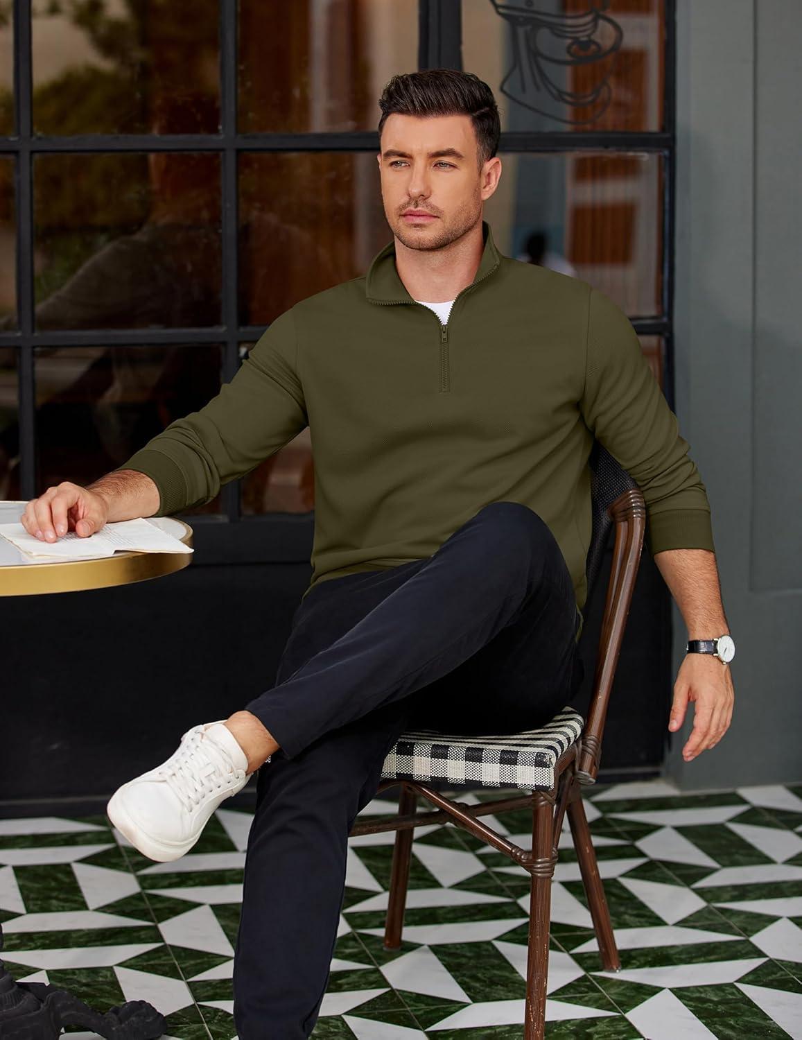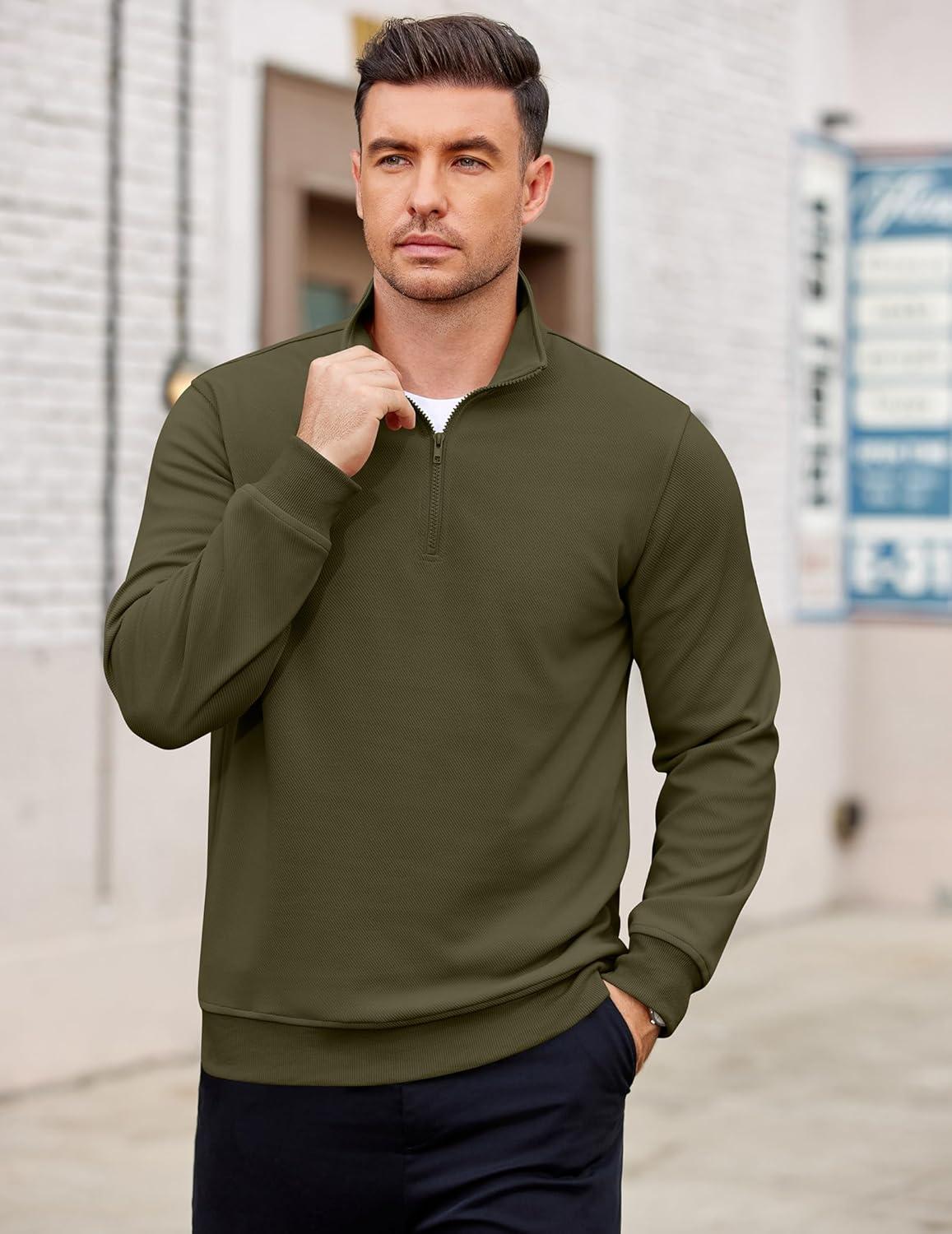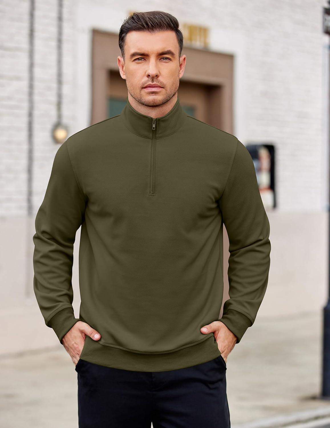 COOFANDY Men’s Quarter Zip Pullover Mock Neck Lightweight Sweatshirt Long Sleeve Polo Shirt Business Casual Pullover Top(Army Green)