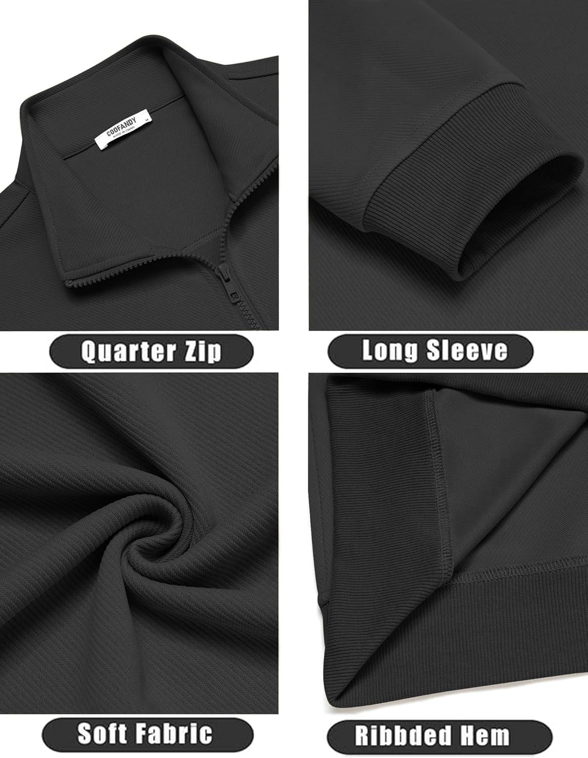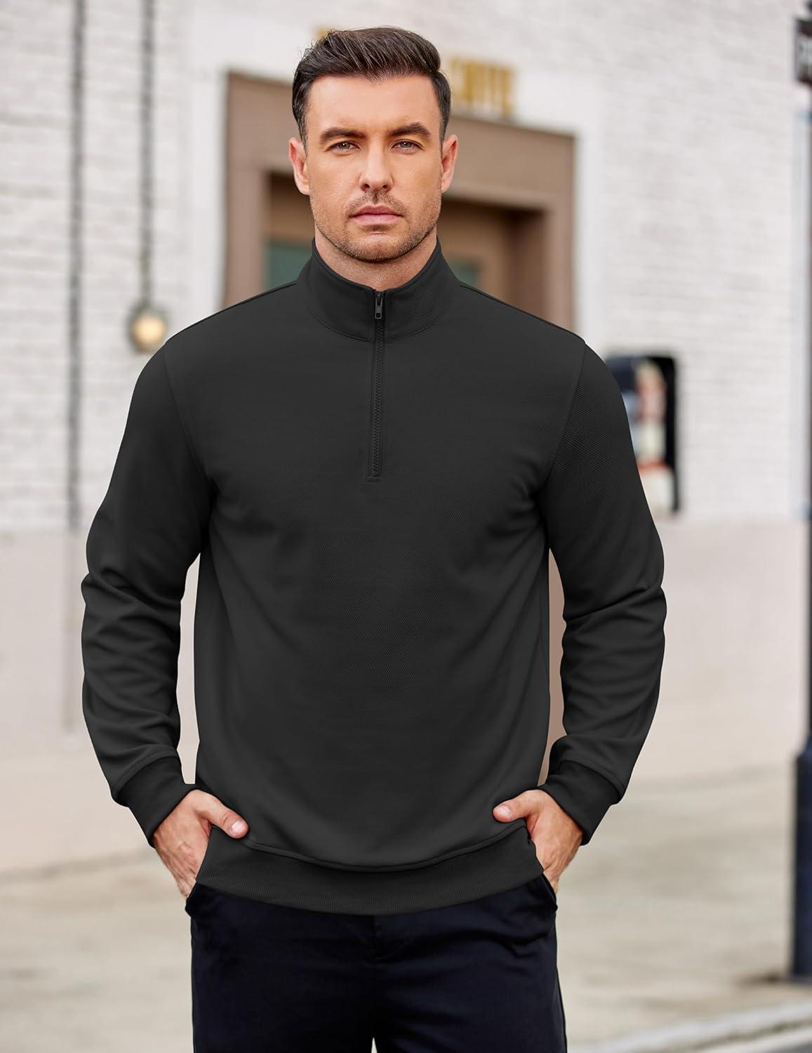 COOFANDY Men's Quarter Zip Pullover Mock Neck Lightweight Sweatshirt Long Sleeve Polo Shirt Business Casual Pullover Top(Black)