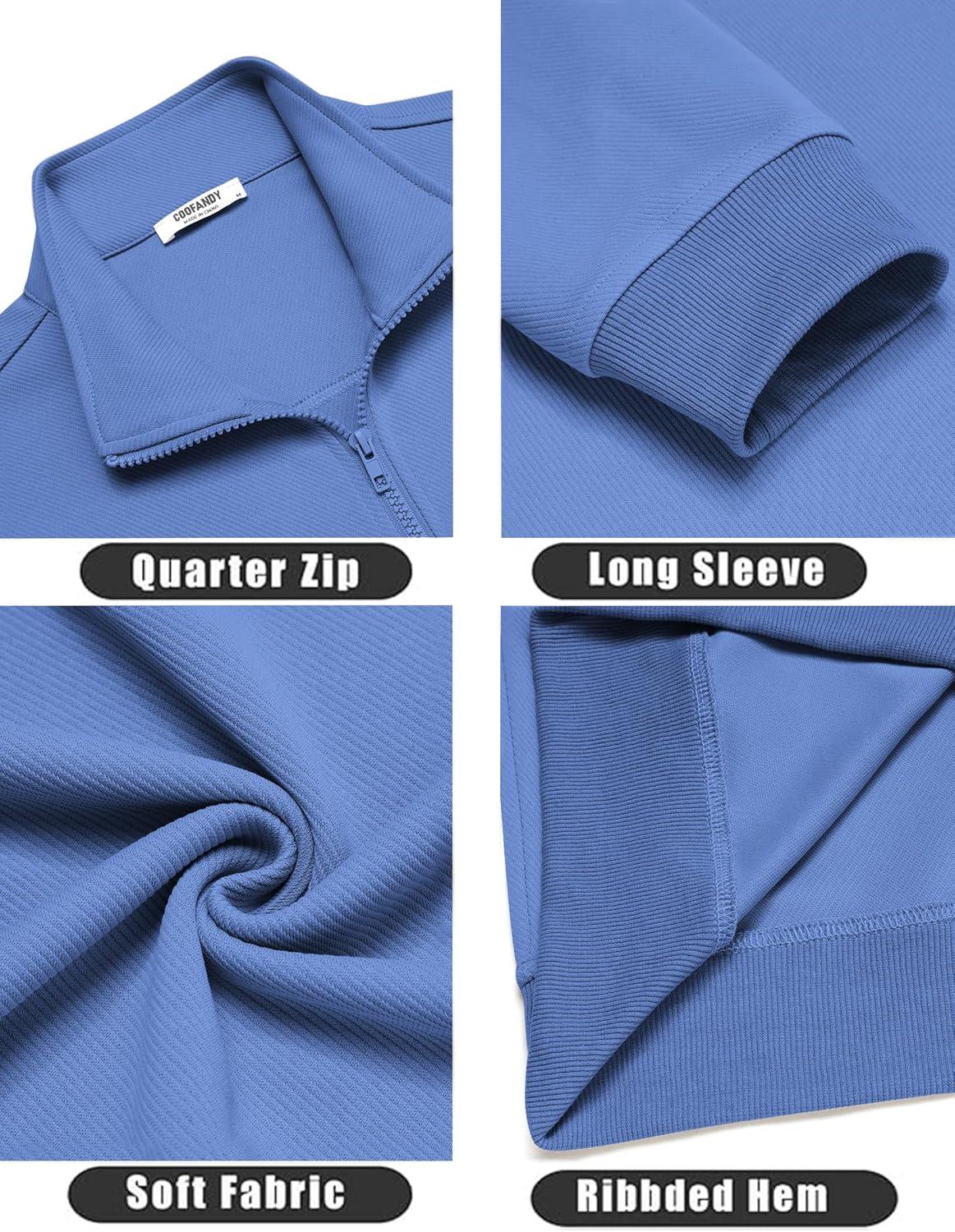 COOFANDY Men’s Quarter Zip Pullover Mock Neck Lightweight Sweatshirt Long Sleeve Polo Shirt Business Casual Pullover Top(Blue)