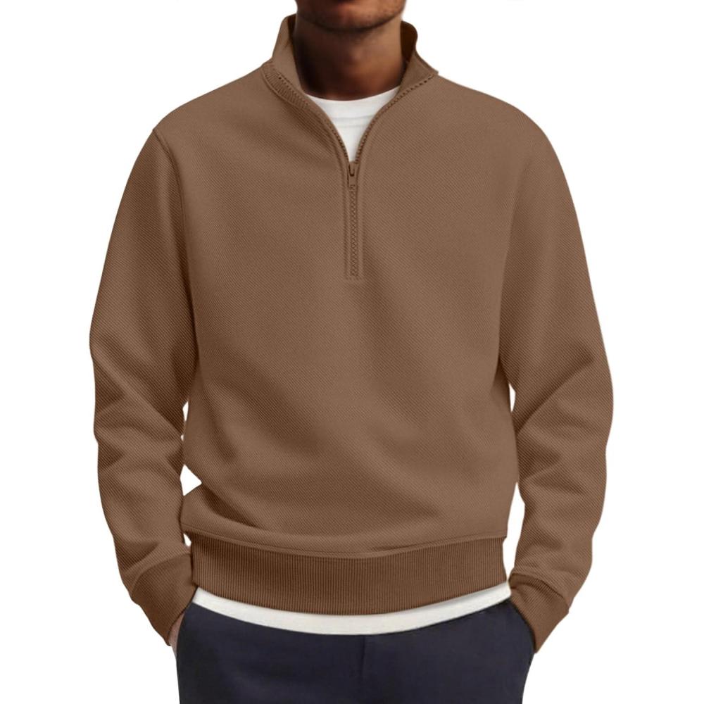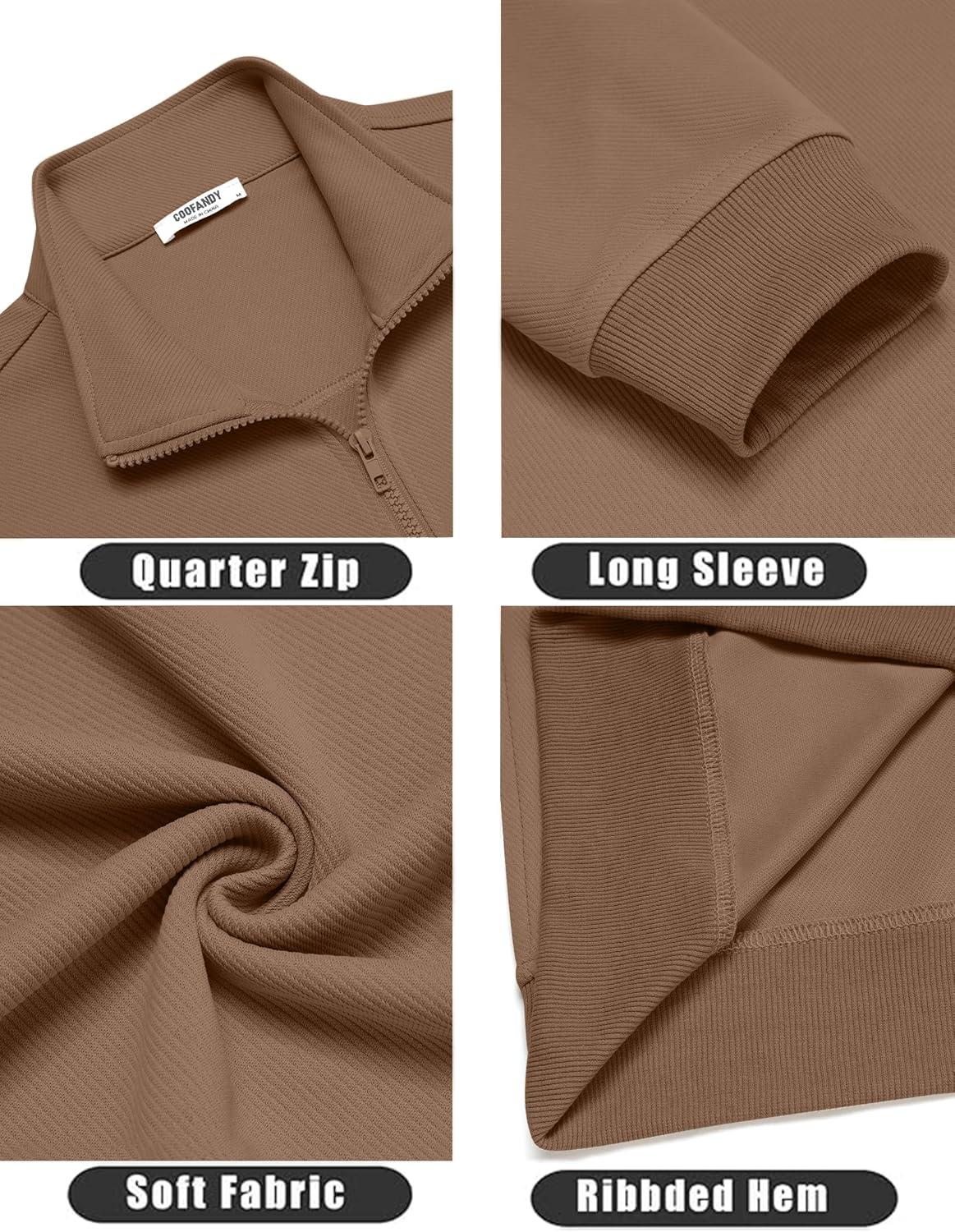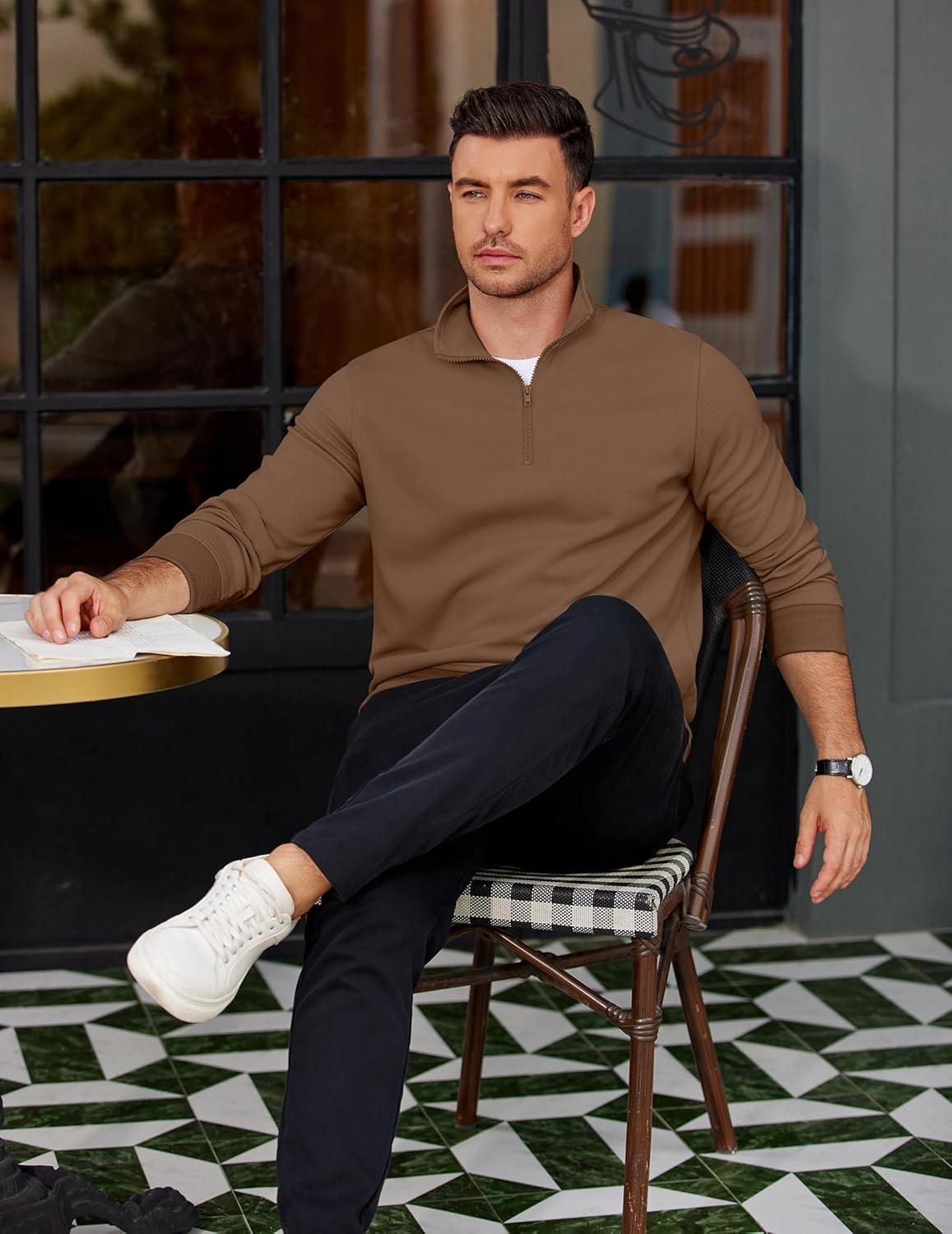 COOFANDY Men's Quarter Zip Pullover Mock Neck Lightweight Sweatshirt Long Sleeve Polo Shirt Business Casual Pullover Top(Brown)