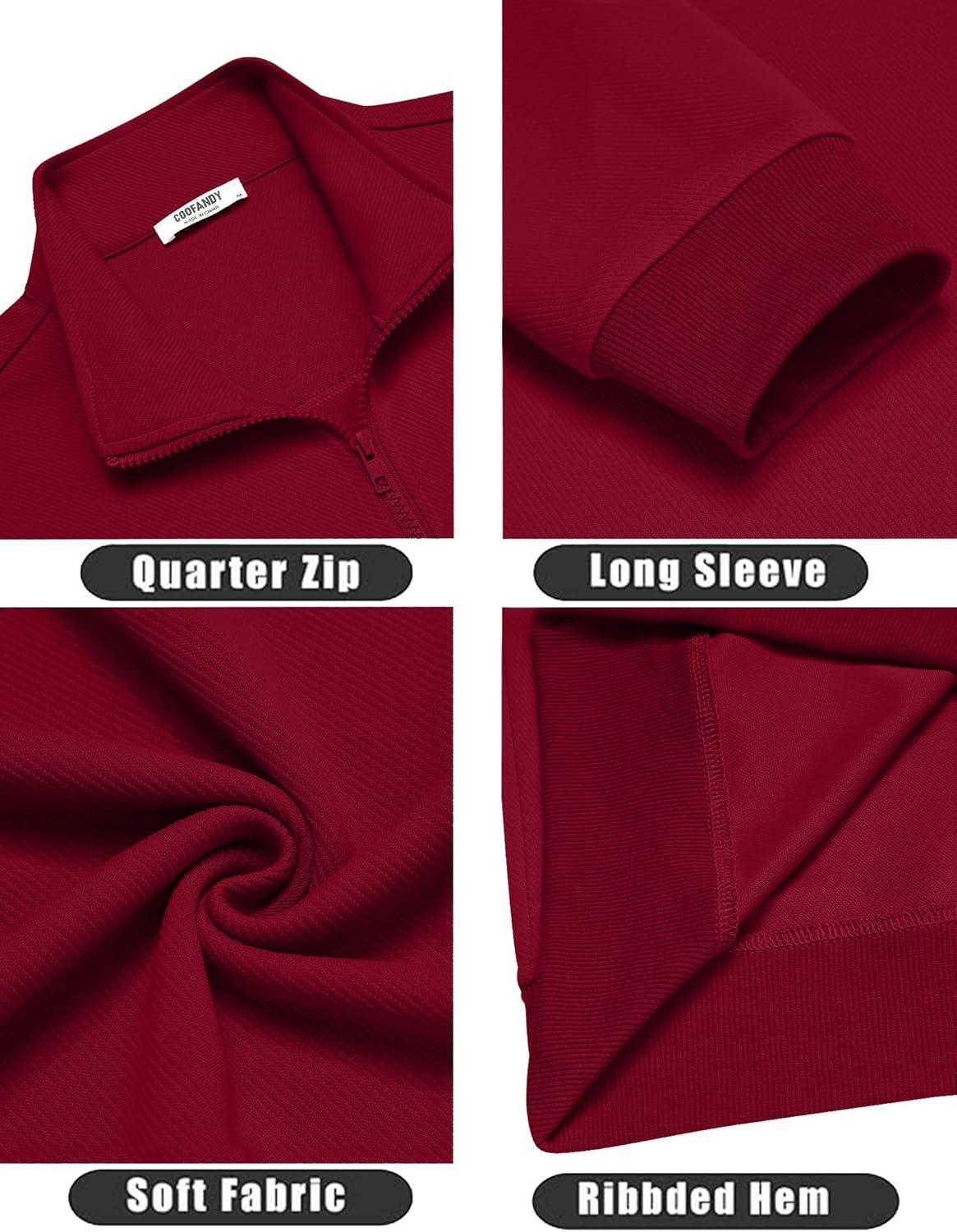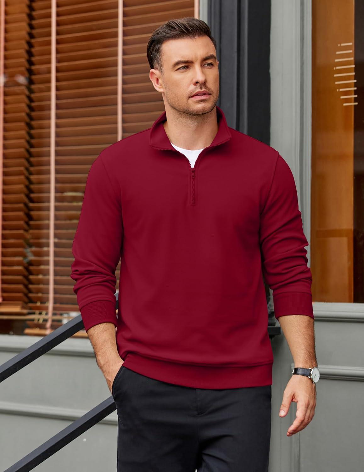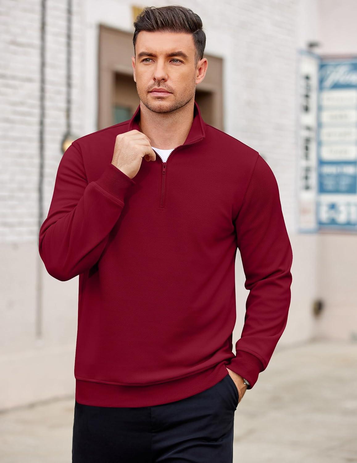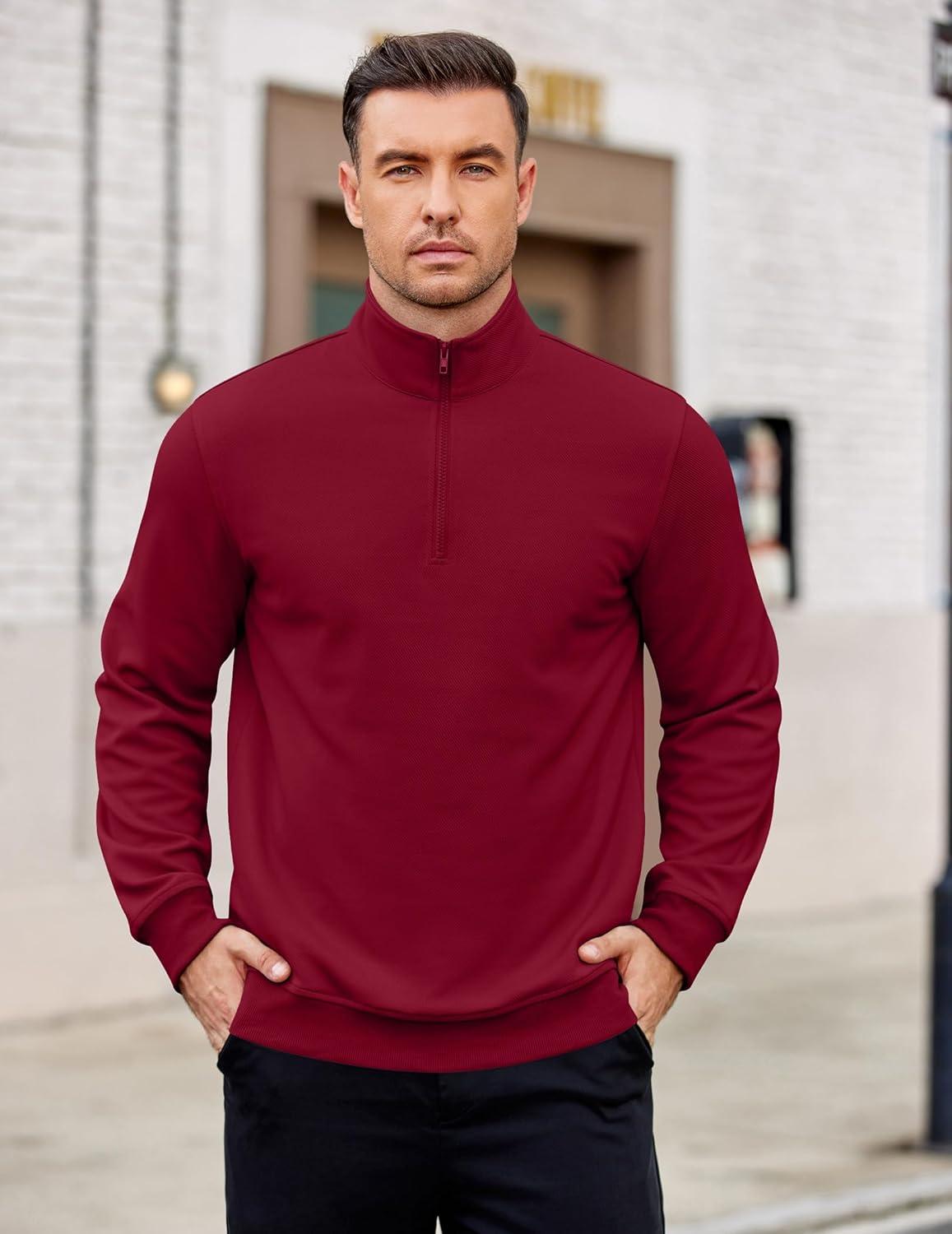 COOFANDY Men's Quarter Zip Pullover Mock Neck Lightweight Sweatshirt Long Sleeve Polo Shirt Business Casual Pullover Top(Dark Red)