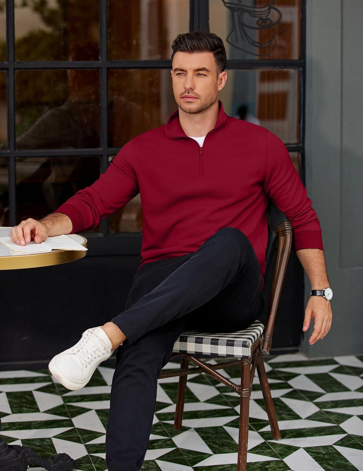 COOFANDY Men’s Quarter Zip Pullover Mock Neck Lightweight Sweatshirt Long Sleeve Polo Shirt Business Casual Pullover Top(Dark Red)