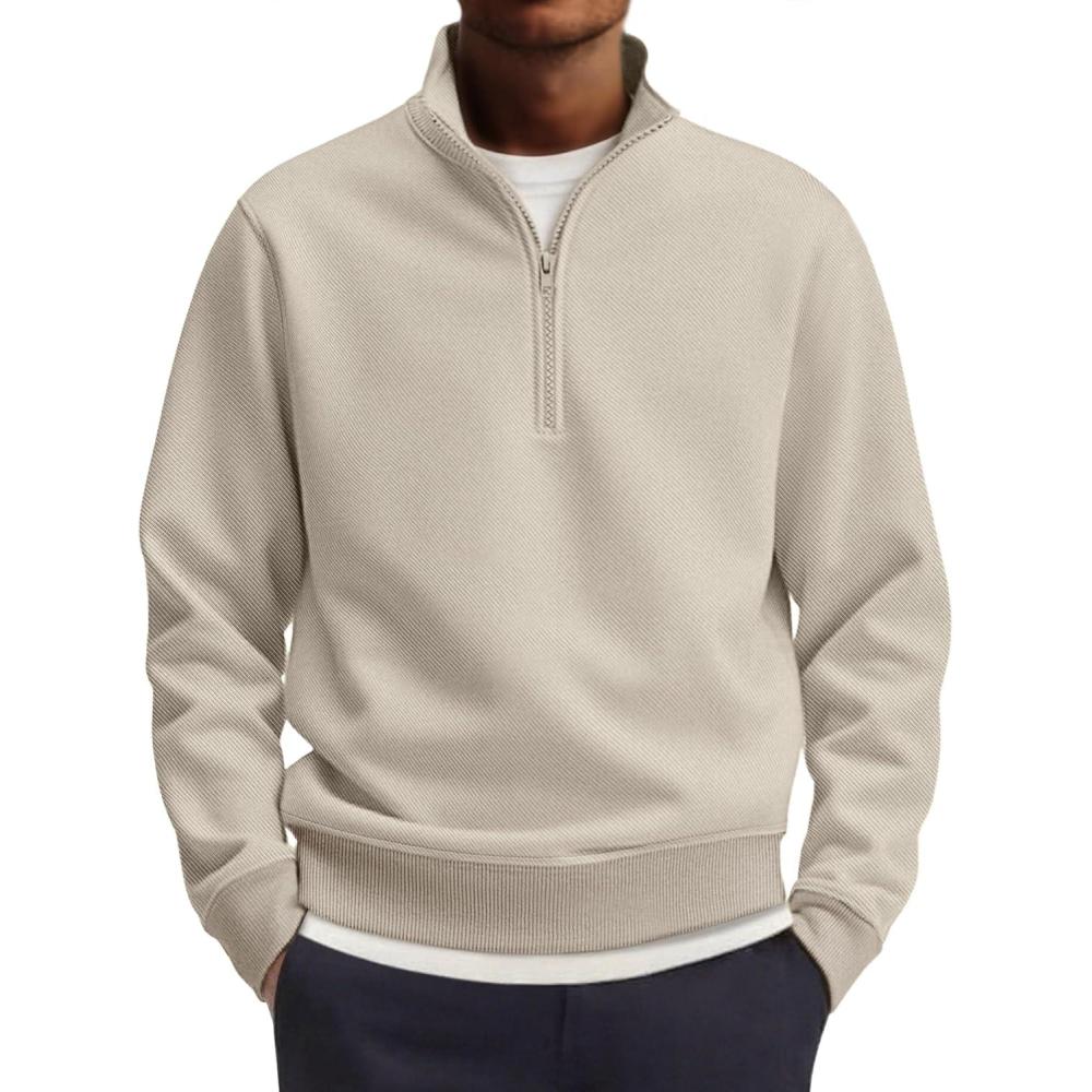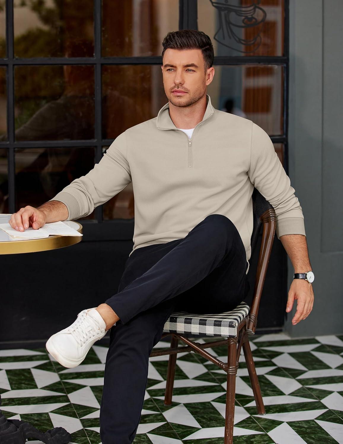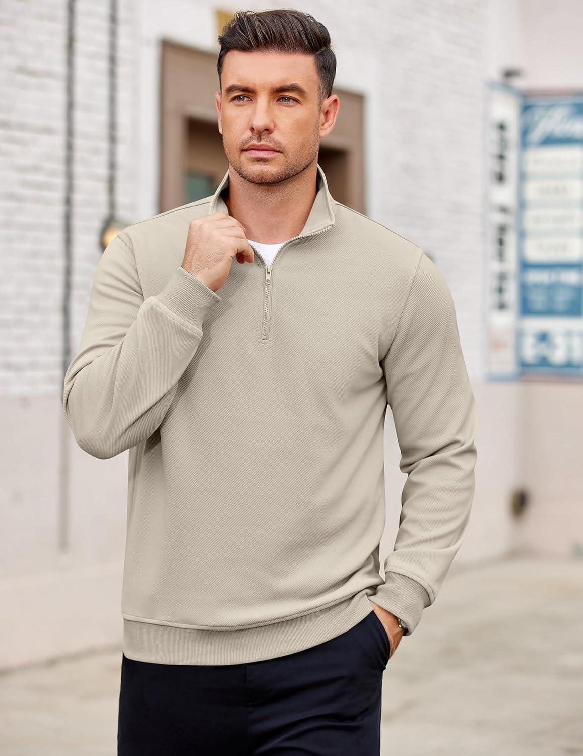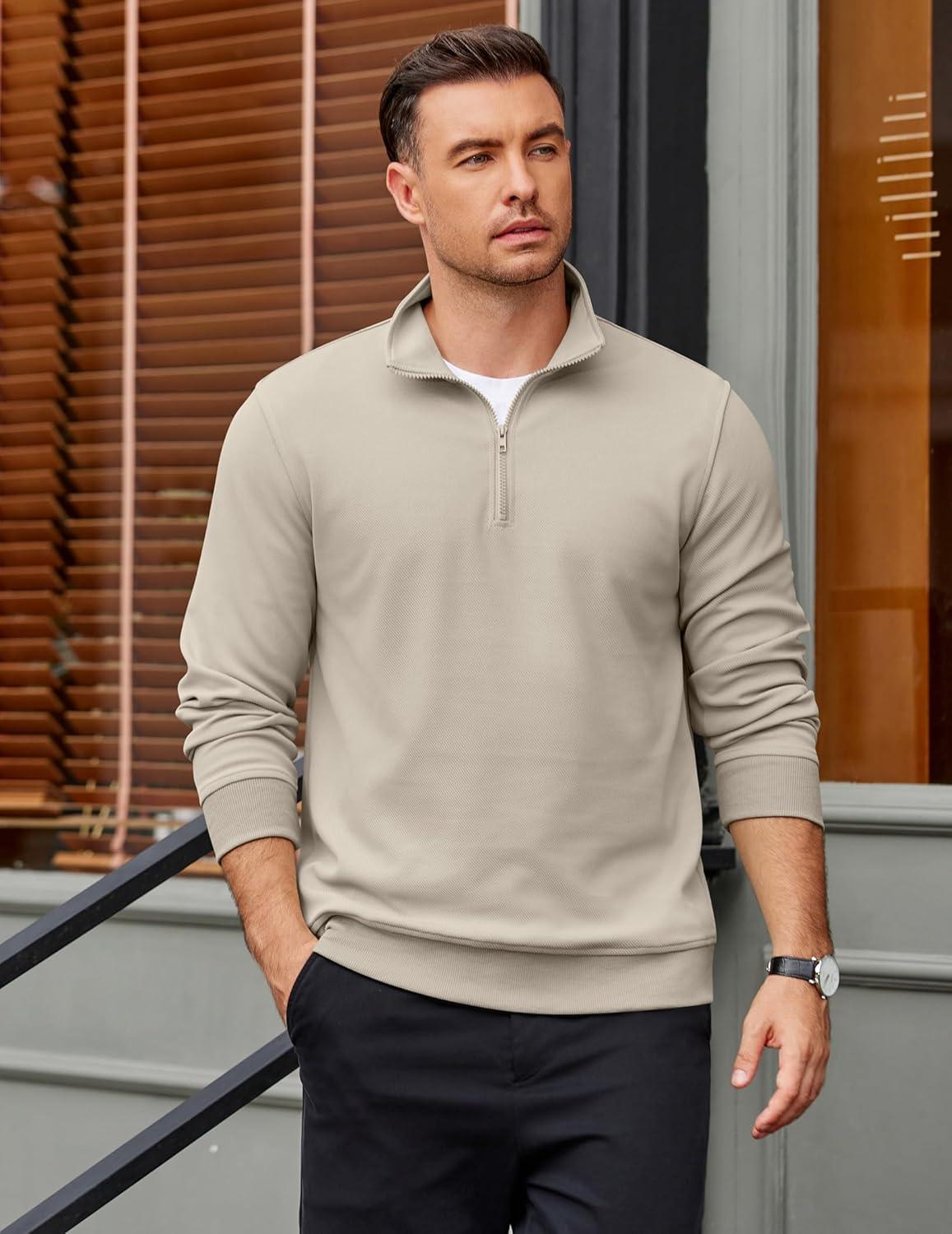 COOFANDY Men's Quarter Zip Pullover Mock Neck Lightweight Sweatshirt Long Sleeve Polo Shirt Business Casual Pullover Top(Light Khaki)