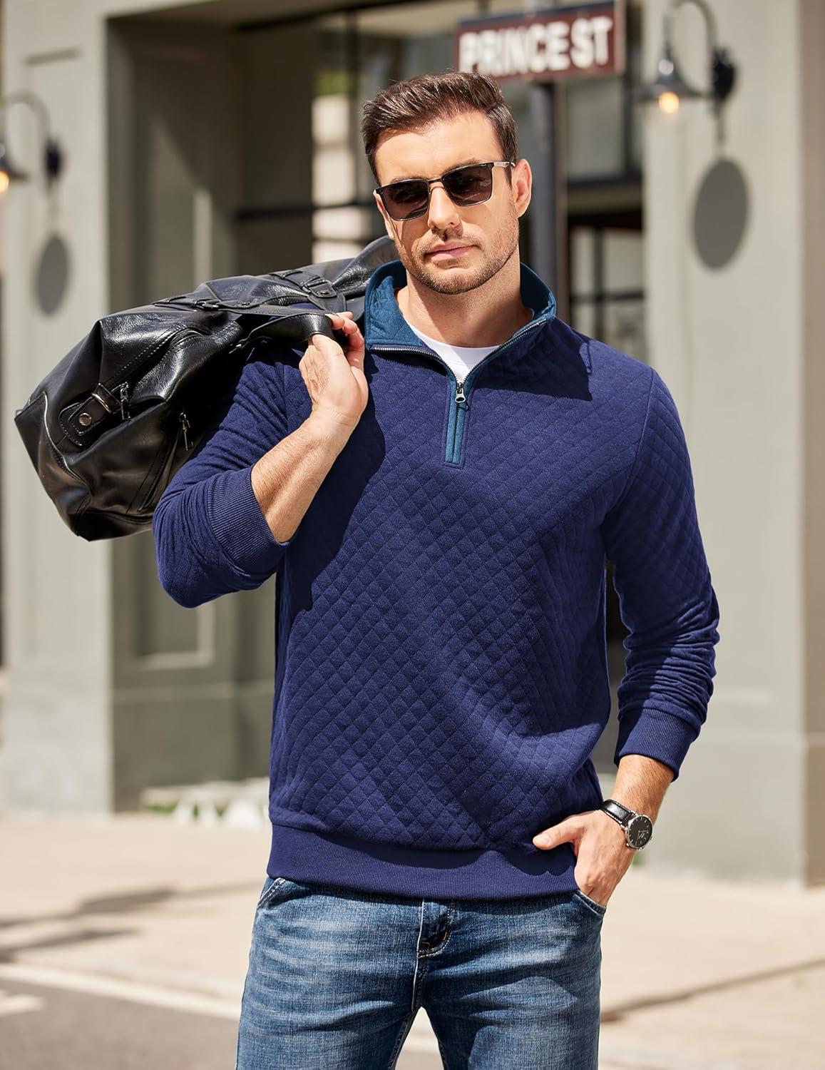 Don’t miss out on our limited-time offer: get a free {accessory} with your purchase of COOFANDY Mens Quarter Zip Pullover Mock Neck Quilted Sweatshirt Casual Long Sleeve Polo Sweater(Navy Blue).