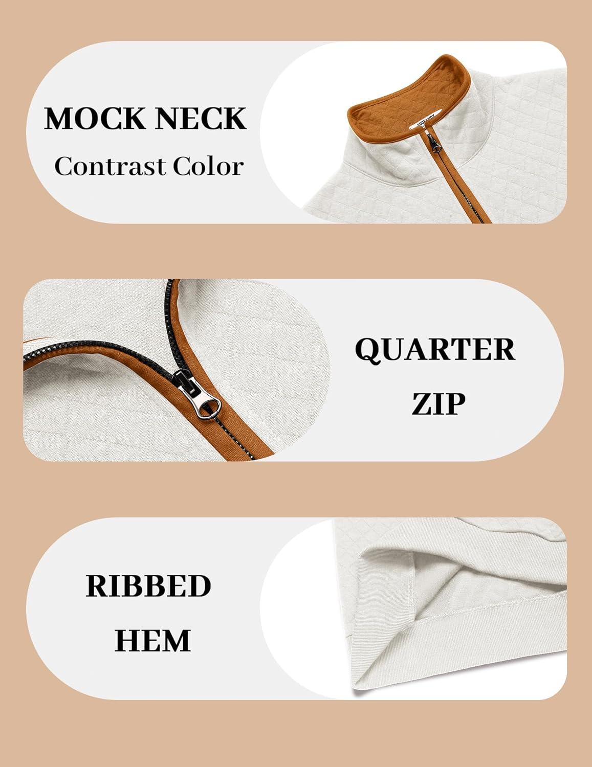 Don’t wait, get up to 50% off on COOFANDY Mens Quarter Zip Pullover Mock Neck Quilted Sweatshirt Casual Long Sleeve Polo Sweater(White) during our end-of-season sale event.