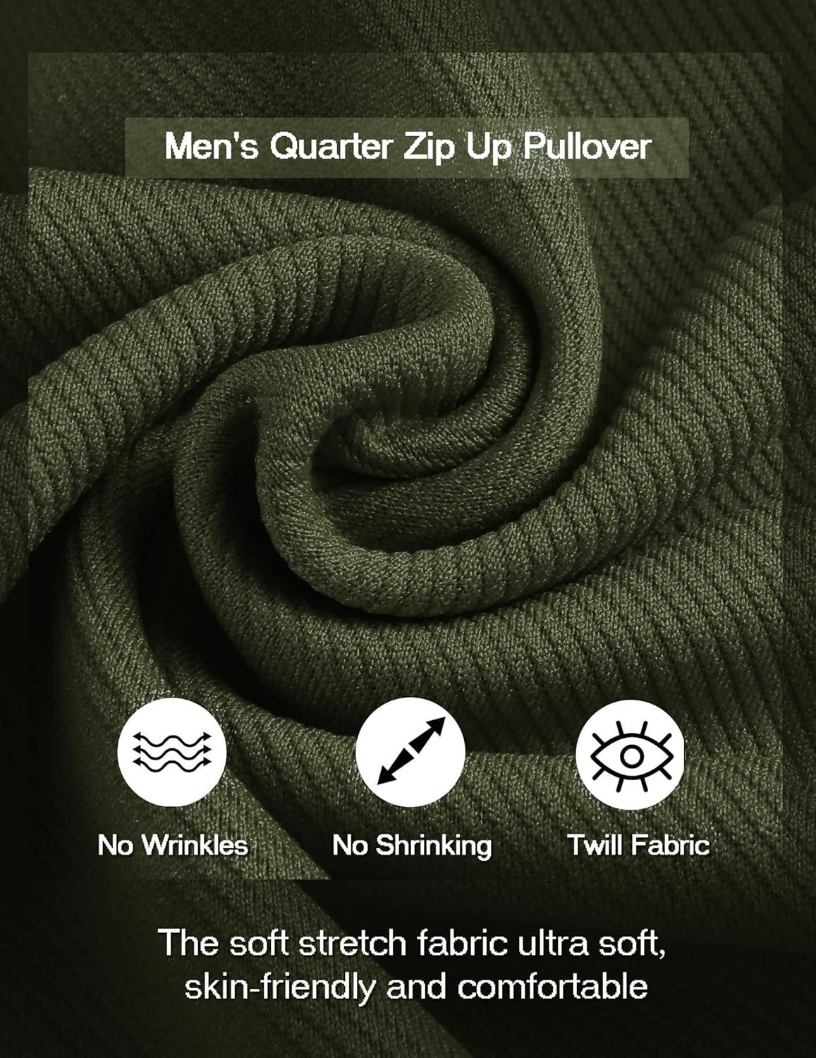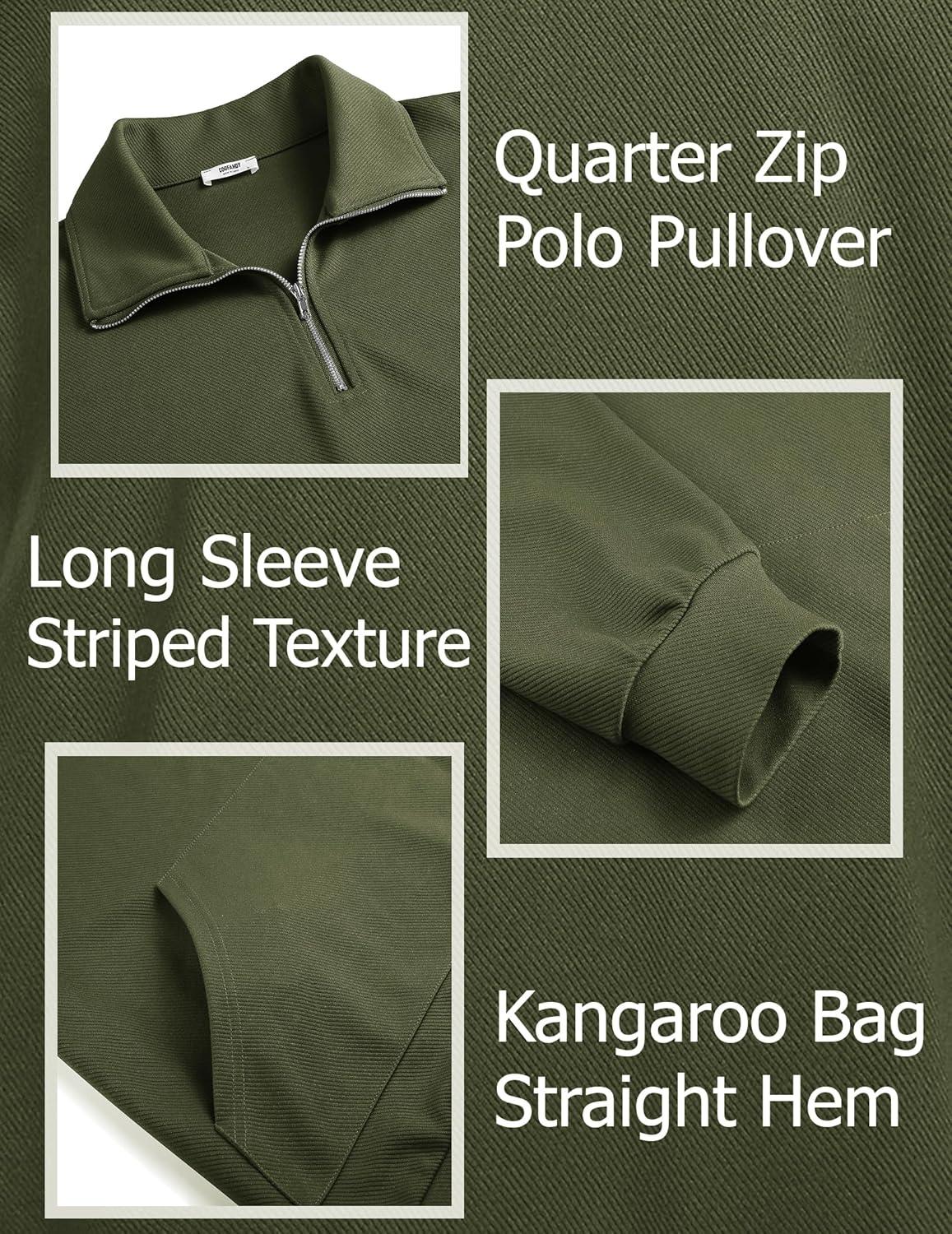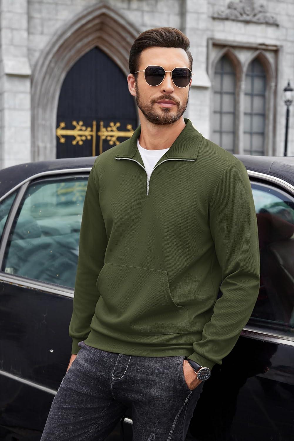 COOFANDY Mens Quarter Zip Pullover Mock Neck Sweatshirt Long Sleeve Sweater Polo Half Zip Pullover with Pocket(Army Green)