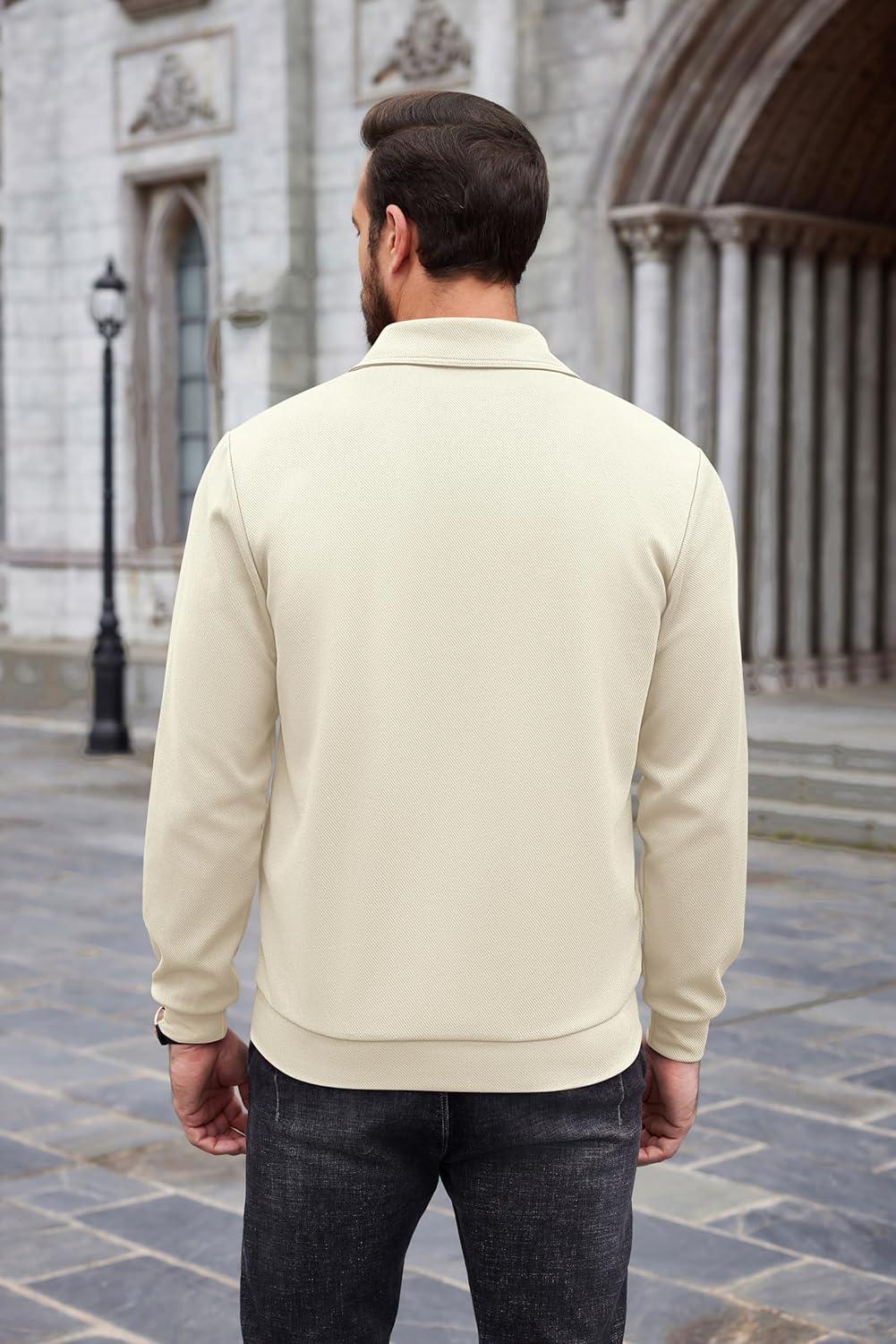COOFANDY Mens Quarter Zip Pullover Mock Neck Sweatshirt Long Sleeve Sweater Polo Half Zip Pullover with Pocket(Beige)