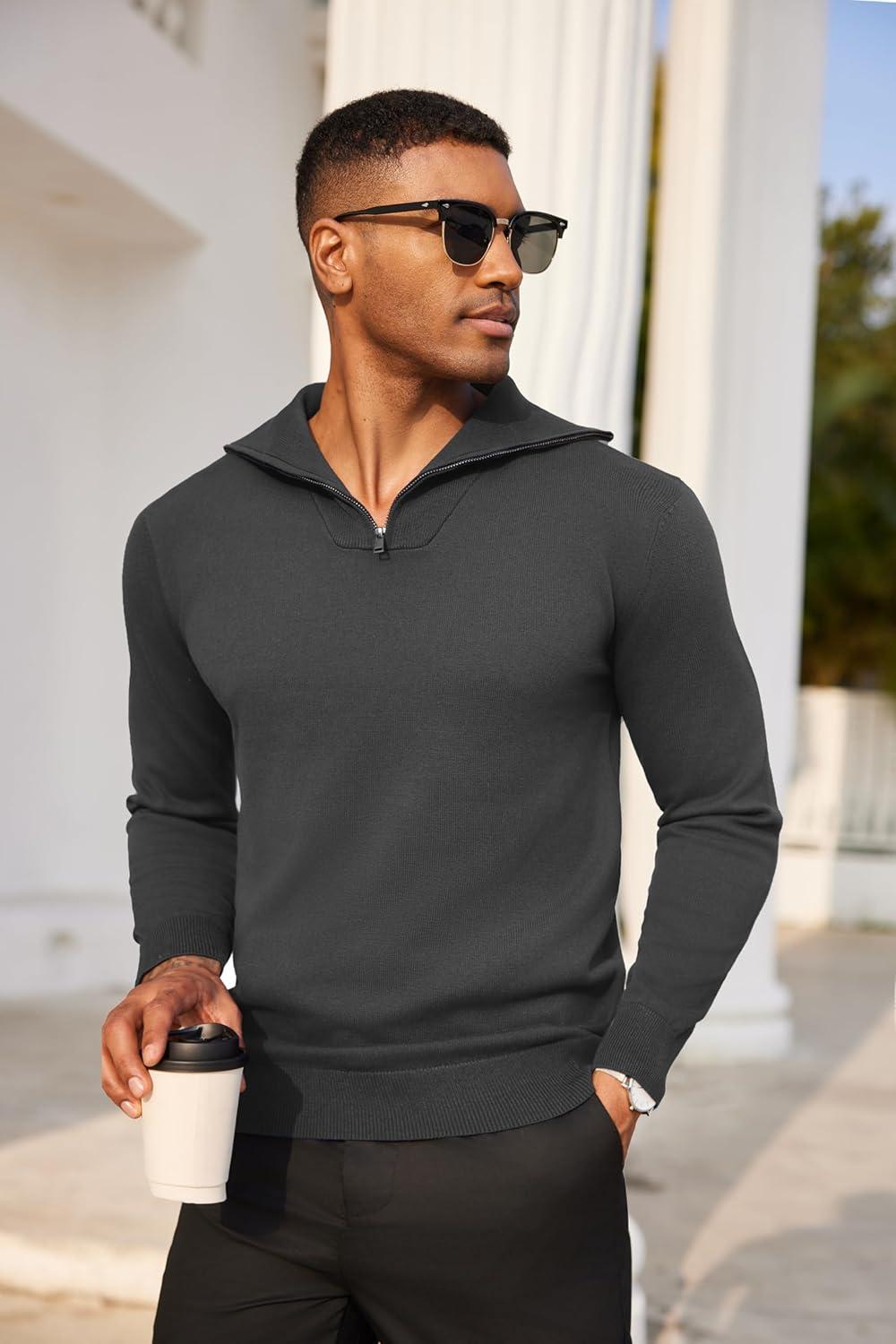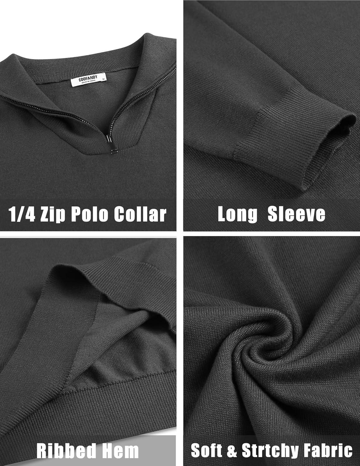 Don’t miss out on our limited-time offer: buy COOFANDY Mens Quarter Zip Pullover Quilted Pullover Casual Knit Long Sleeve Mock Neck Sweater Polo(Dark Gray), get {accessory} free!