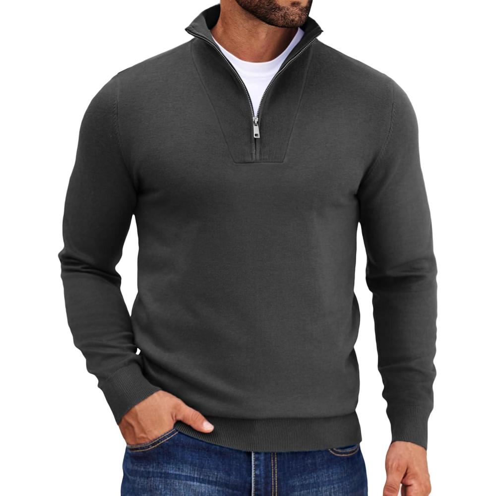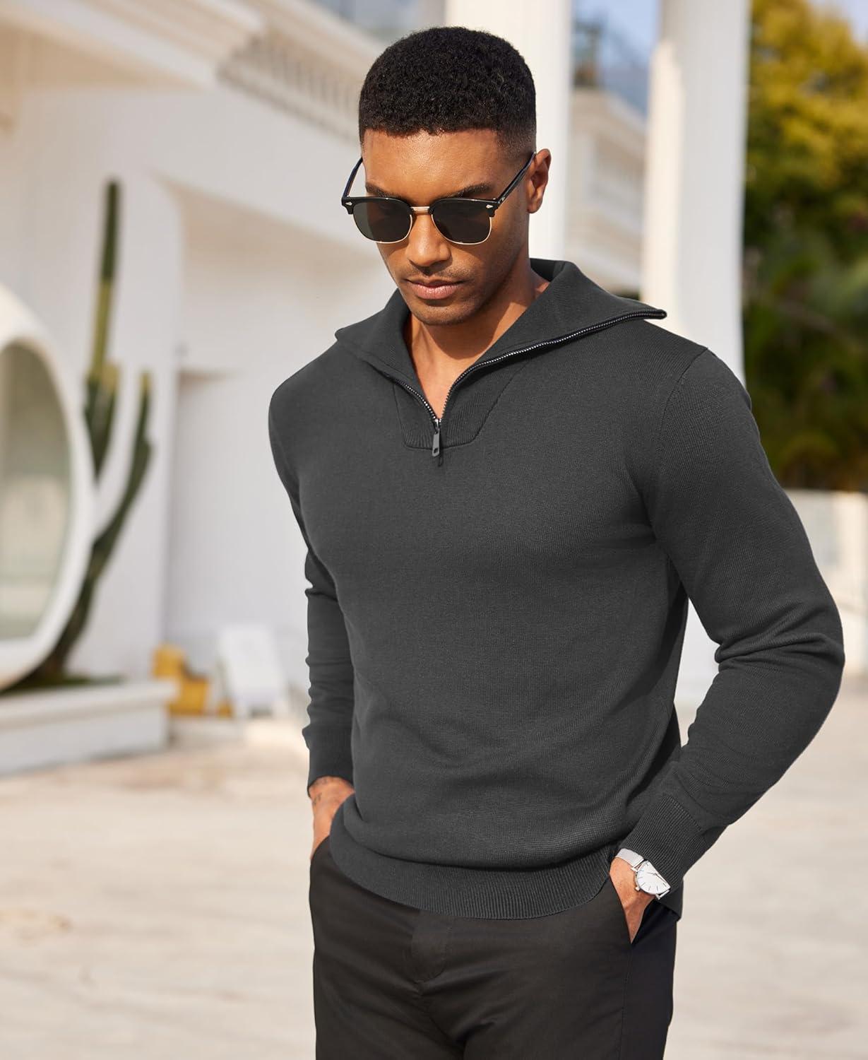 COOFANDY Mens Quarter Zip Pullover Quilted Pullover Casual Knit Long Sleeve Mock Neck Sweater Polo(Dark Gray)