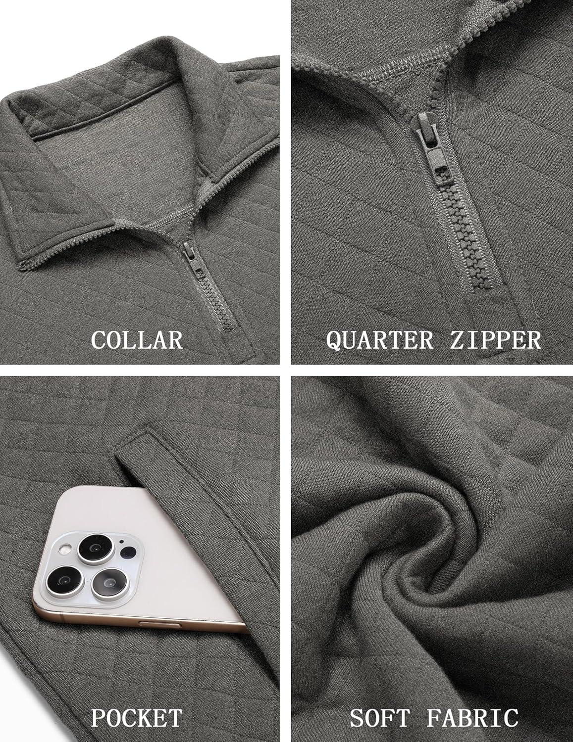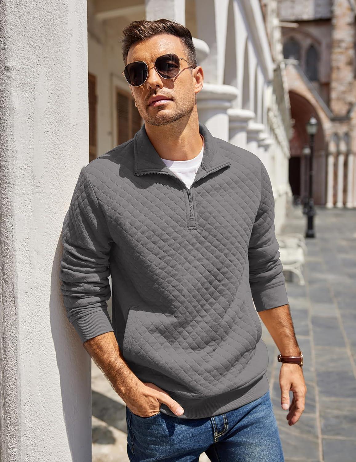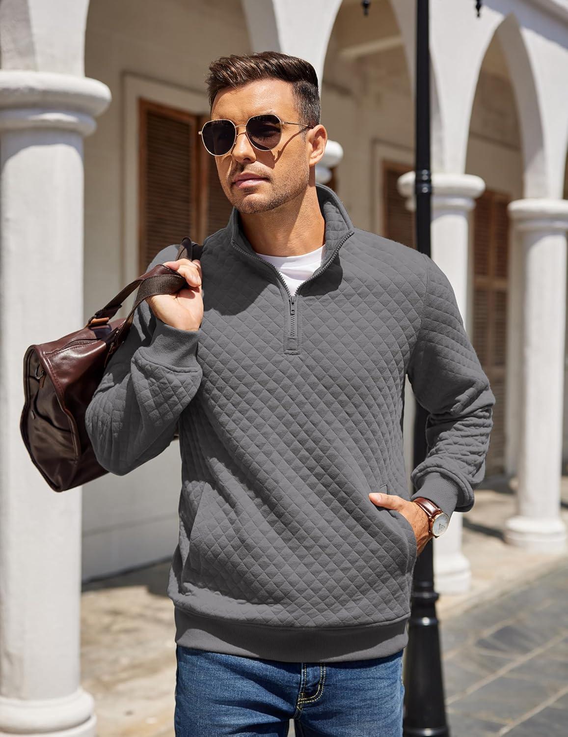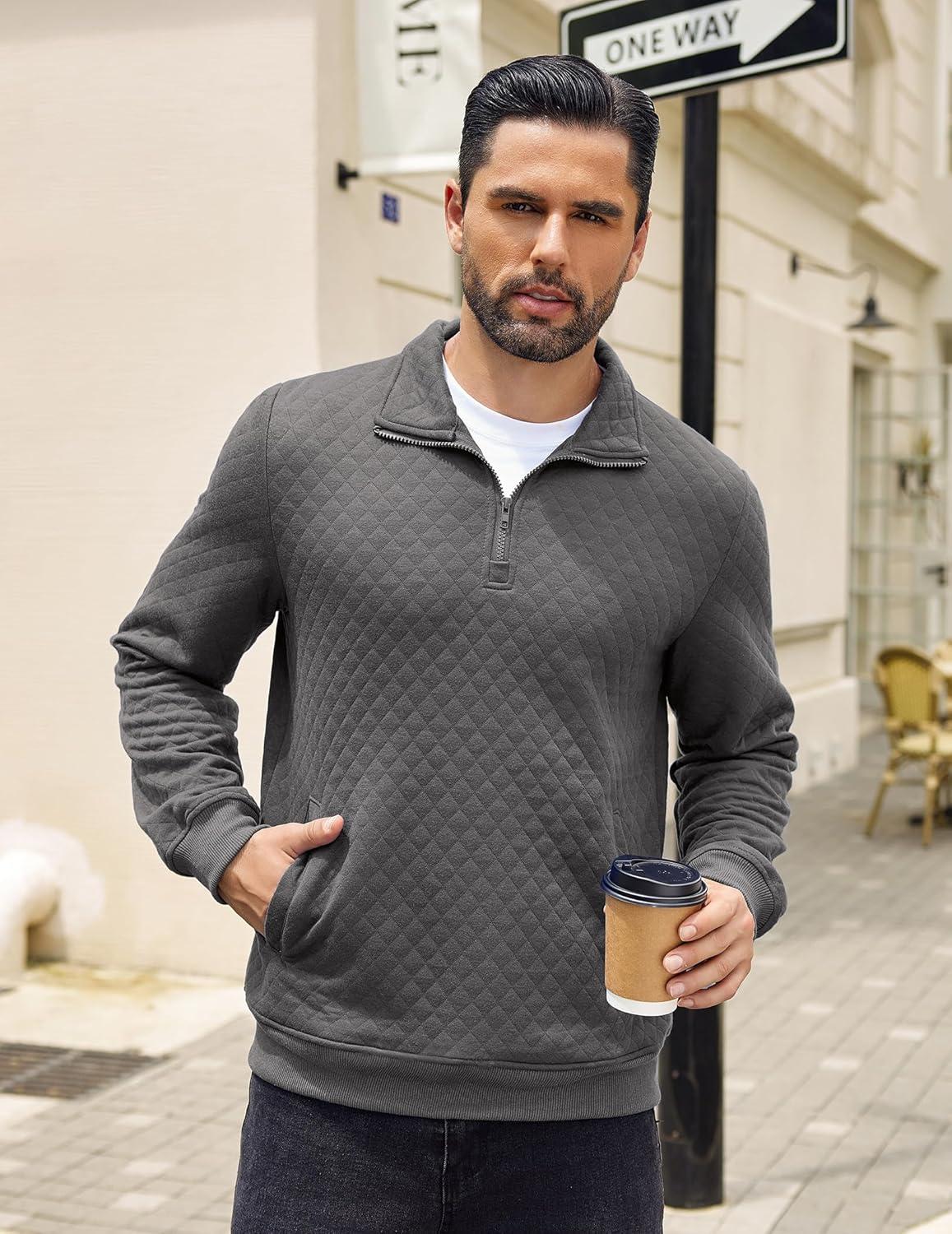 Our clearance event features the best deals on COOFANDY Mens Quarter Zip Pullover Quilted Sweatshirt Knit Long Sleeve Mock Neck Sweater Polo with Pocket(Dark Gray) and accessories. Shop now!
