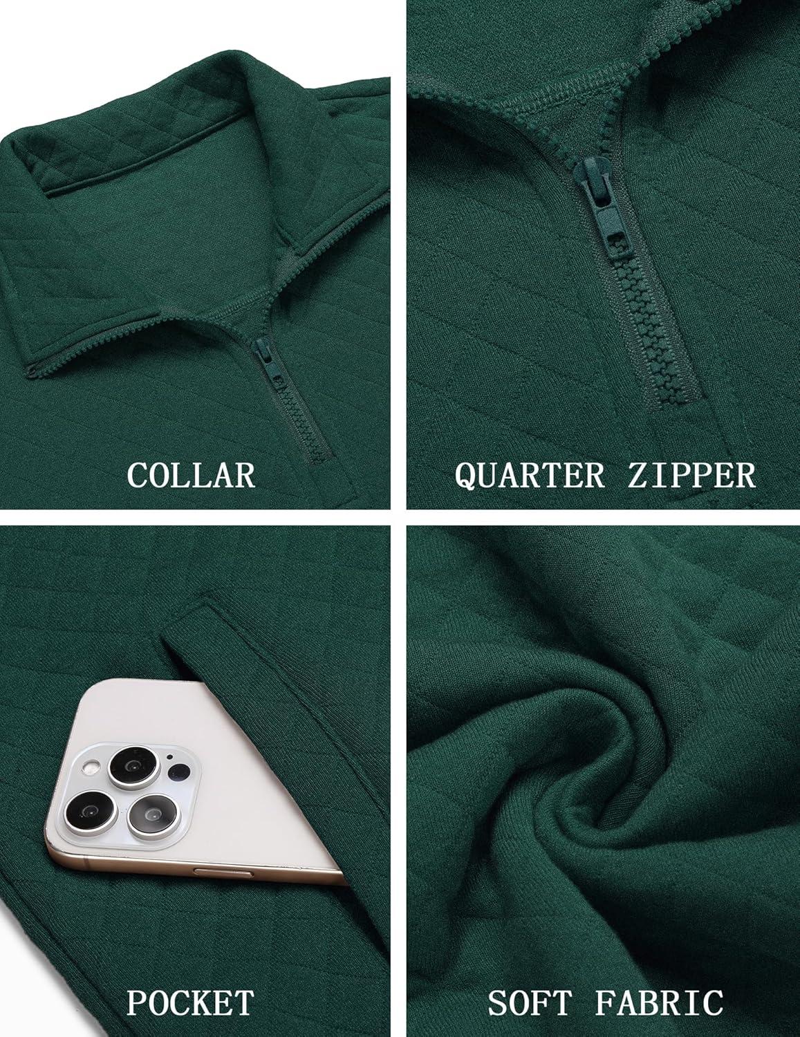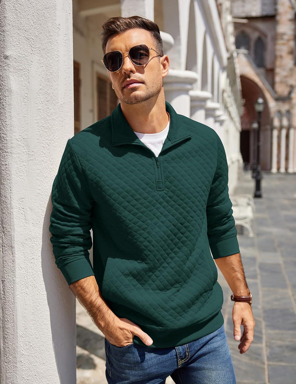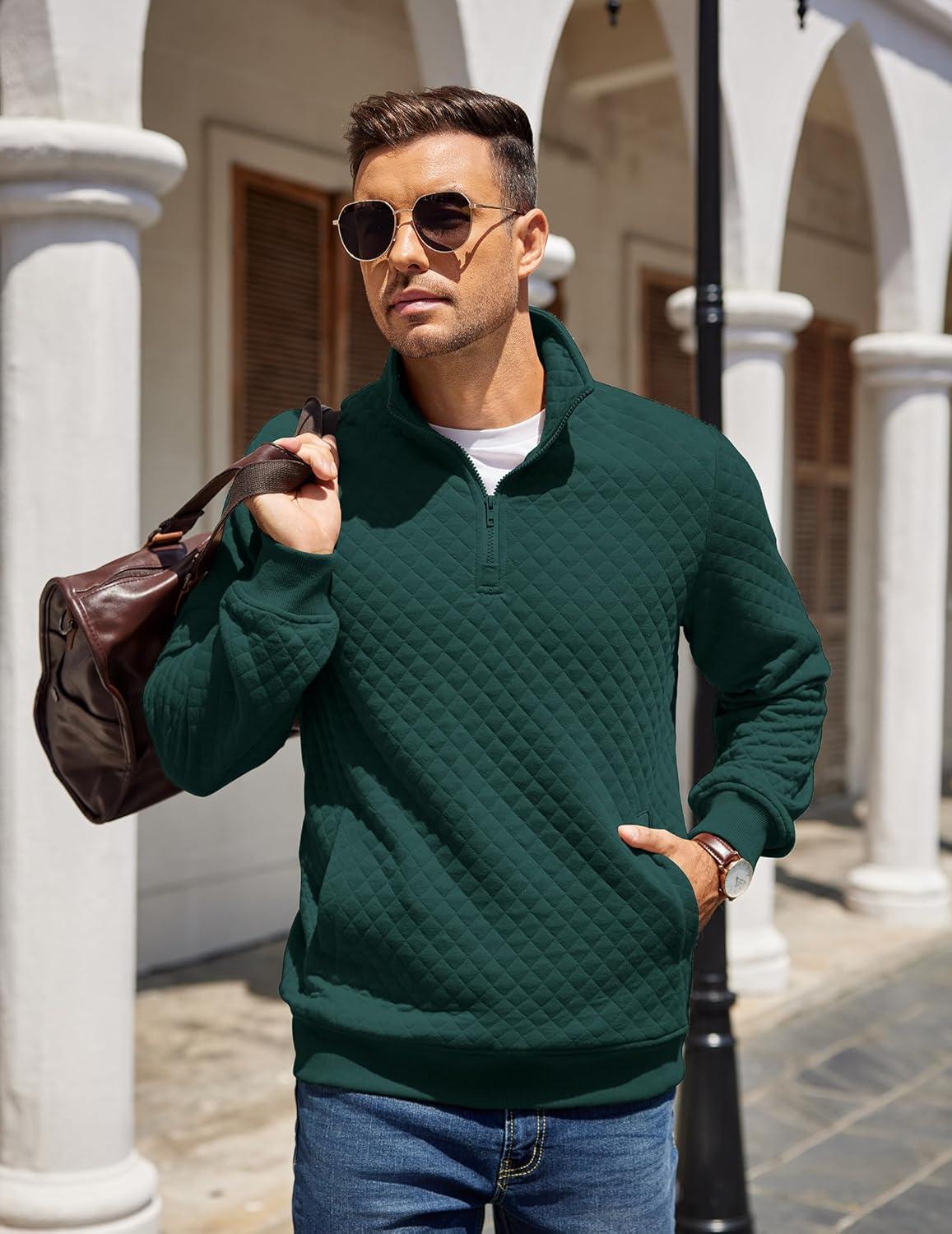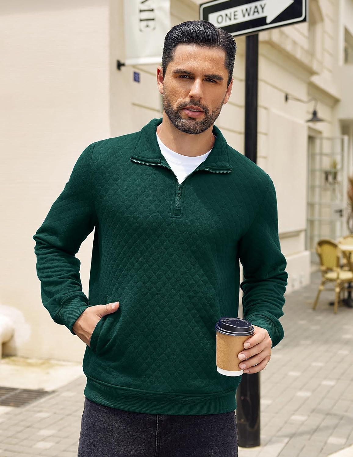 Save up to 40% on COOFANDY Mens Quarter Zip Pullover Quilted Sweatshirt Knit Long Sleeve Mock Neck Sweater Polo with Pocket(Green) styles during our end-of-season sale.
